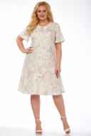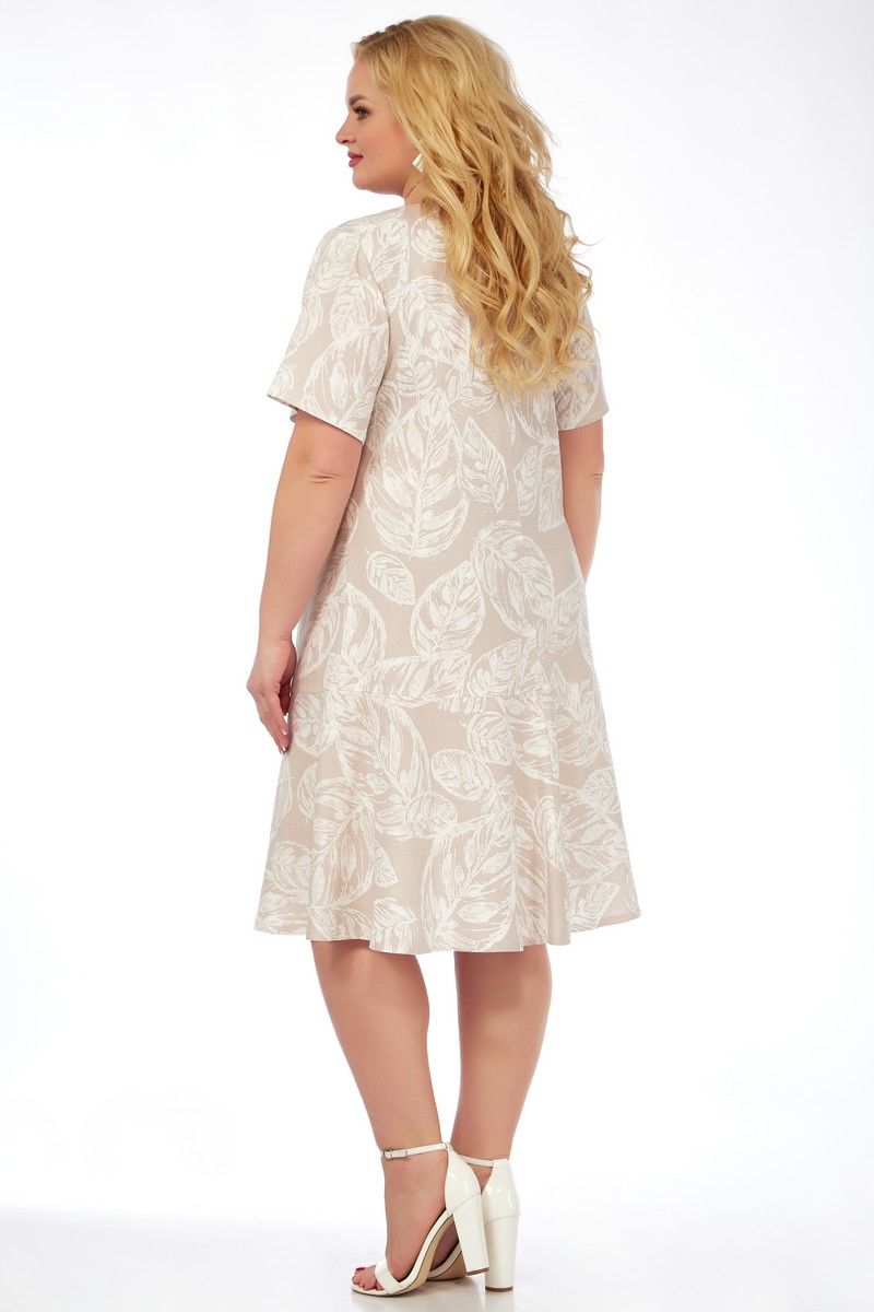 Платье женское А-силуэта.Перед с центральным швом и отделочной строчкой, по низу с приточным валаном.Рукав втачной свободного кроя.Перед и валан украшены пуговицами.