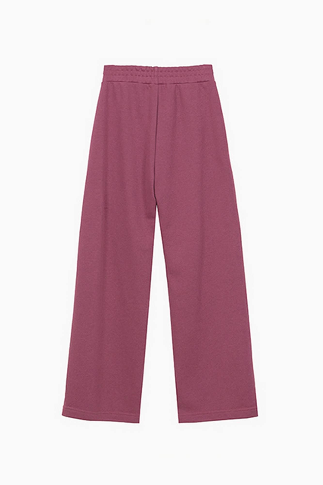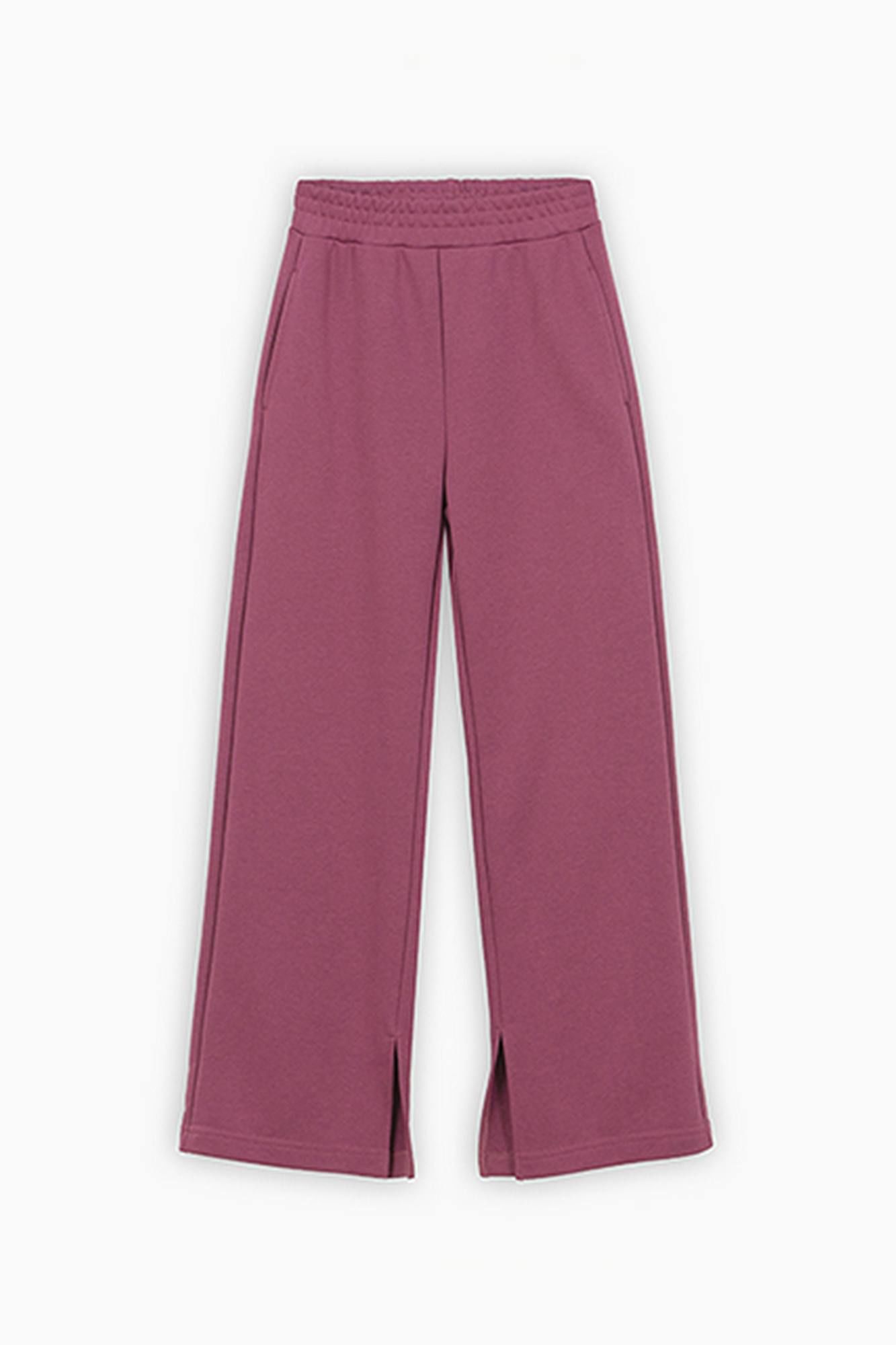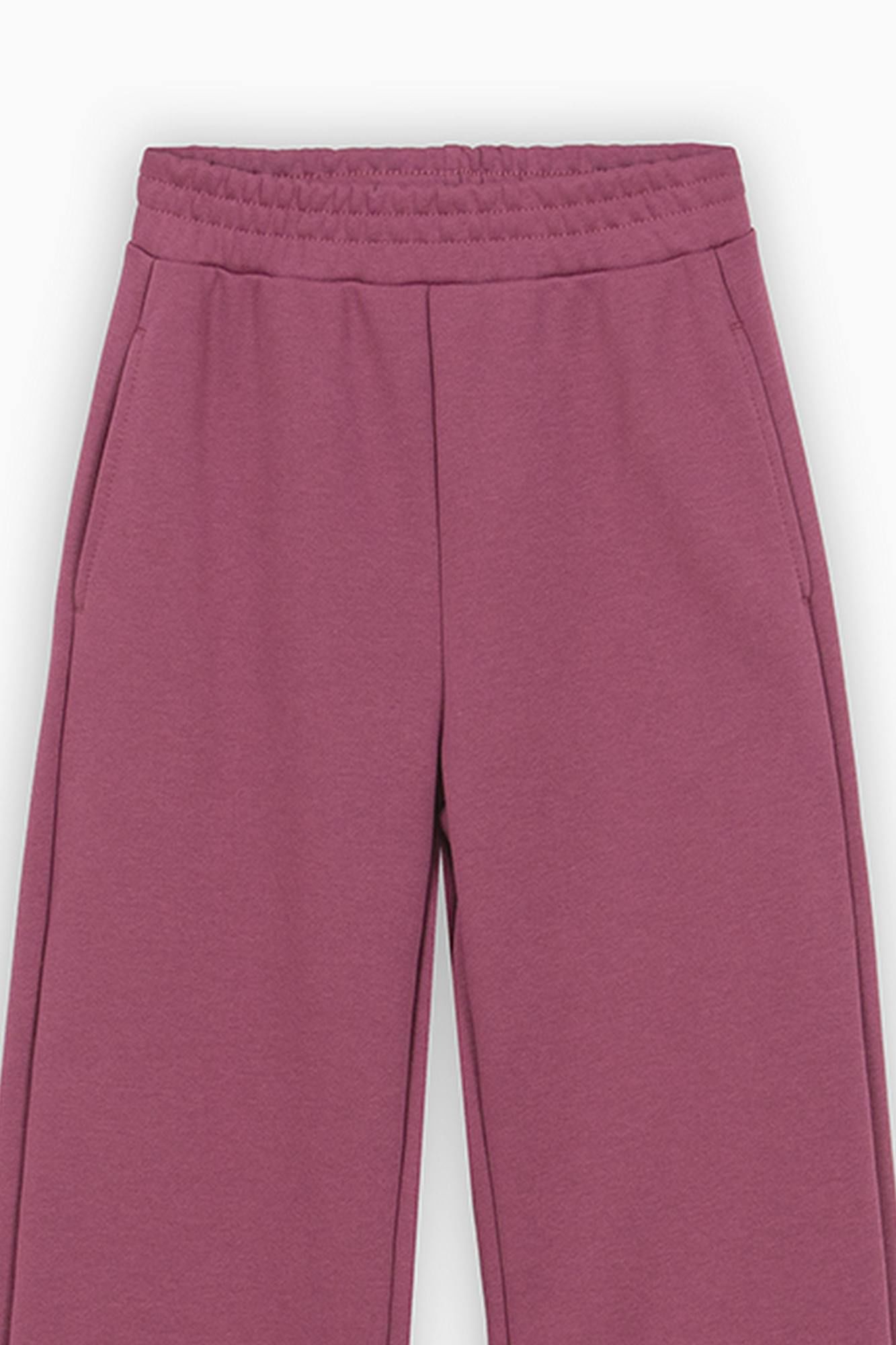 Стильные широкие брюки в благородном оттенке бордо для девочки. Модель прямого силуэта, со средней посадкой. Изделие без застёжки, на мягком эластичном поясе. Брюки с наклонными карманами. Оригинальные разрезы по низу брюк.