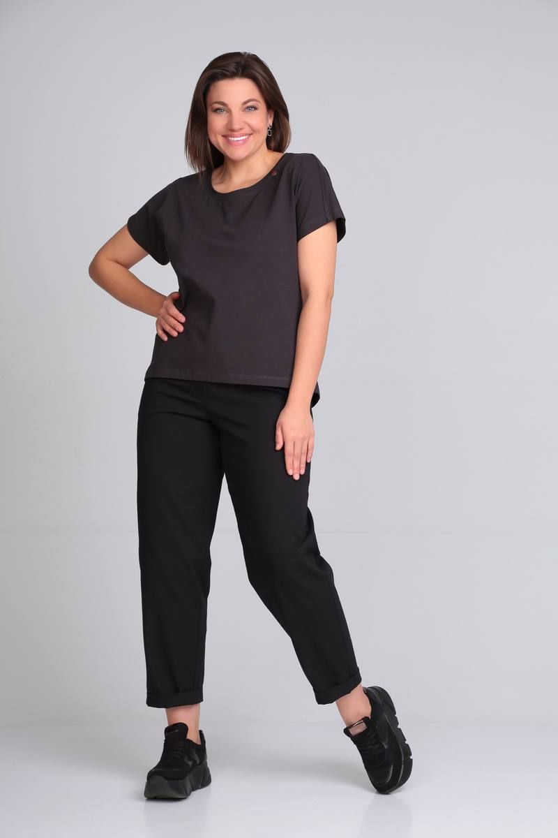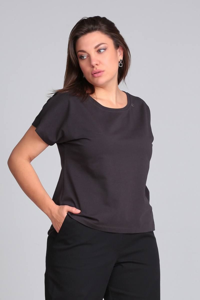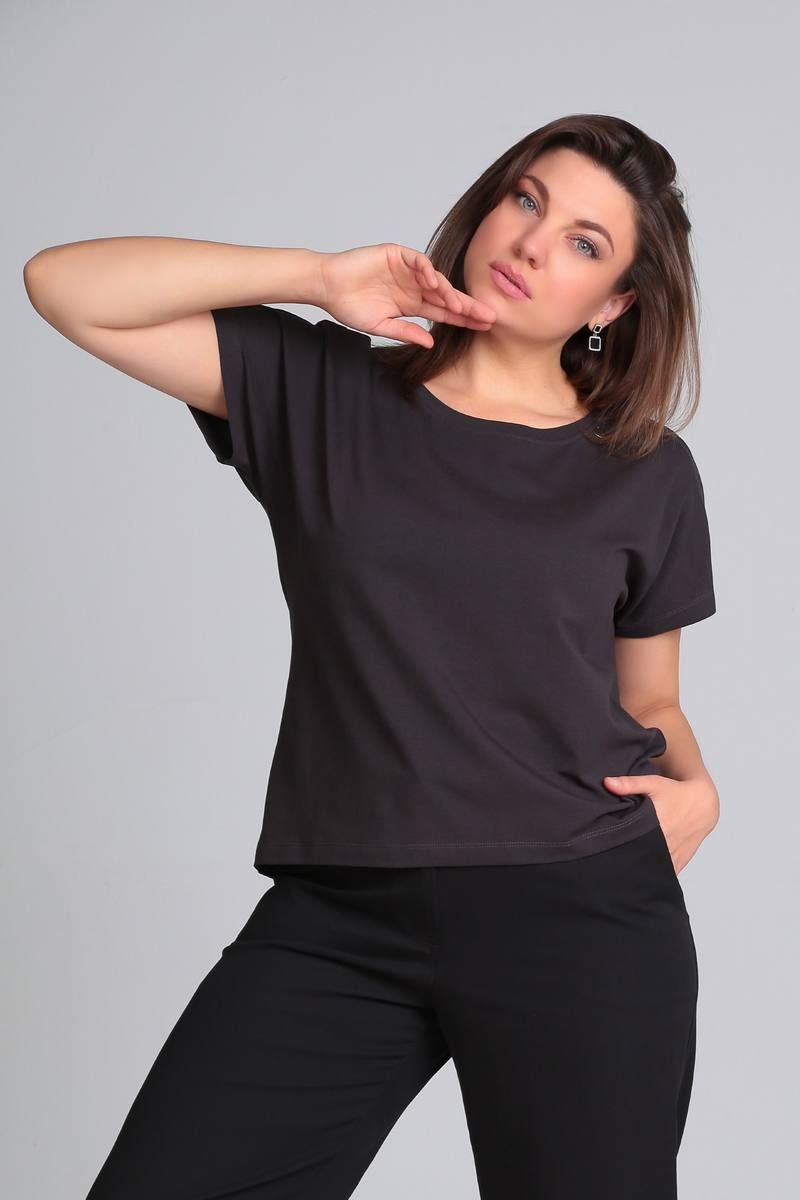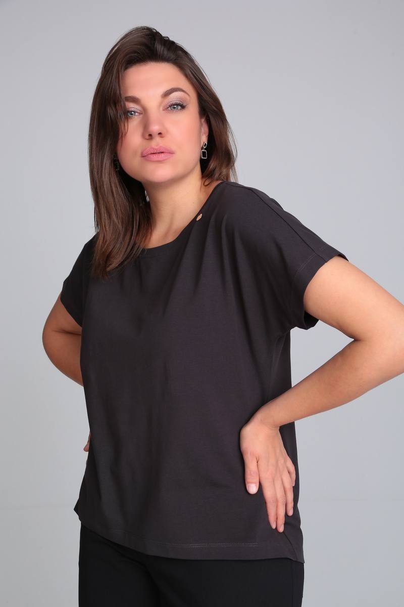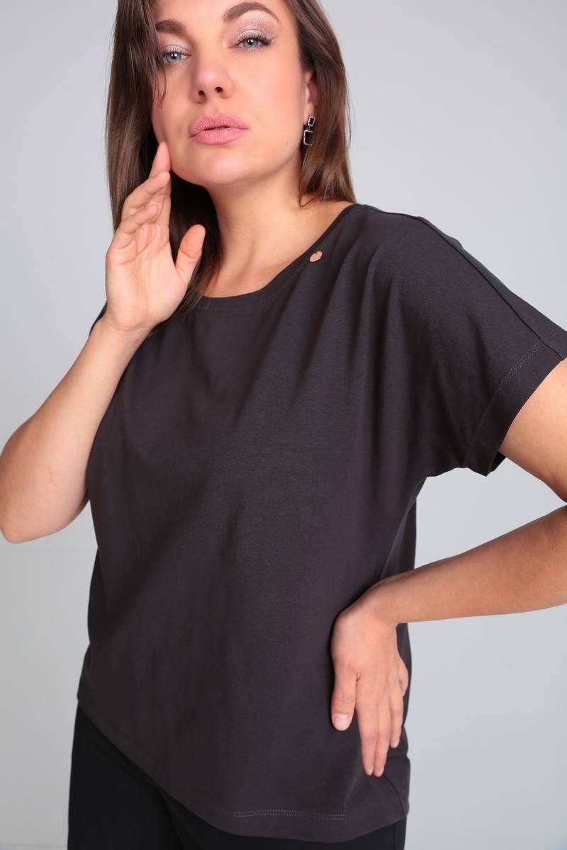 Футболка свободного кроя со спущенной линией плеча, удлинённой спинкой. Имеются декоративные элементы. Р-р 50-54 Длина по переду от плеча 60 см. (+-1 см) Р-р 56-60 Длина по переду от плеча 65 см. (+-1 см) Рекомендации по уходу: Ручная или машинная стирка до 30° Химчистка Отжим до 800 оборотов Гладить на средних температурах