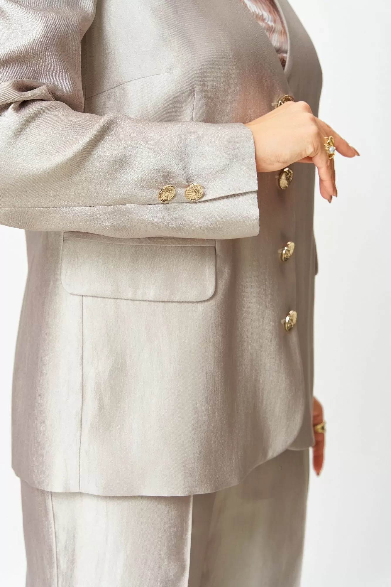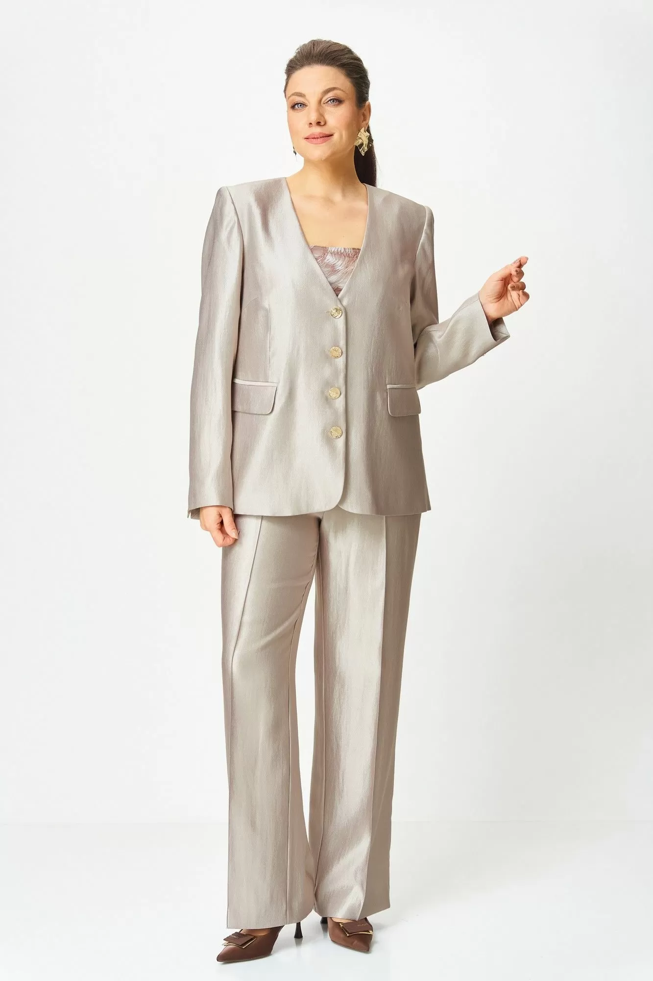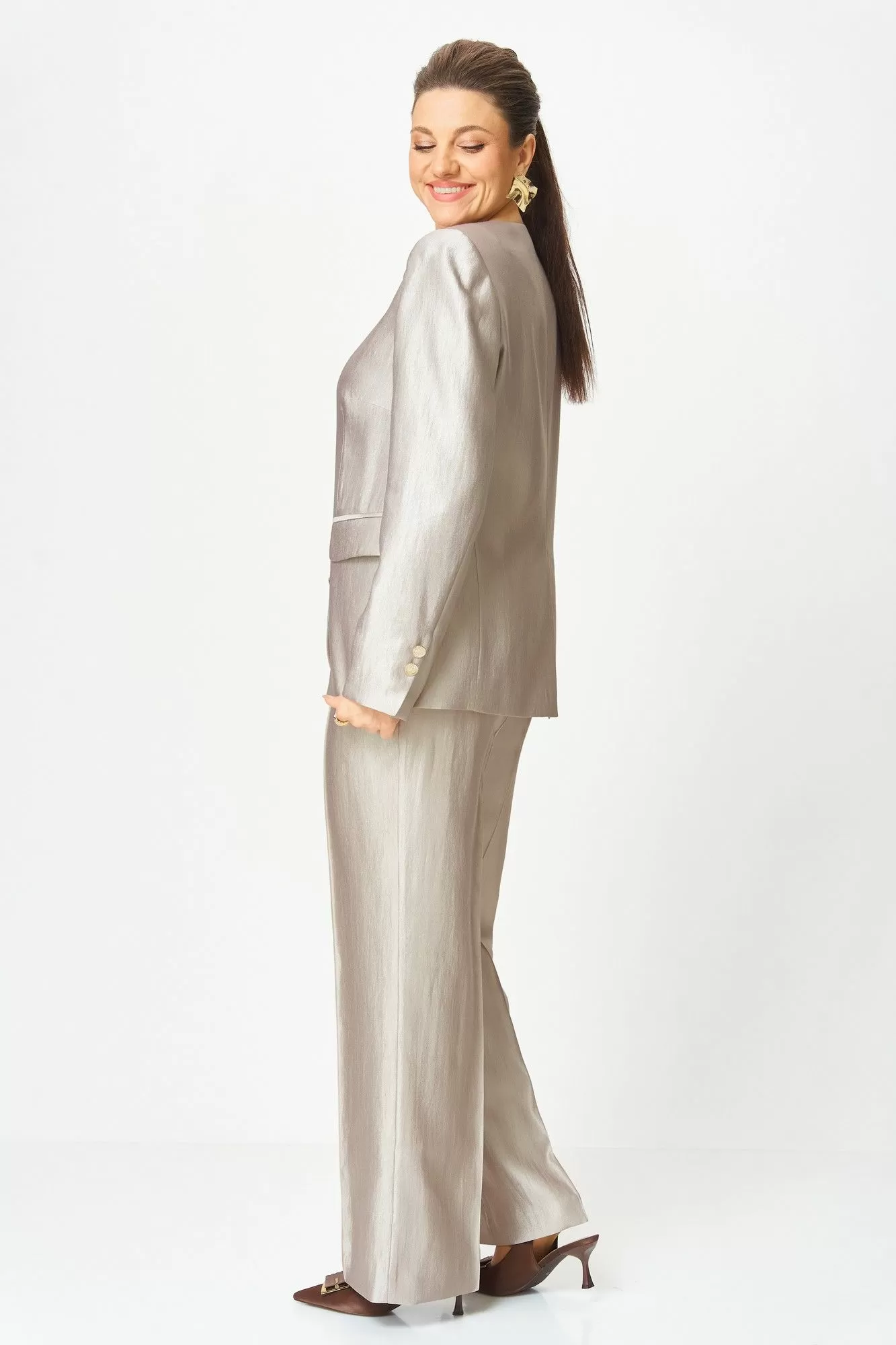 Стильный женский костюм, выполнен в классическом стиле из ткани с небольшим блеском.