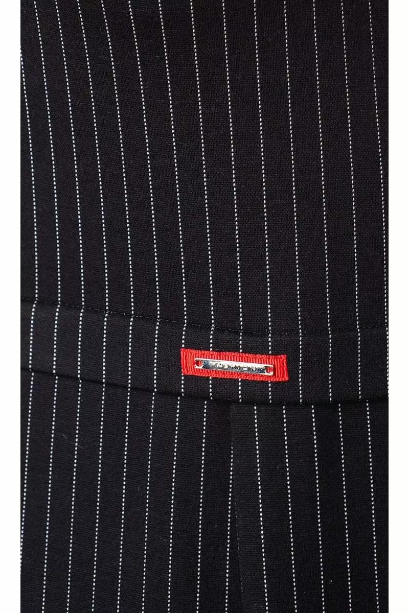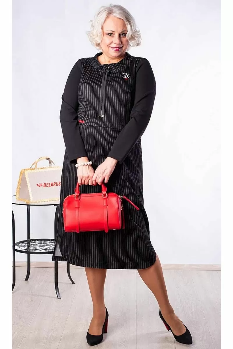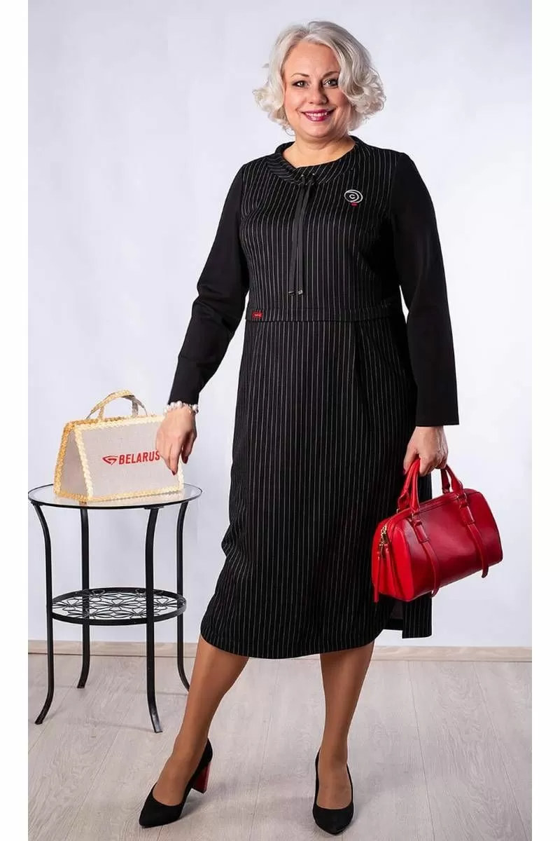 Универсальное трикотажное платье должно быть в гардеробе каждой модницы. Наше стильное платье отлично подойдет для работы, офиса, деловых и дружеских встреч, прогулок и свиданий. Платье полуприлегающее, вертикальная полоска зрительно вытягивает фигуру и придает силуэту стройности и утонченности. Оригинальная горловина, нашивка на груди делают образ нескучным. Обратите внимание, что платье хорошо сядет на фигуре, у которой объем груди меньше, чем объем бедер примерно 8 см.