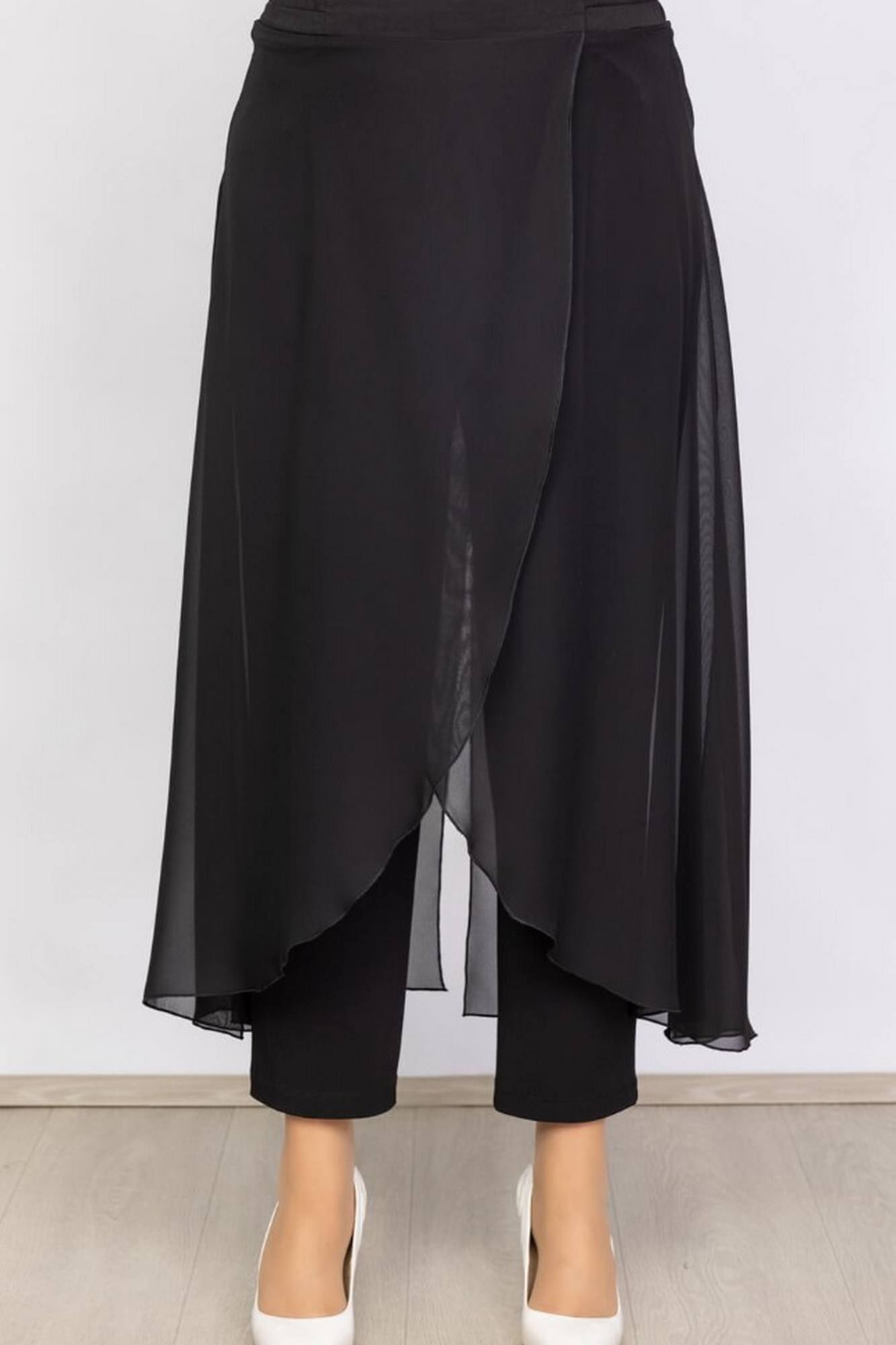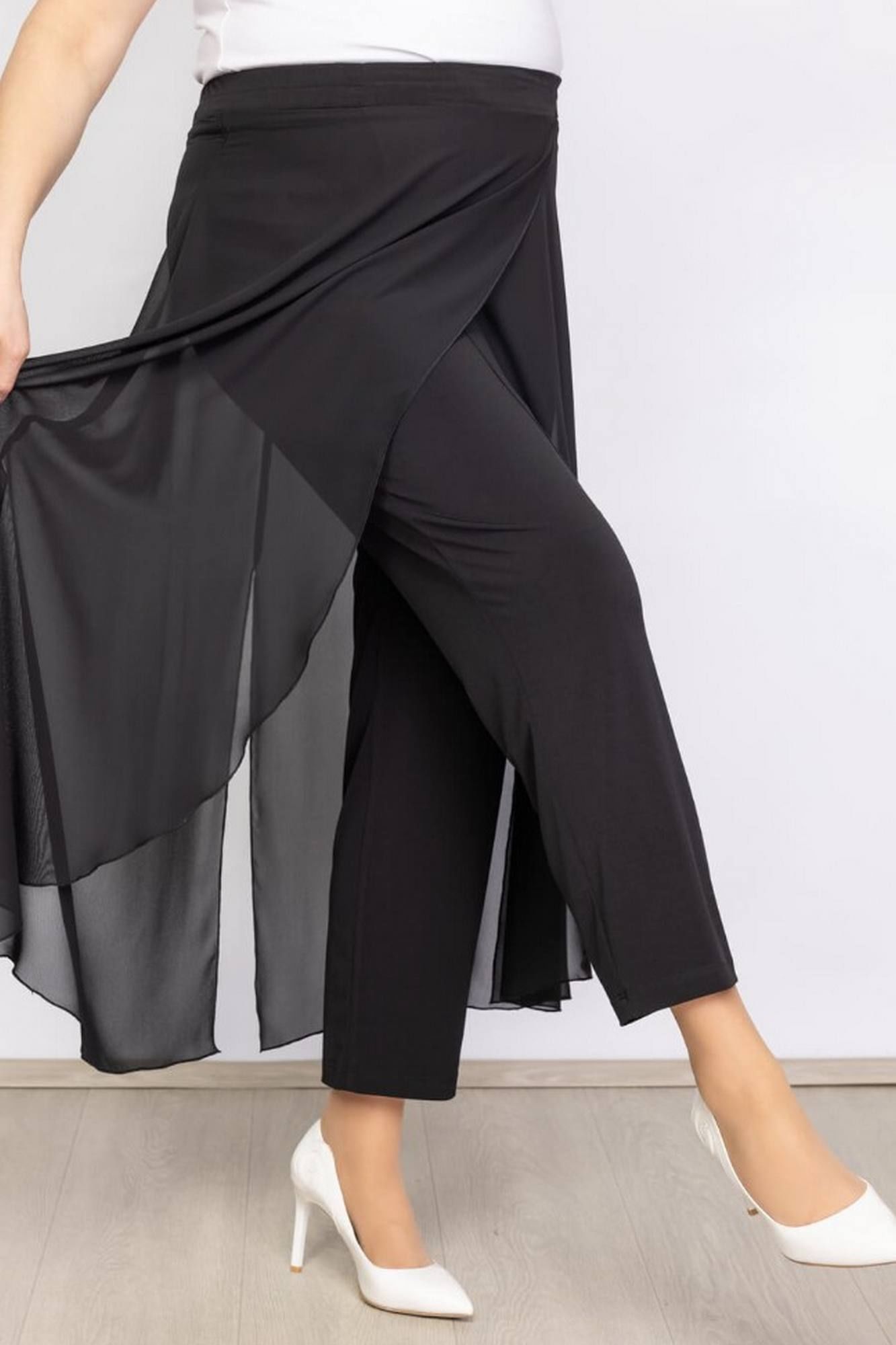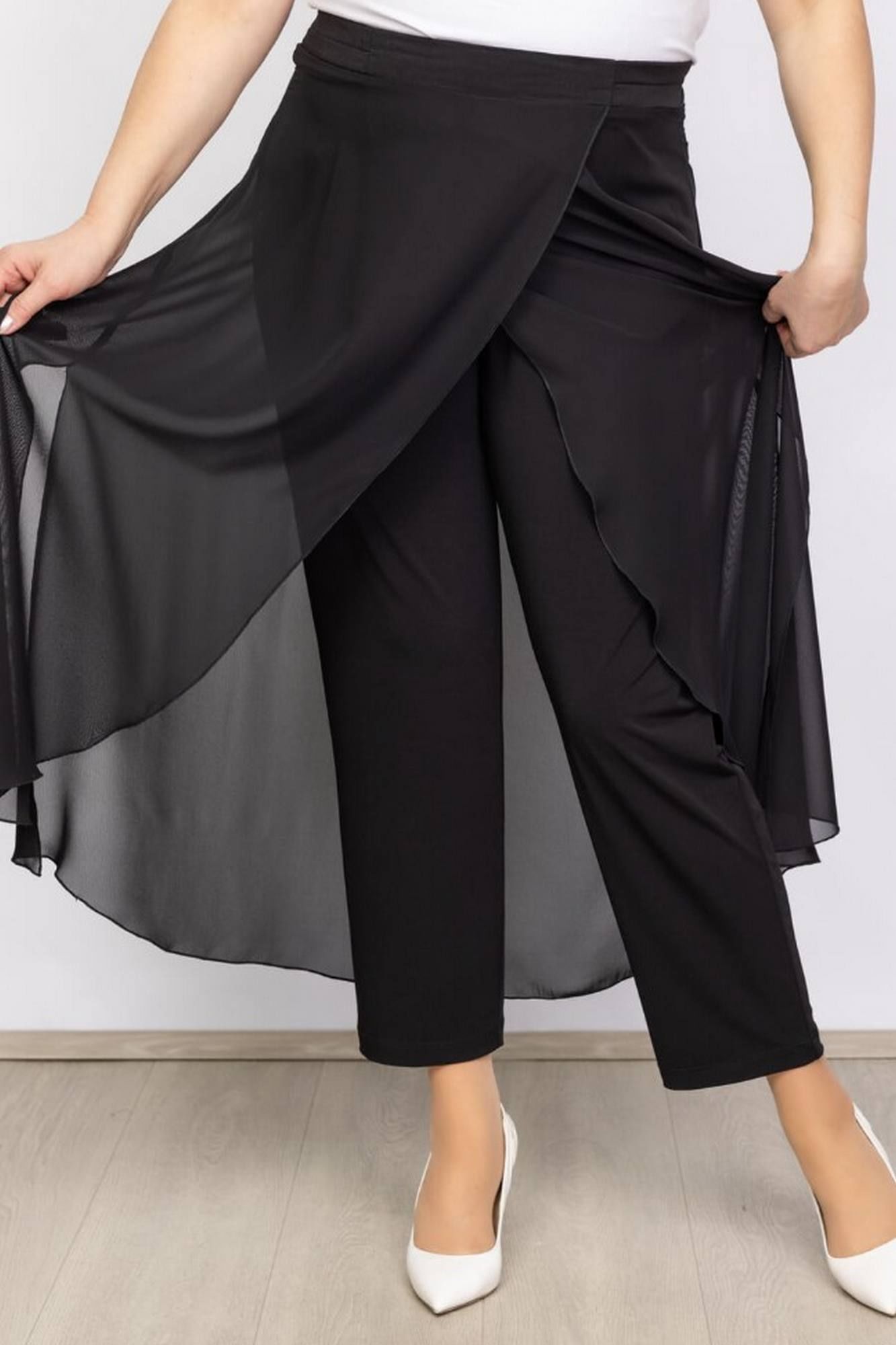 Оригинальные брюки от Camelia идеально подходят для создания неповторимого стильного образа. Юбка-брюки выполнены из качественного трикотажа, сверху юбка на запах из шифона. Брюки с шифоном создают эффект легкости и воздушности, подчеркивая женственность и изящество. Удобная посадка, пояс на резинке обеспечивают комфорт и свободу движений. Их уникальный дизайн и качество материалов делают наши вечерние брюки идеальным выбором для праздничных мероприятий, свадеб, вечеринок,свиданий, выпускных и корпоративов. Брюки пошиты по ГОСТу. Прежде, чем сделать заказ, уточните свой размер. Воспользуйтесь нашей таблицей, представленной среди фотографий. Средняя длина брюк по боку с поясом 98 см.Длина брюк по шаговому шву 71 см.Рост модели на фото 170 см.