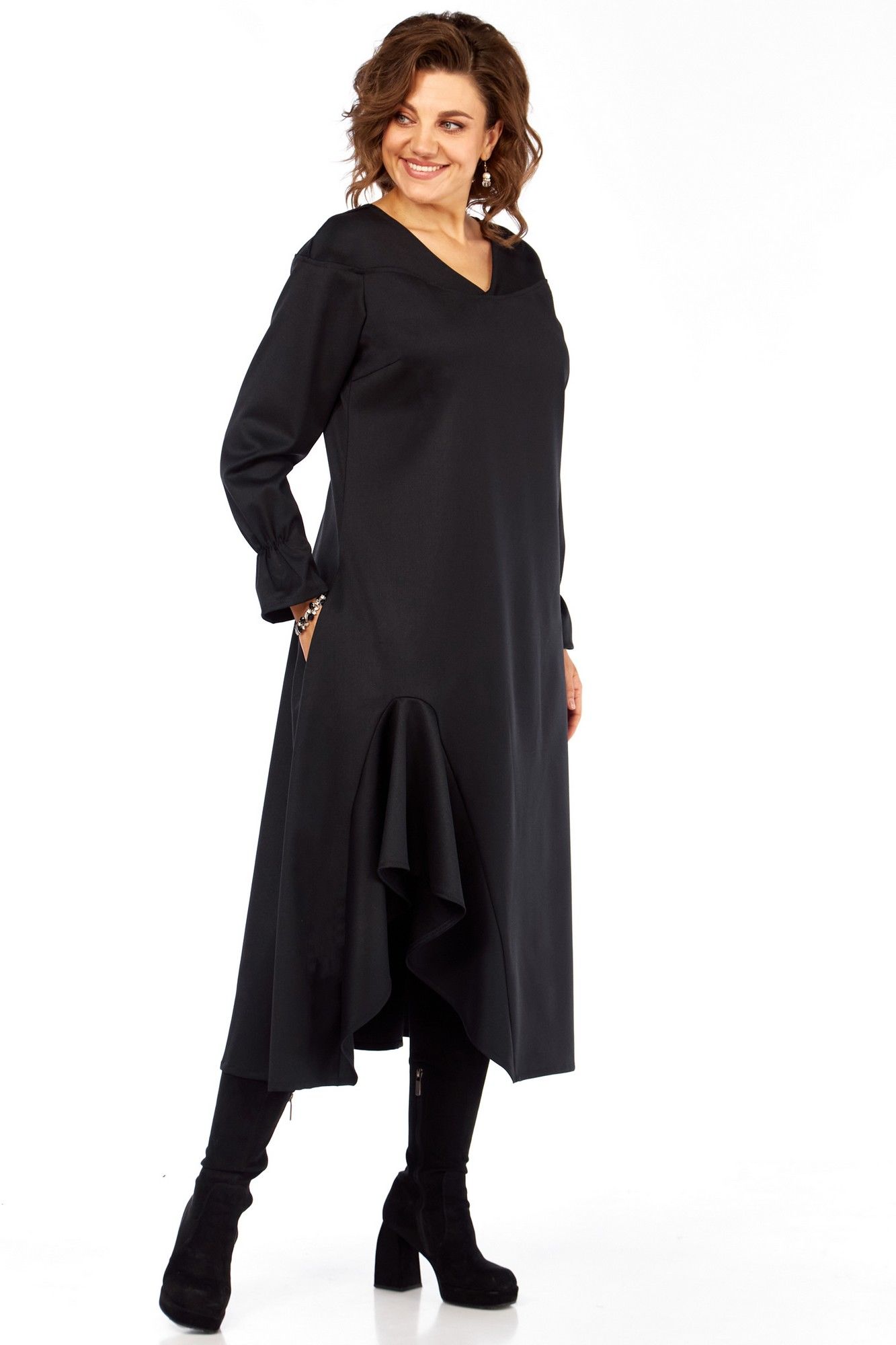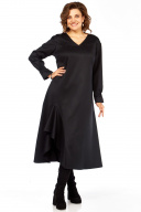 Это платье — прекрасный образец сочетания минимализма и авангардного дизайна, где классический силуэт преображается за счет одной яркой архитектурной детали. Главная изюминка - объемный волан - делает эту модель неповторимой. Вы будете выделяться, не нарушая дресс-кода. Свободный крой оверсайз и длина миди мастерски скрывают любые недостатки фигуры, даря абсолютный комфорт. Вертикальные выточки на спинке дополнительно вытягивают силуэт. Благодаря ткани и глубокому цвету, платье идеально подходит для осенне-зимнего сезона. Оно легко трансформируется из делового наряда (с классическими лодочками) в вечерний образ (с массивными украшениями и ботильонами). Добавьте это платье-шедевр в свою коллекцию. Создайте свой неповторимый стиль! Модель: Платье-миди архитектурного кроя. Силуэт: Свободный, трапециевидный, с выраженным расширением к низу, обеспечивающий комфортную посадку оверсайз. Глубокий V-образный вырез, визуально удлиняющий шею. • Линия плеча слегка спущенная, что придает верхней части мягкость и объем. • Рукава длинные, втачные. Заканчиваются аккуратной манжетой с легкой сборкой, добавляющей женственности. • Основная особенность: Асимметричная объемная драпировка (волан) в левой нижней части подола. Эта деталь выполнена из того же материала, создавая эффект динамичного, сложенного элемента, который придает платью уникальный архитектурный вид. • Спинка со средним швом и выточками, для лучшего прилегания изделия • Ткань: Натуральная высокого качества. Длина платья 125см, длина рукава 62 см