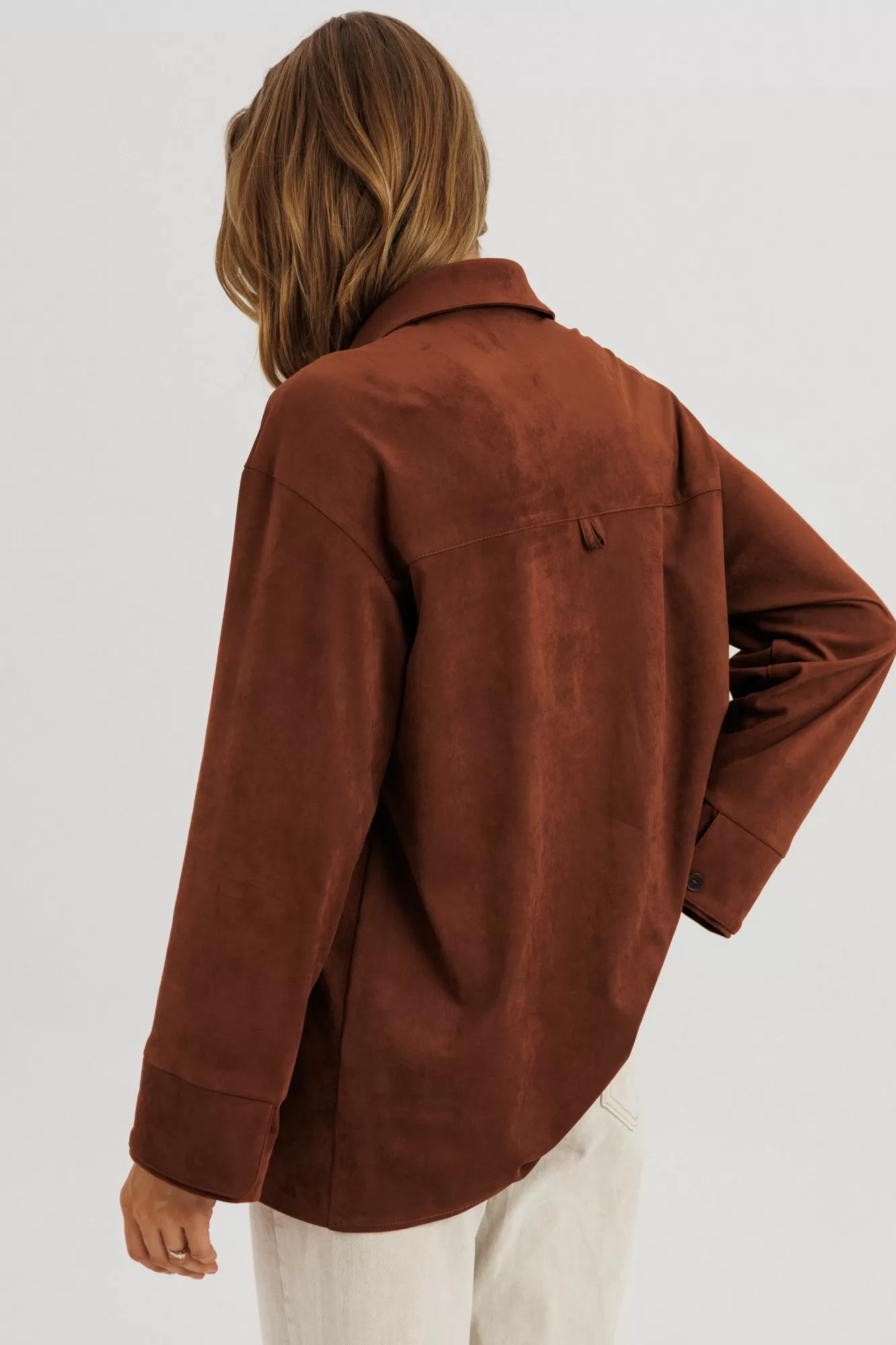 Рубашка женская прямого силуэта, с центральной застежкой с планками, застегивающимися на 6 прорезных петель и пуговиц. Рубашка выполнена из искусственной замши.Перед с нагрудными вытачками, с накладными карманами с клапанами.Спинка с отрезной кокеткой, посередине которой вставлена петелька.Рукава рубашечного типа с притачными по низу манжетами с отделочными клапанами. Воротник стояче-отложной с отрезной стойкой, застегивающейся на 1 прорезную петлю и пуговицу.