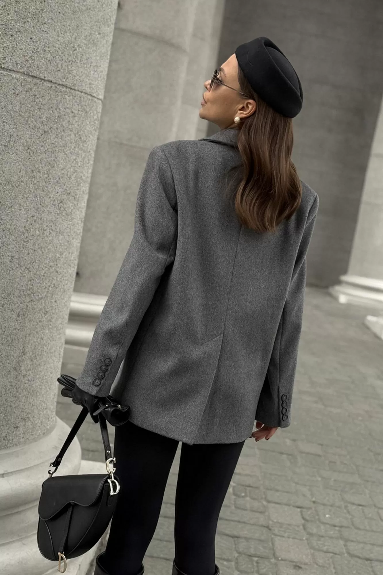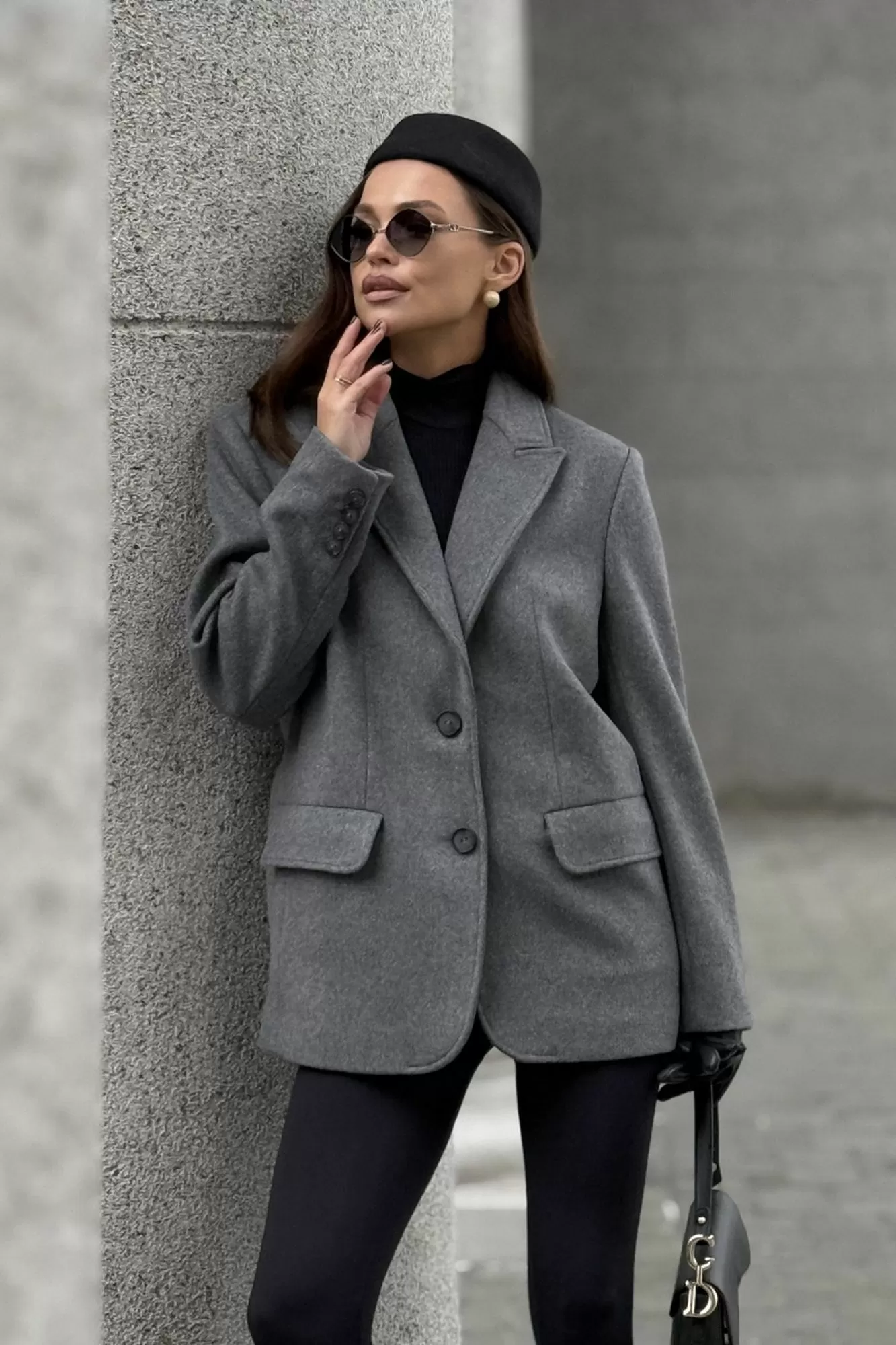 Жакет женский однобортный , выполнено из пальтовой ткани великолепного качества . Рукав втачной двухшовный со шлицей , воротник стояче-отложной с отворотами лацканов.Застежка центральная на петли пуговицы . По переду прорезные карманы с клапаном .