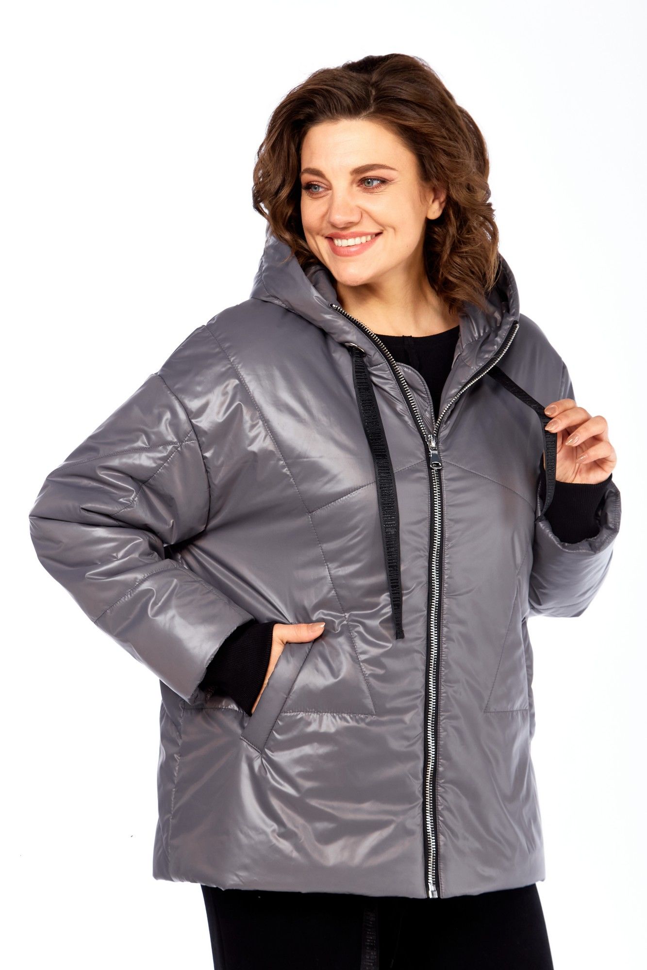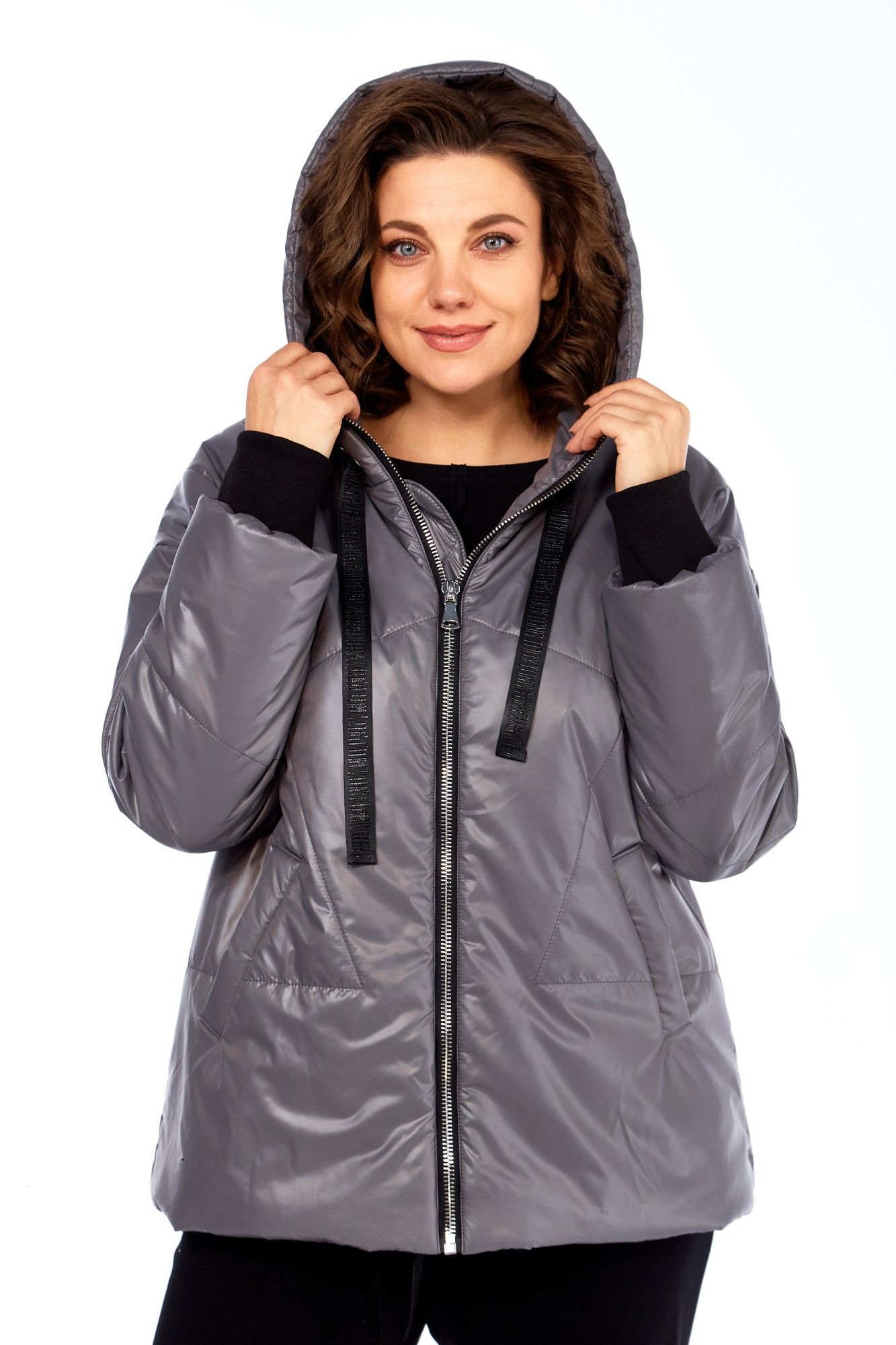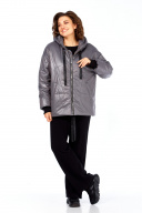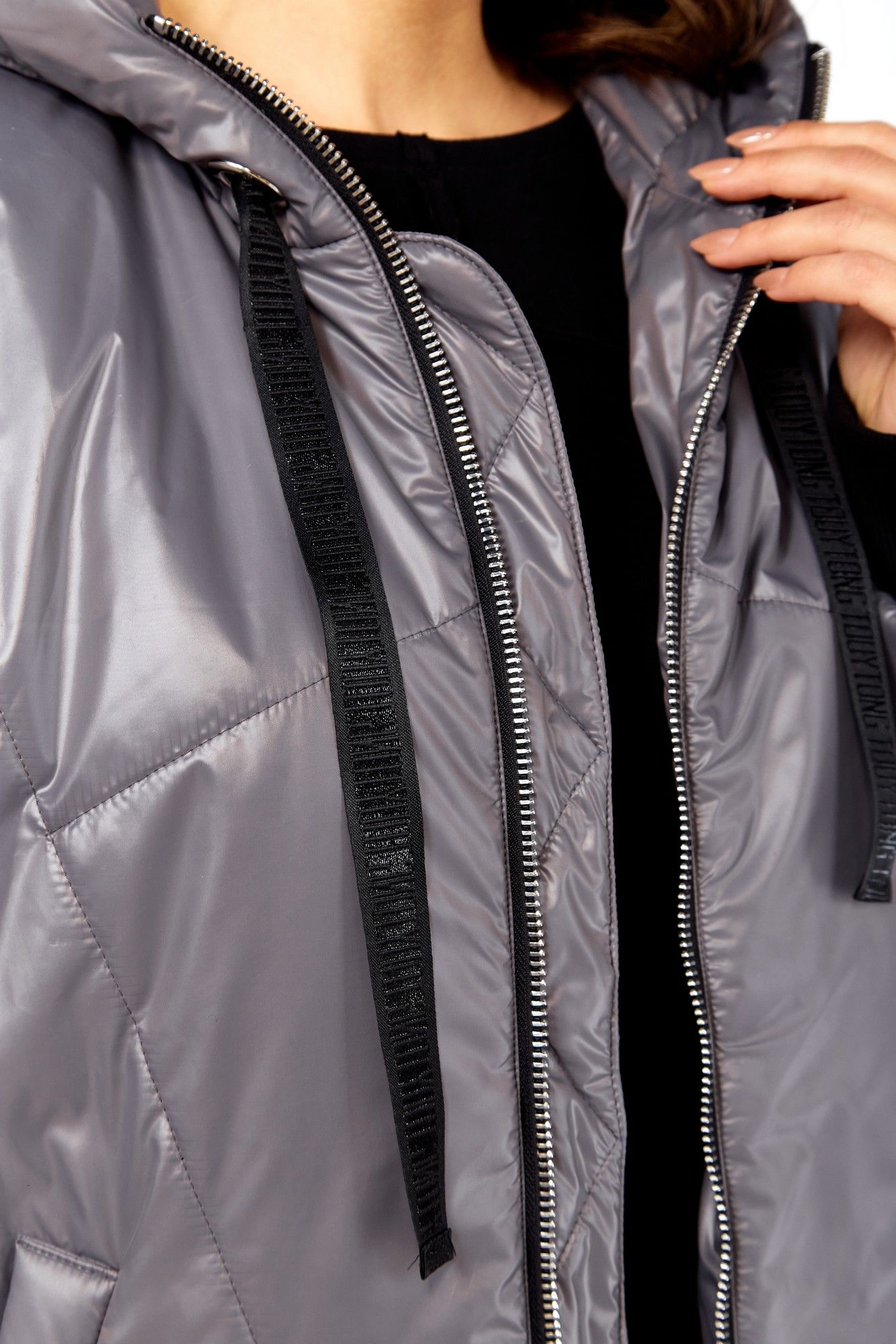 Куртка женская свободного облегания с застежкой на молнию. Спинка с фигурной стежкой. Перед с фигурной стежкой и боковыми прорезными карманами с листочкой. Воротник-капюшон с центральной и боковыми частями с кулисой, шнуром и блочками.Рукав одношовный со спущенной линией плеча с фигурной стежкой и притачными изнутри манжетами-довязами. Куртка на подкладке, с декором печатью на спинке и кулисой со шнуром по низу. Куртка утепленная. По спинке декор+нашивка.