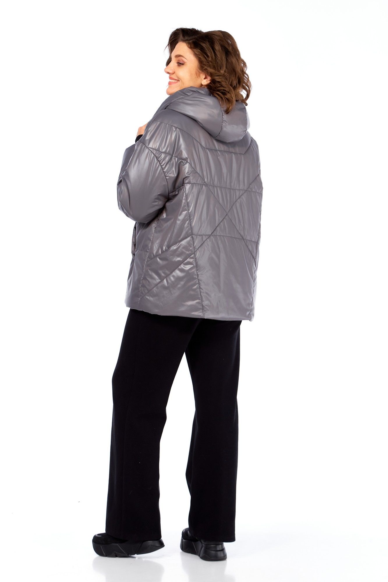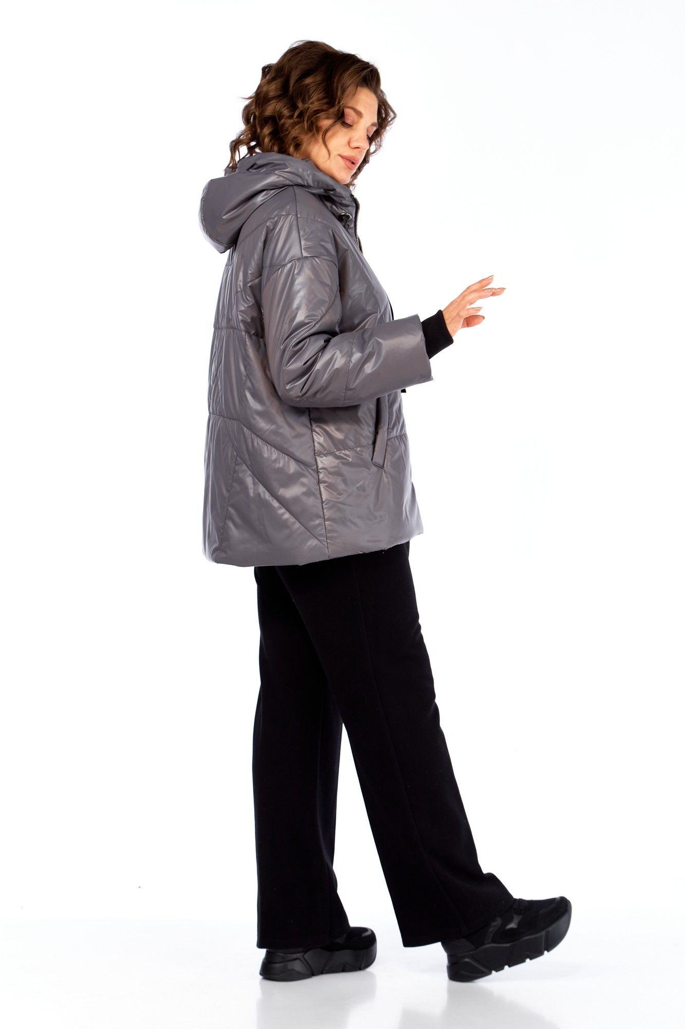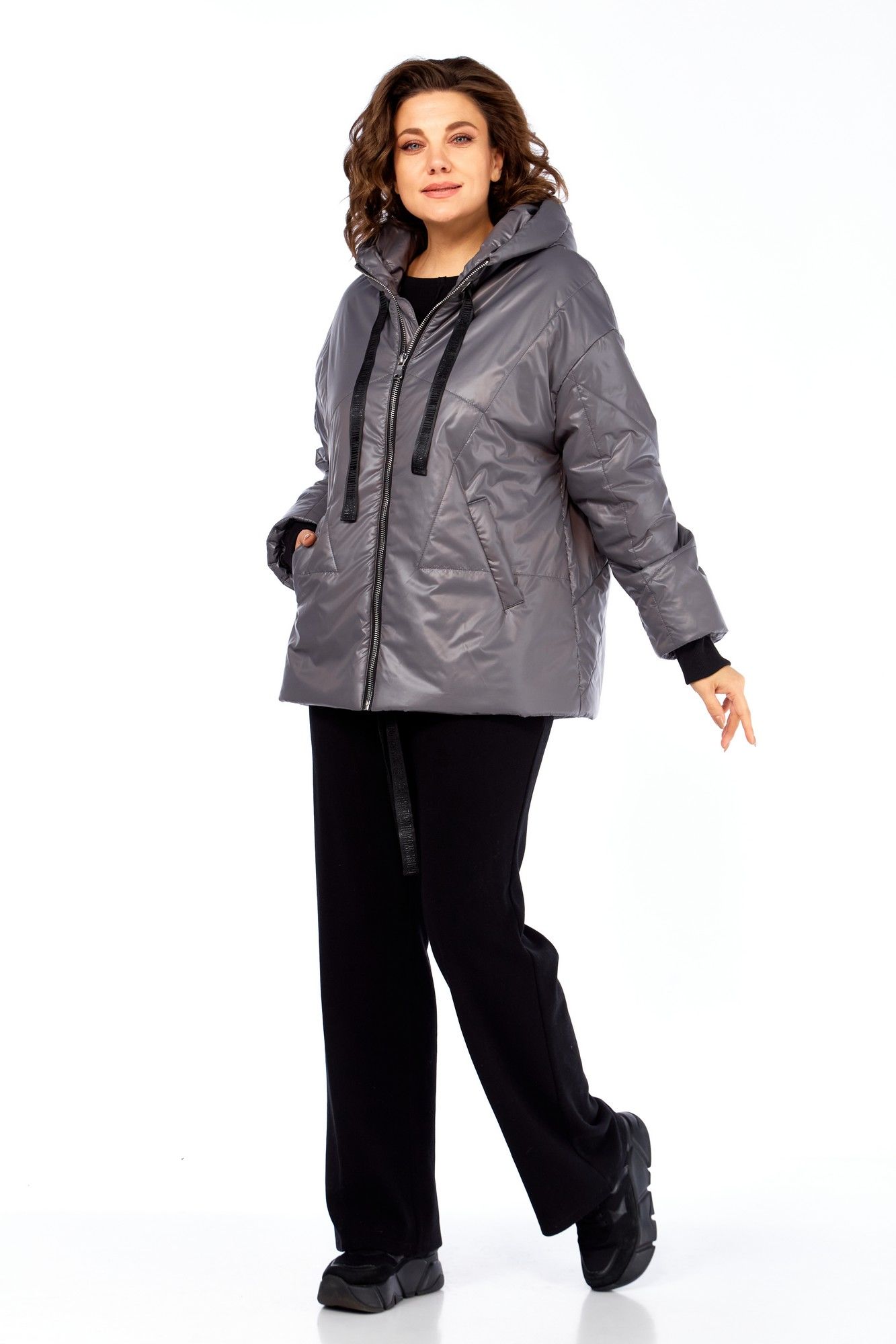 Куртка женская свободного облегания с застежкой на молнию. Спинка с фигурной стежкой. Перед с фигурной стежкой и боковыми прорезными карманами с листочкой. Воротник-капюшон с центральной и боковыми частями с кулисой, шнуром и блочками.Рукав одношовный со спущенной линией плеча с фигурной стежкой и притачными изнутри манжетами-довязами. Куртка на подкладке, с декором печатью на спинке и кулисой со шнуром по низу. Куртка утепленная. По спинке декор+нашивка.