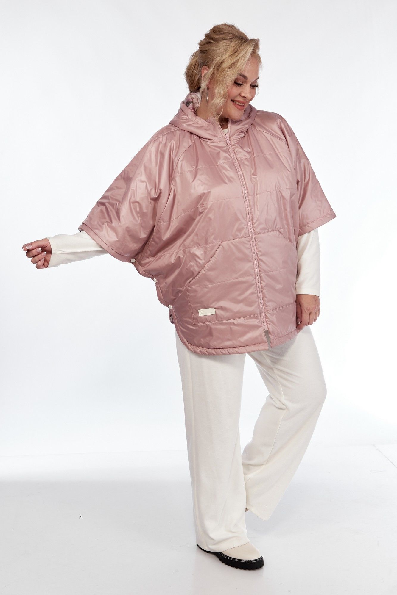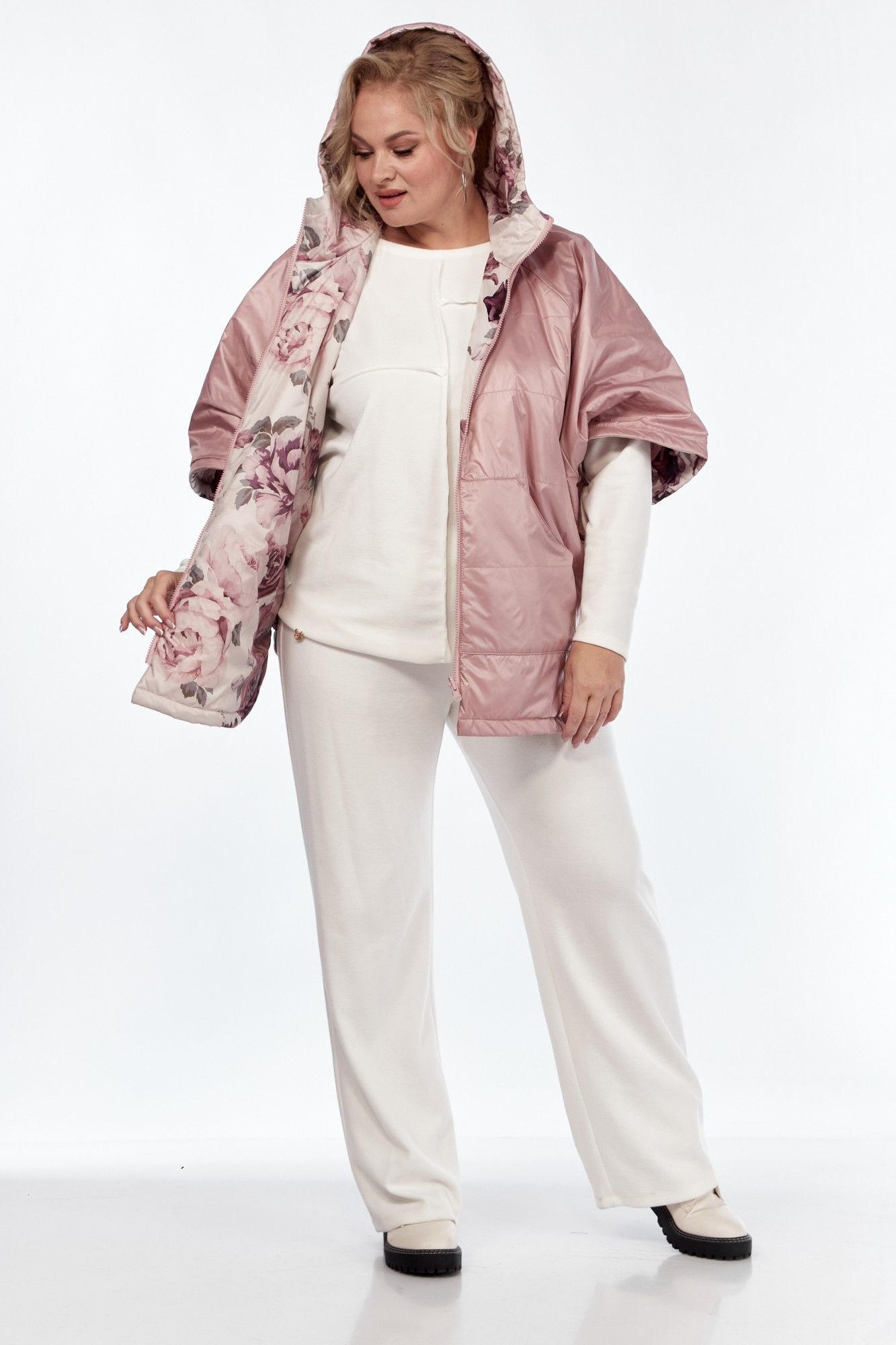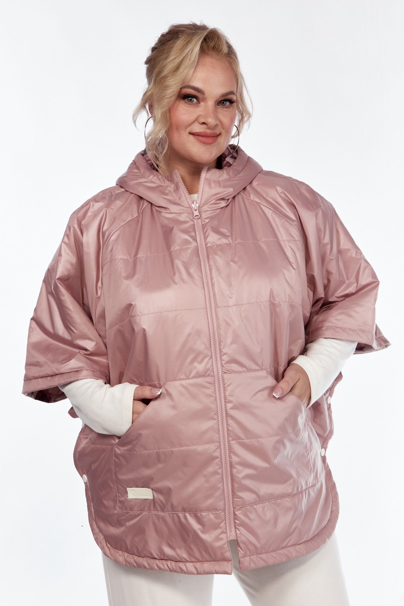 Пончо 2-ух стороннее с центральной бортовой застежкой "молния". Черная сторона: по переду и спинке выполнена горизонтальная стежка. Перед с накладными карманами "кенгуру". Вторая сторона: перед с боковыми прорезными карманами "с листочкой". По боковым швам застежка на три кнопки образует разрезы округлой формы. Воротник-капюшон. По краю отделочная строчка на 2,5 см.