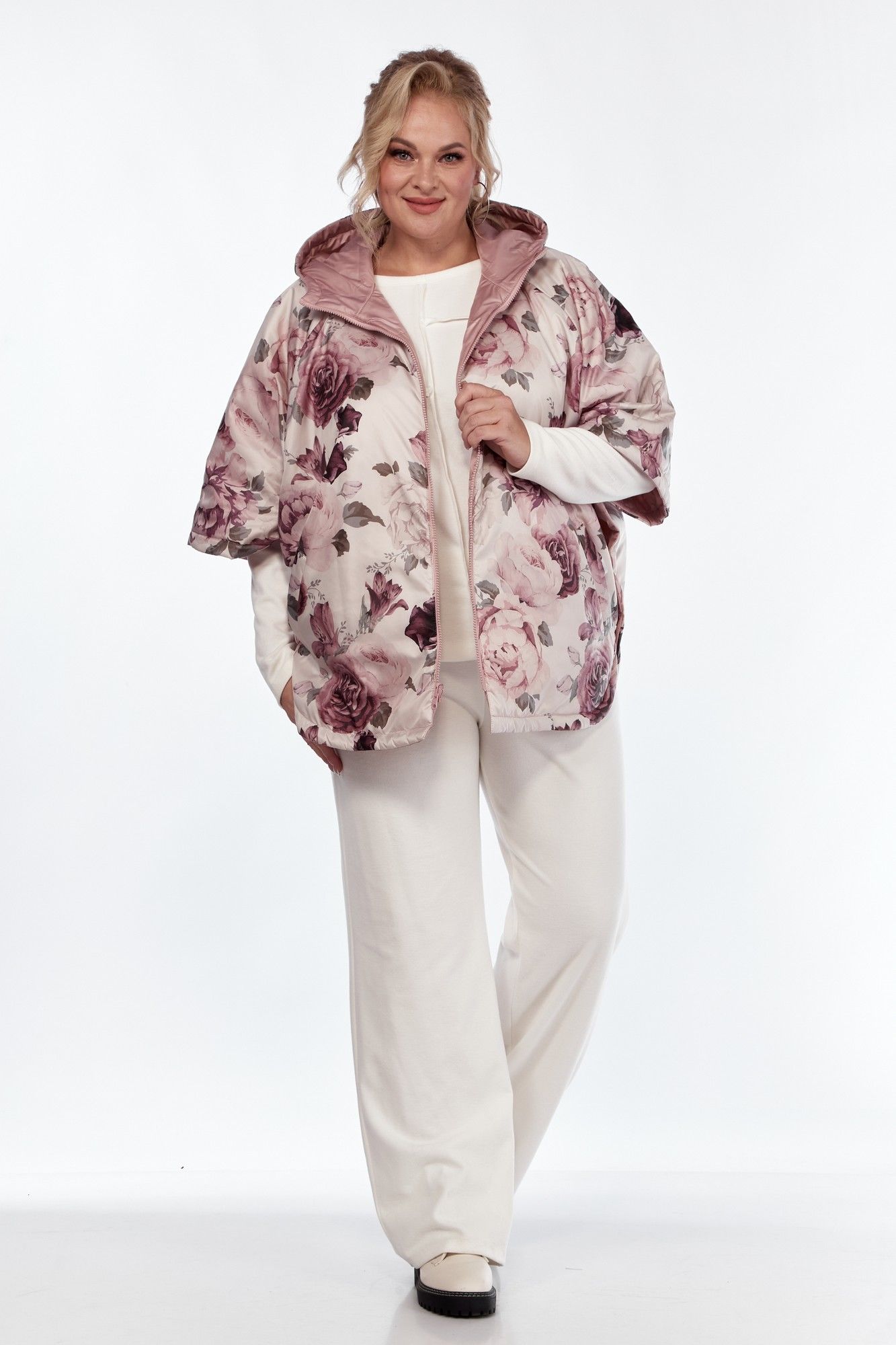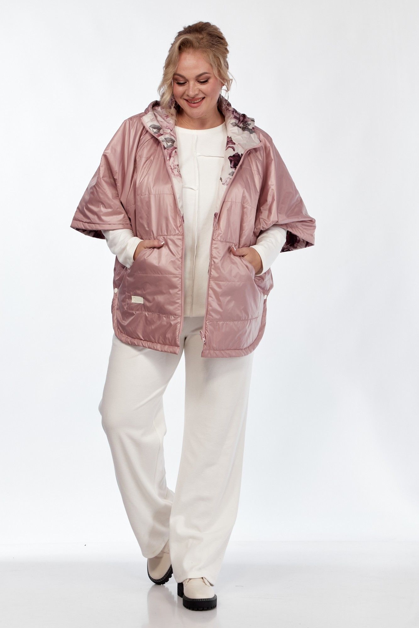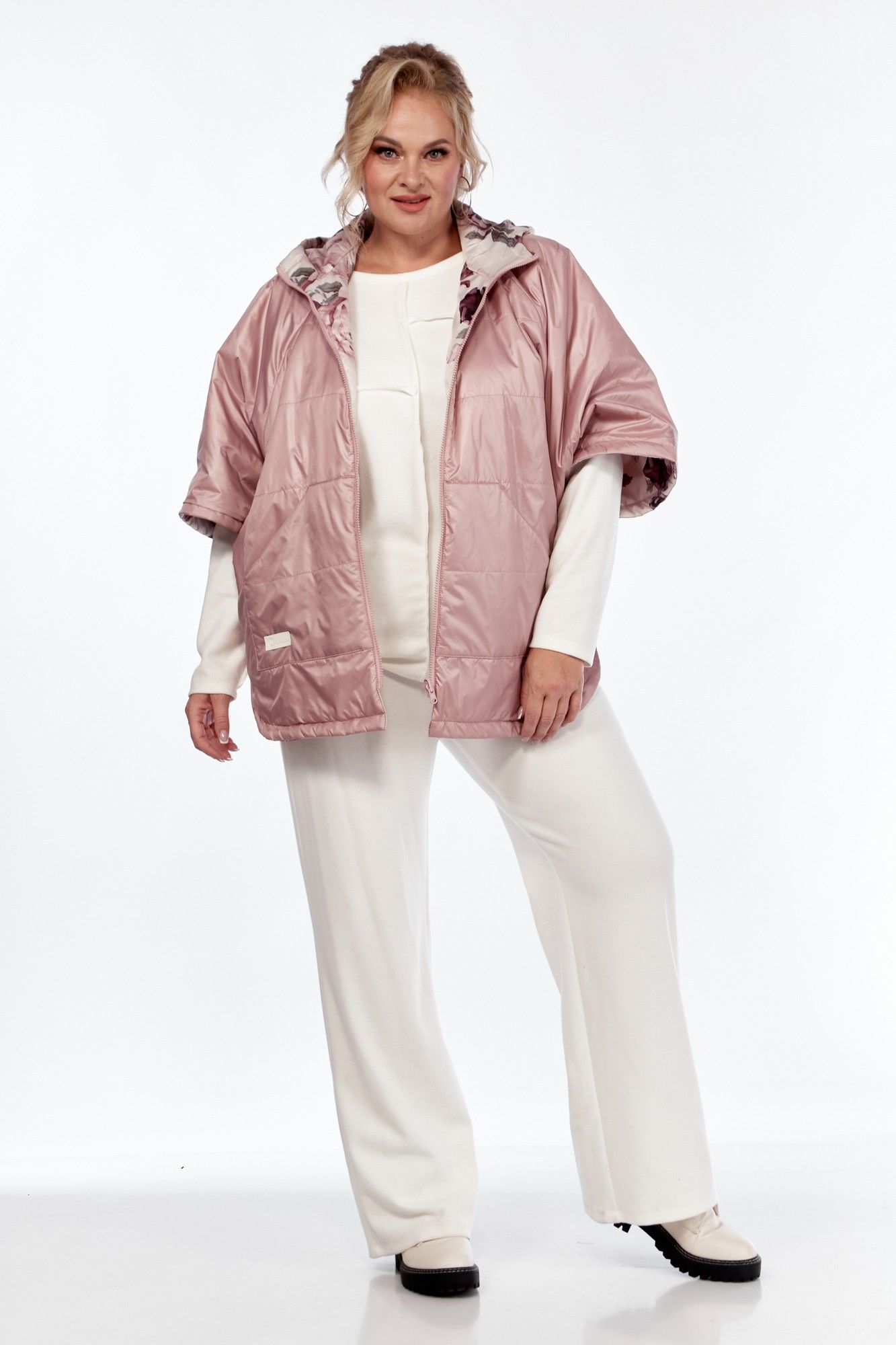 Пончо 2-ух стороннее с центральной бортовой застежкой "молния". Черная сторона: по переду и спинке выполнена горизонтальная стежка. Перед с накладными карманами "кенгуру". Вторая сторона: перед с боковыми прорезными карманами "с листочкой". По боковым швам застежка на три кнопки образует разрезы округлой формы. Воротник-капюшон. По краю отделочная строчка на 2,5 см.