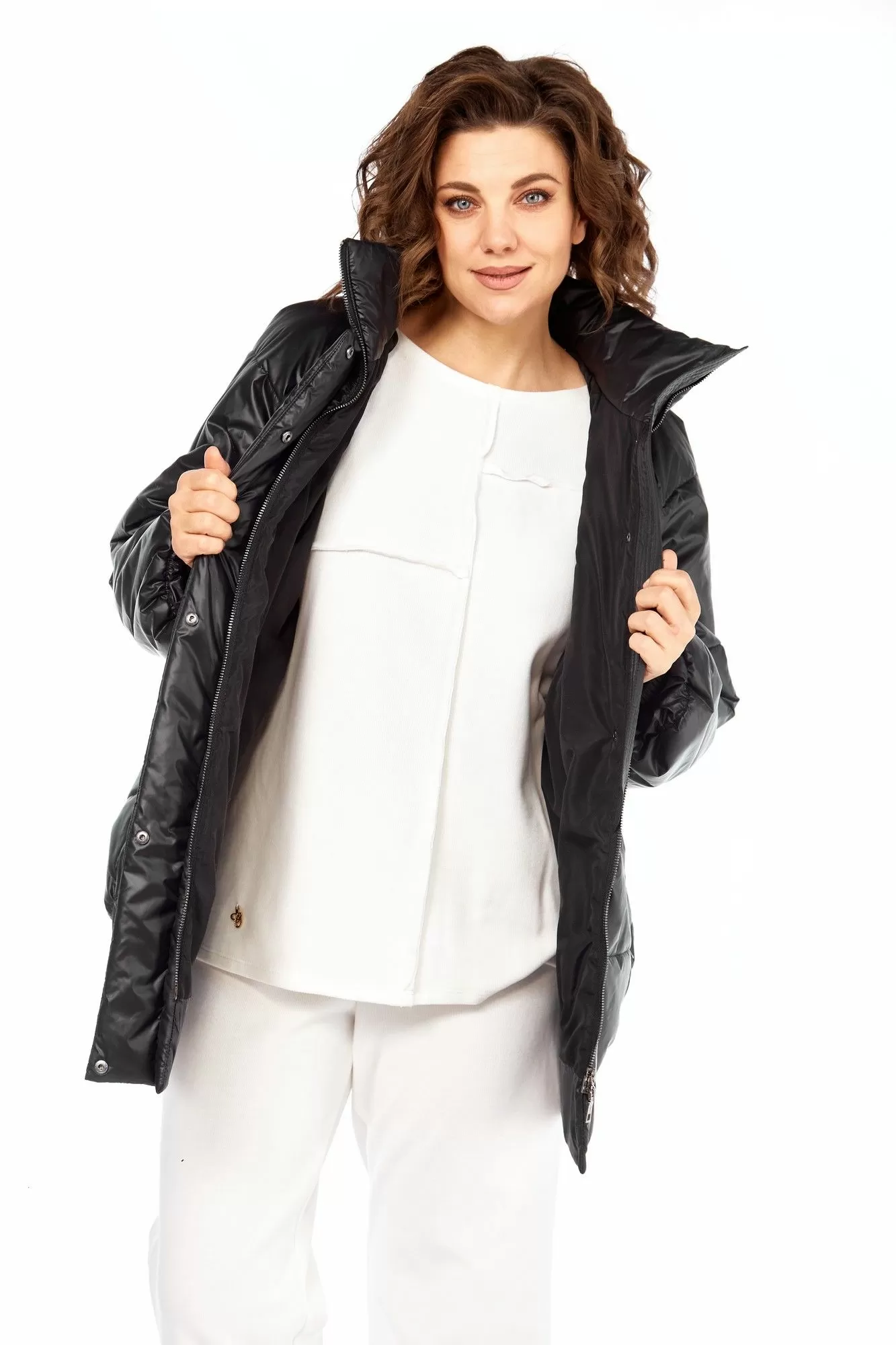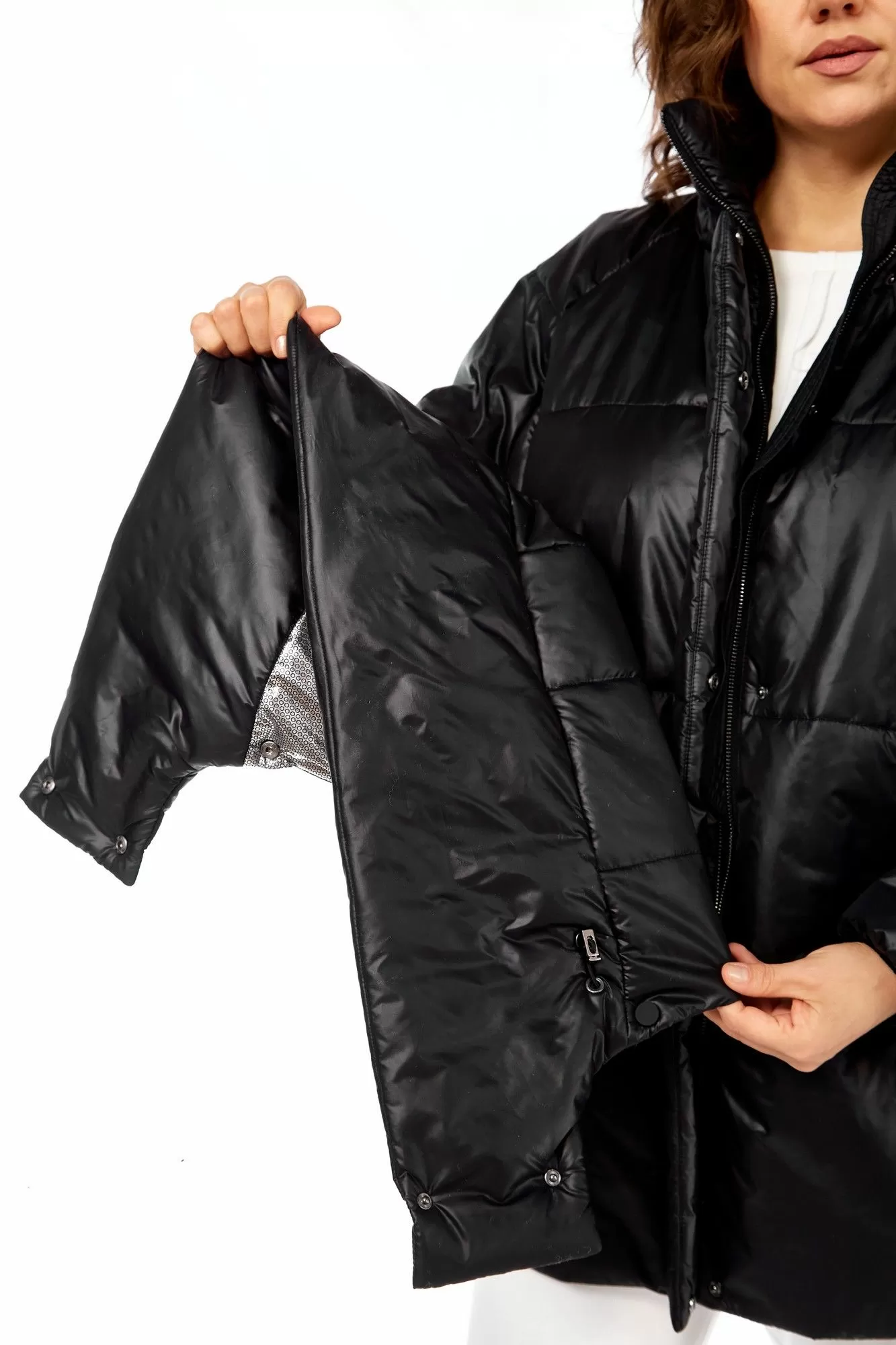 Куртка женская, прямого силуэта с рукавом реглан. Застежка центральная на тесьму молнию и планку с кнопками. По спинке рельефные швы. По переду рельефные швы, в швах карманы с молнией и отделочной деталью, по низу боковых швов-довяз. Рукав реглан с вытачкой и манжетом(довяз)- по низу. Воротник стойка. Капюшон с центральной частью, с отделочной деталью по отлету (застежка на кнопки)-съемный, фиксируется с помощью кнопок. На центральной части под молнией -ветровик. В качестве отделки используется фурнитура и детали. Температурный режим до -10 градусов.