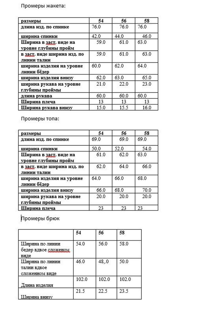 Топ: 80% шелк, 20% полиэстер Брюки и жакет: 65% вискоза, 25% полиэстер, 5% спандекс