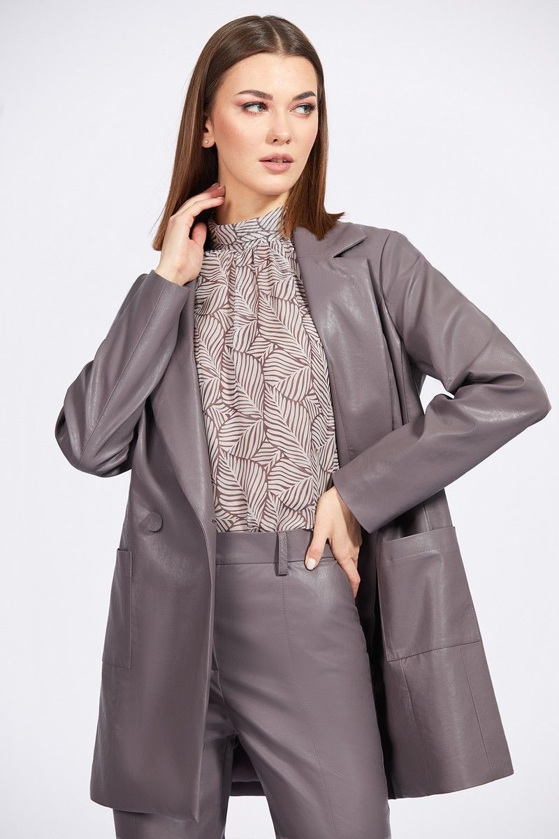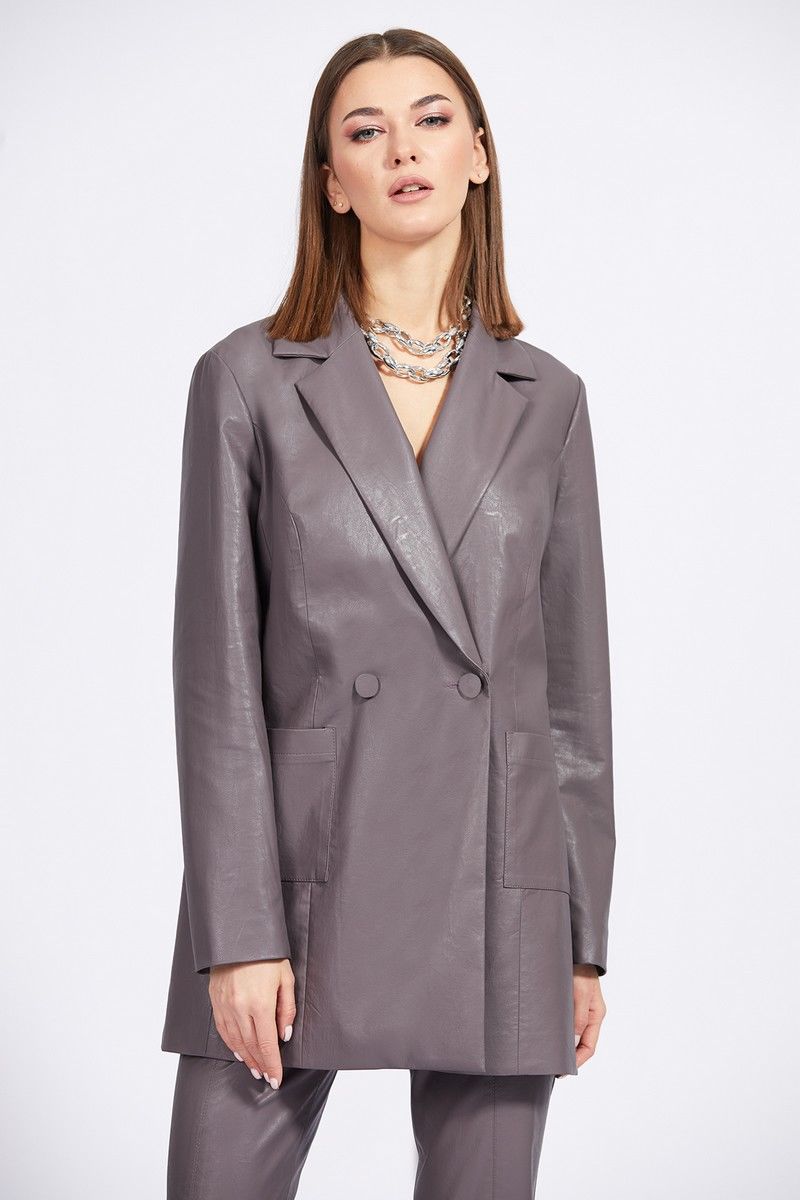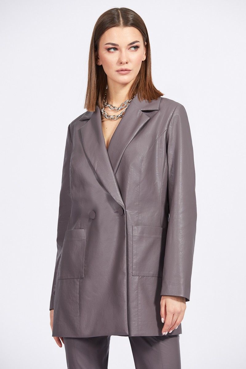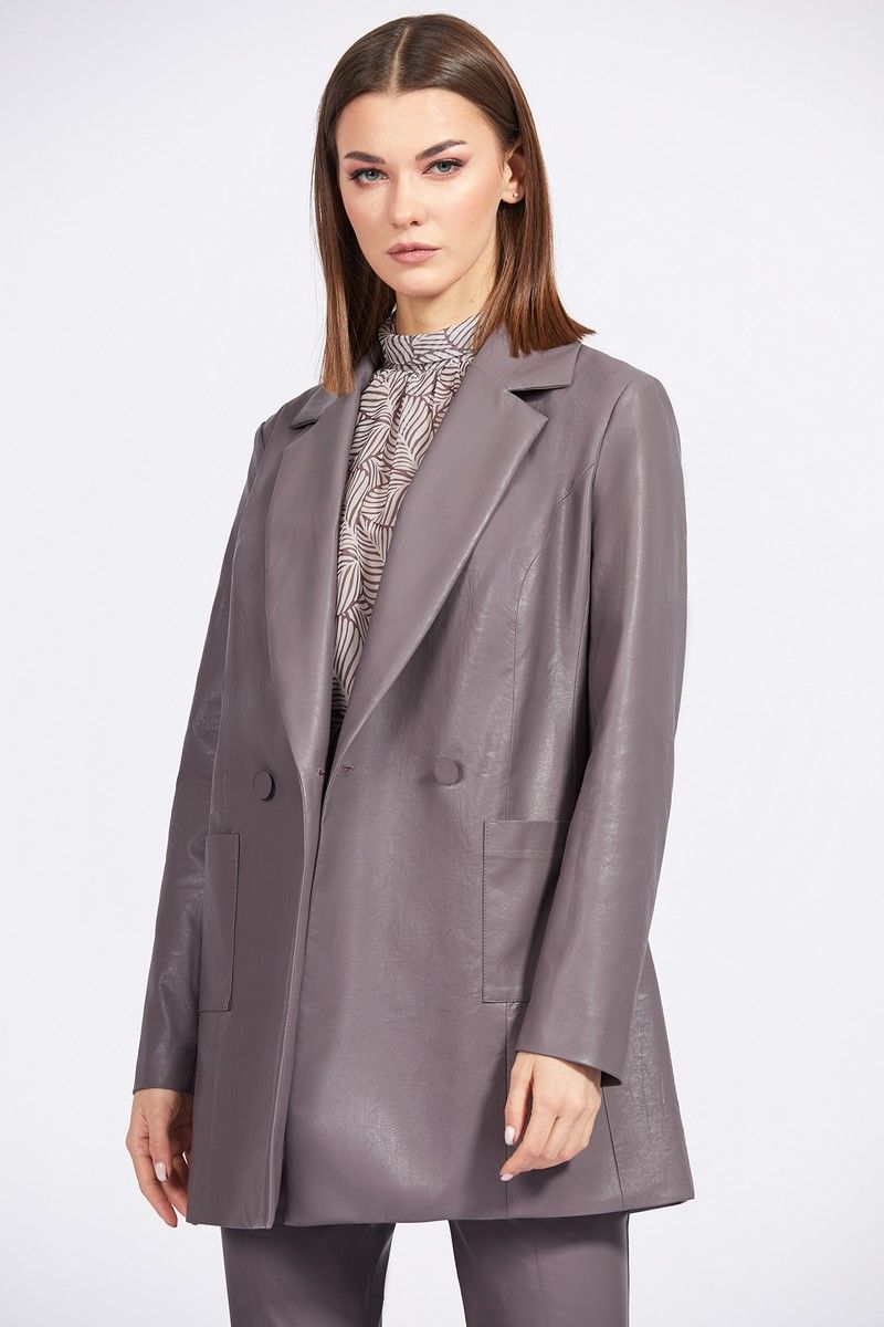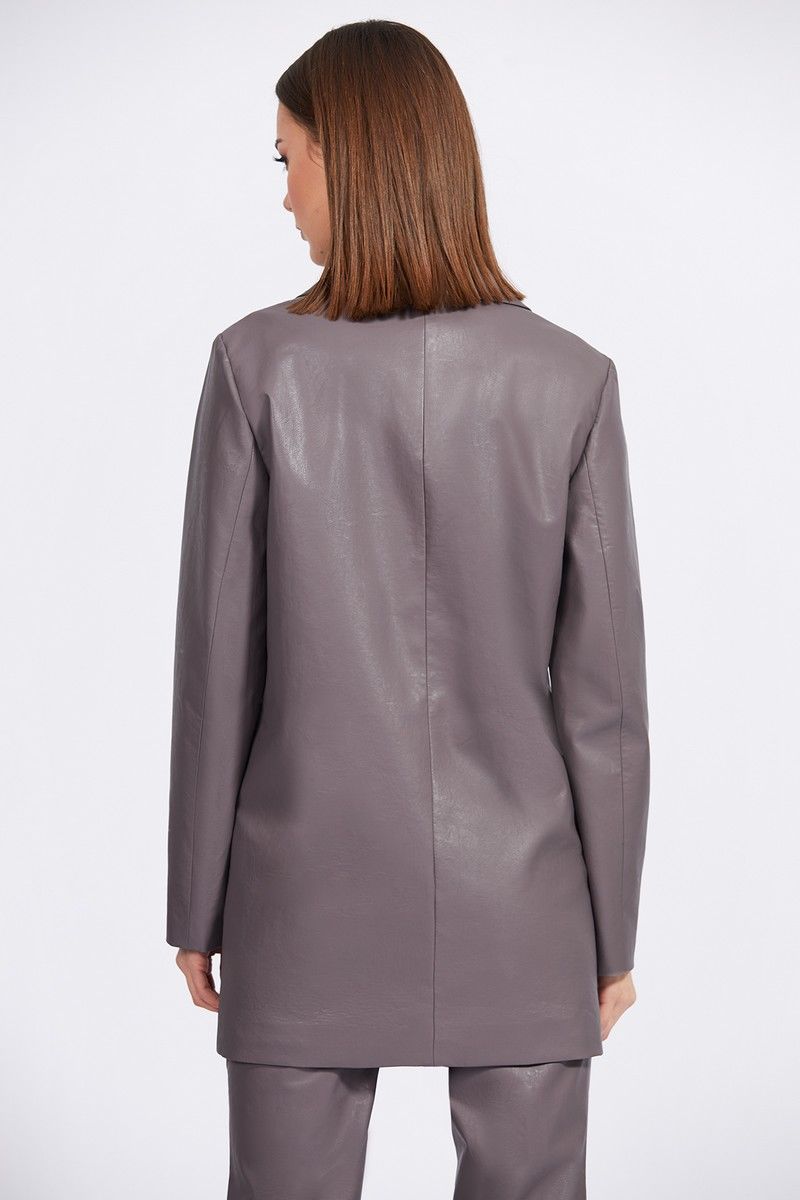 Жакет выполнен из экокожи. Жакет прямого силуэта, длиной ниже линии бедер. Застежка центральная, двубортная на пуговицы. Спереди накладные карманы. Спинка со средним швом. Воротник пиджачного типа. Рукав втачного покроя, двухшовный. Жакет на притачной по низу подкладке. Длина жакета: р.44-48 - 78 см, р.50-54 - 79 см. Длина рукава: р.44-48 - 61,5 см, р.50-54 - 62,5см. 44 46 48 50 52 54 Длина по центру спинки 78 78 78 79 79 79 Длина рукава 61,5 61,5 61,5 62,5 62,5 62,5 Объем по груди 106 110 114 118 122 126 Объем по талии 103 107 111 115 119 123 Объем по бедрам (низу) 109 113 117 121 125 129 Объем рукава вверху 35 37 39 41 43 45 Объем рукава внизу 25 25 25 26,5 26,5 26,5