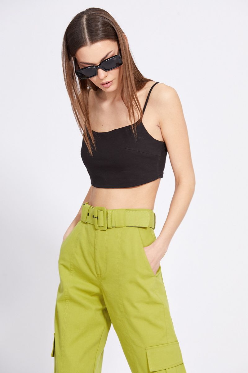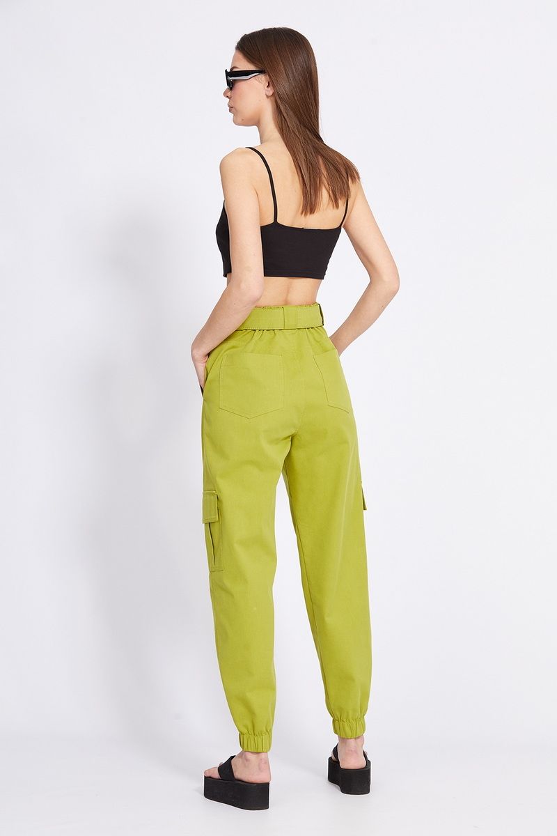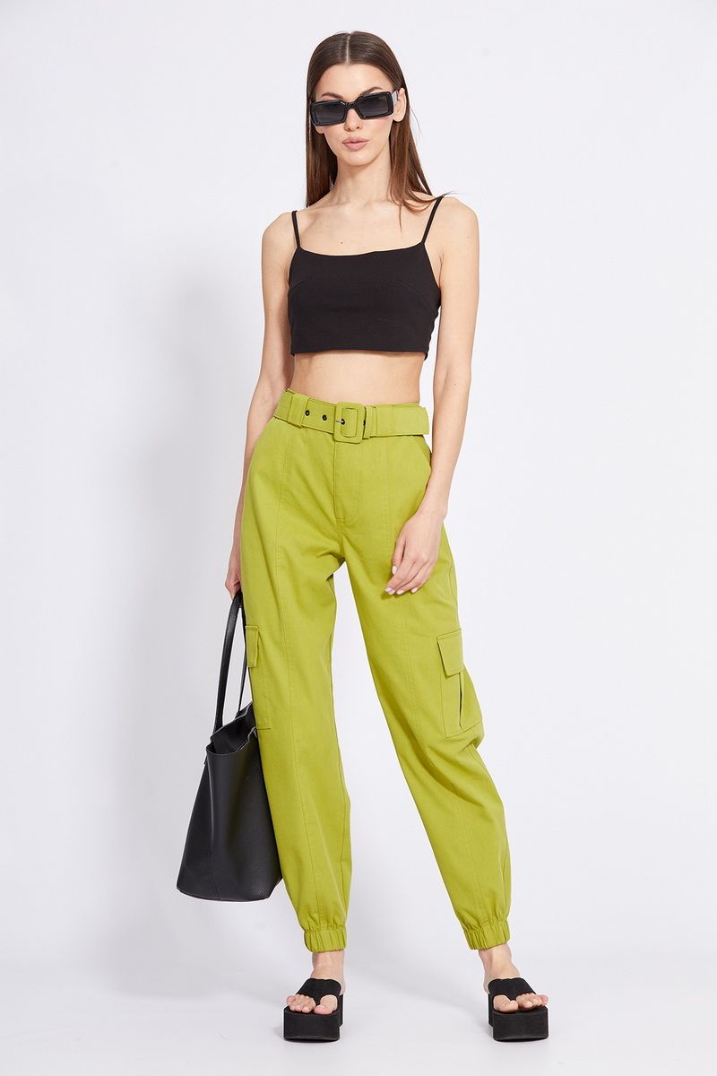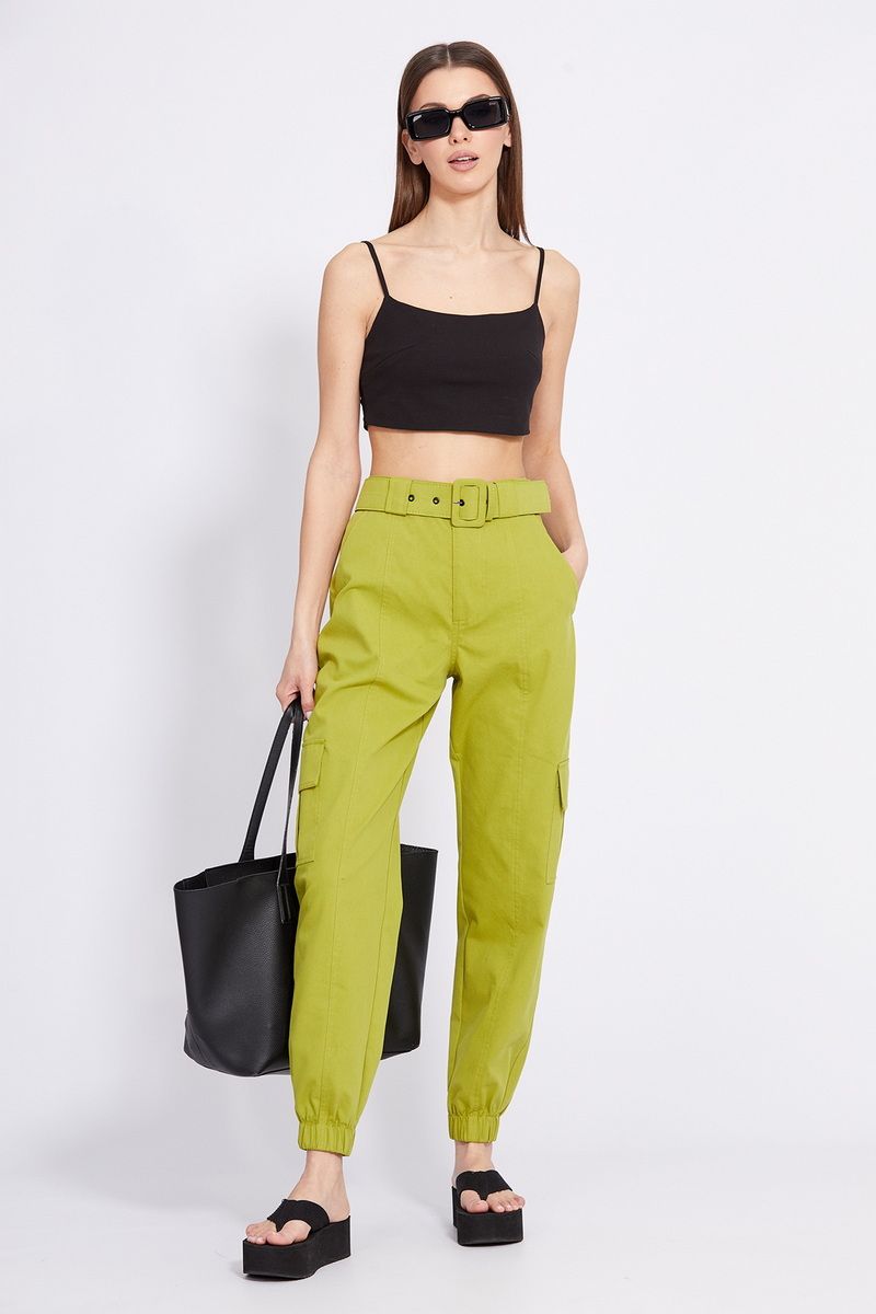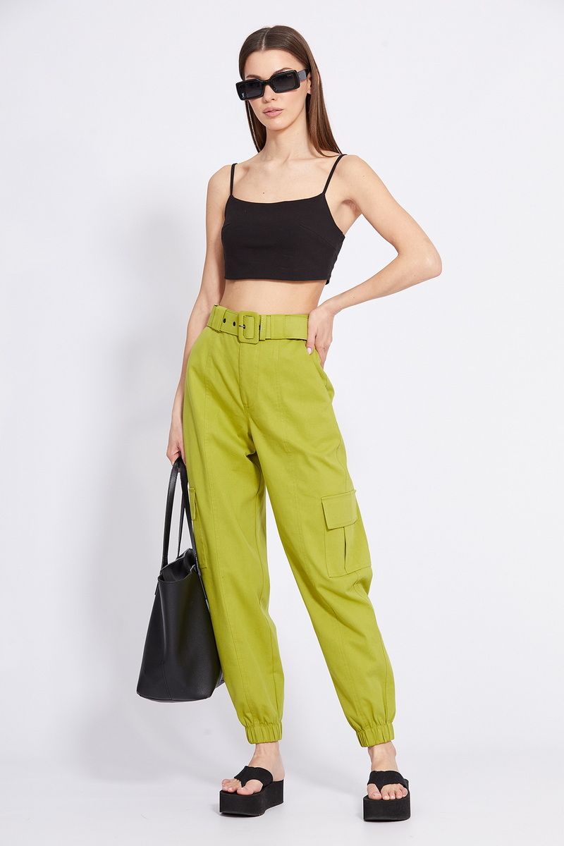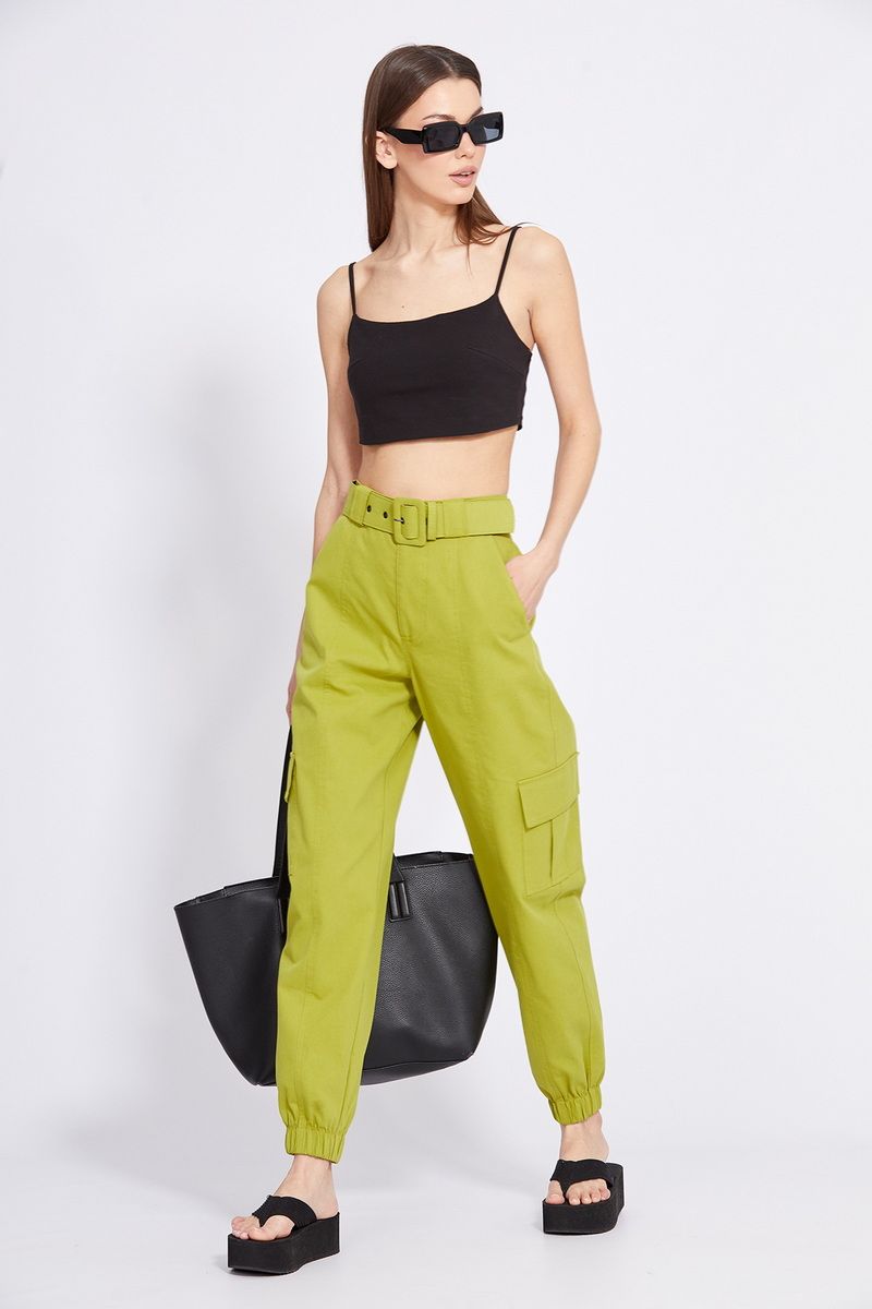 Брюки-карго выполнены из тонкого джинса. Брюки прямого покроя, на притачном поясе, в который частично вставлена эластичная тесьма по задней части. Спереди застежка на молнию с гульфиком и пуговицу. Карманы боковые с наклонным входом. Сзади накладные карманы, по боковым швам накладные карманы с клапанами. Низ брюк обработан манжетой с эластичной тесьмой. В комплект входит съемный ремень из основной ткани с обтяжной пряжкой. Длина брюк с поясом: р.42-46 - 104 см, р.48-52 - 105,5 см. 42 44 46 48 50 52 Длина по боковому шву 104 104 104 105,5 105,5 105,5 Объем по талии 66/76 70/80 74/84 78/88 82/92 86/100 Объем по бедрам 104 108 112 116 120 124 Объем по голени 43 44 45 46 47 48 Ширина пояса 4,5 4,5 4,5 4,5 4,5 4,5