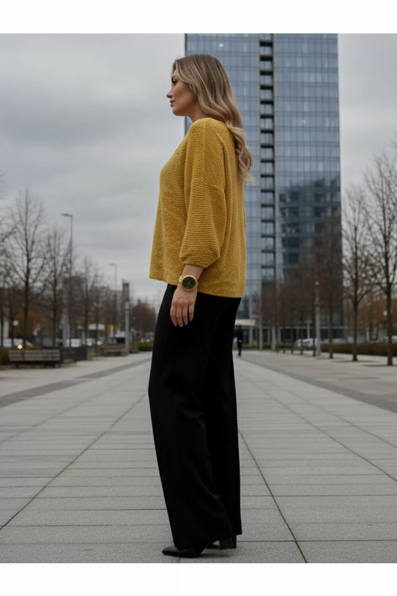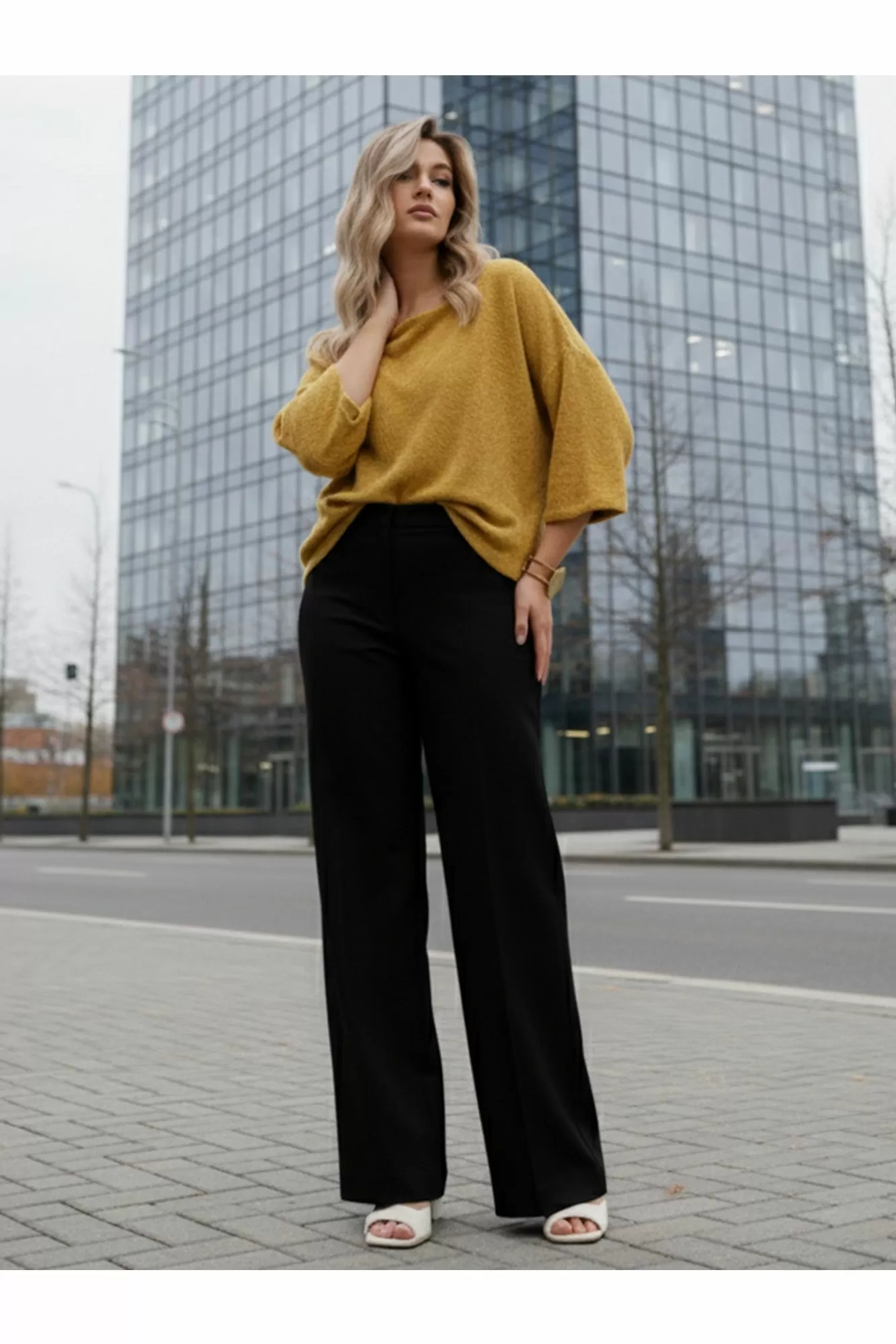 Джемпер прямого силуэта свободного покроя. Вырез – лодочка, рукава прямые длинные.