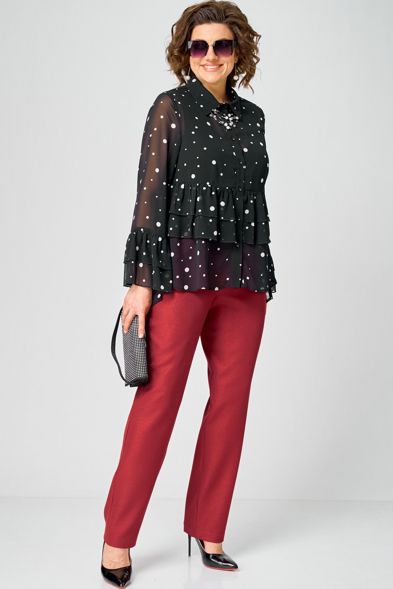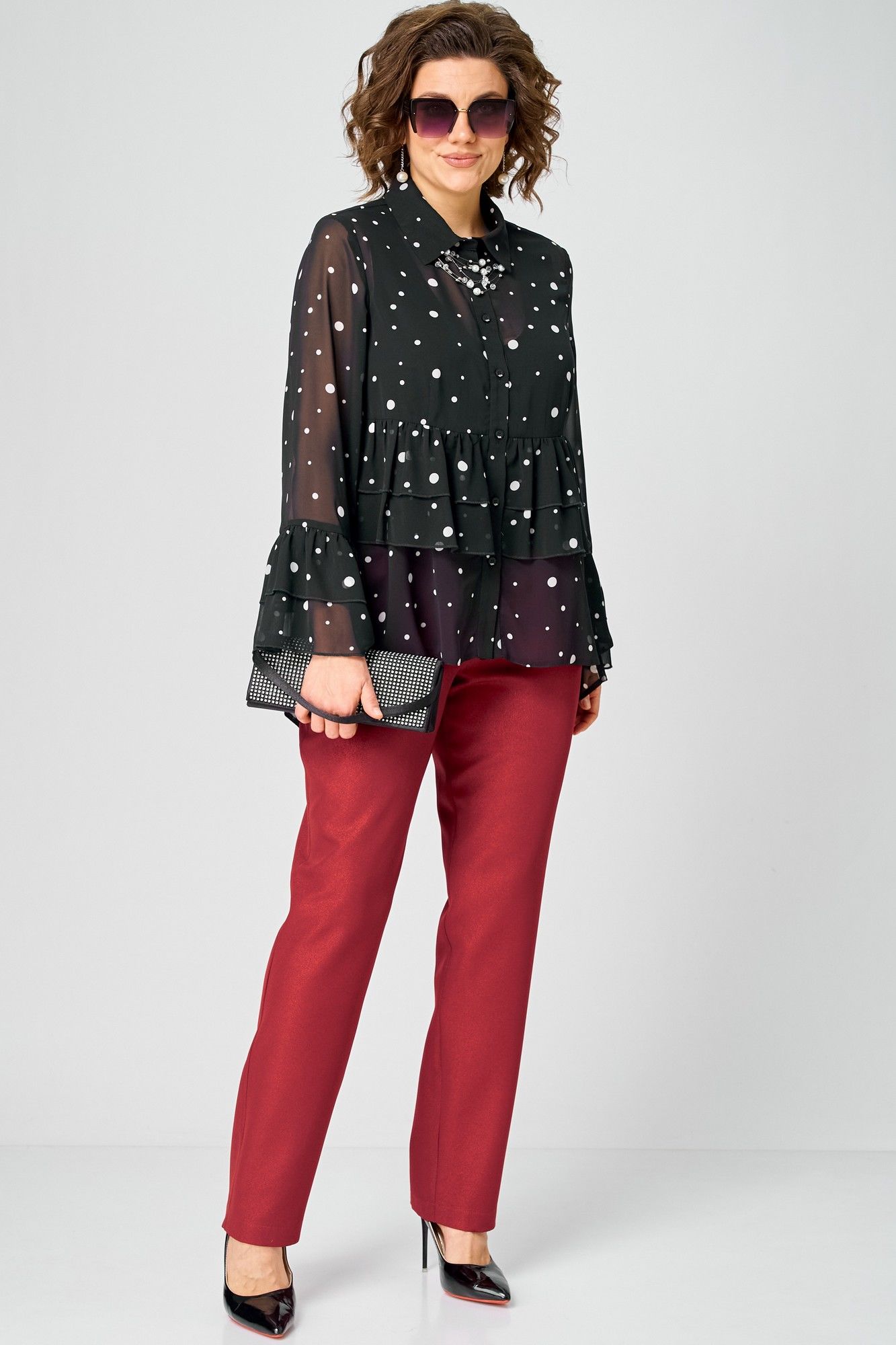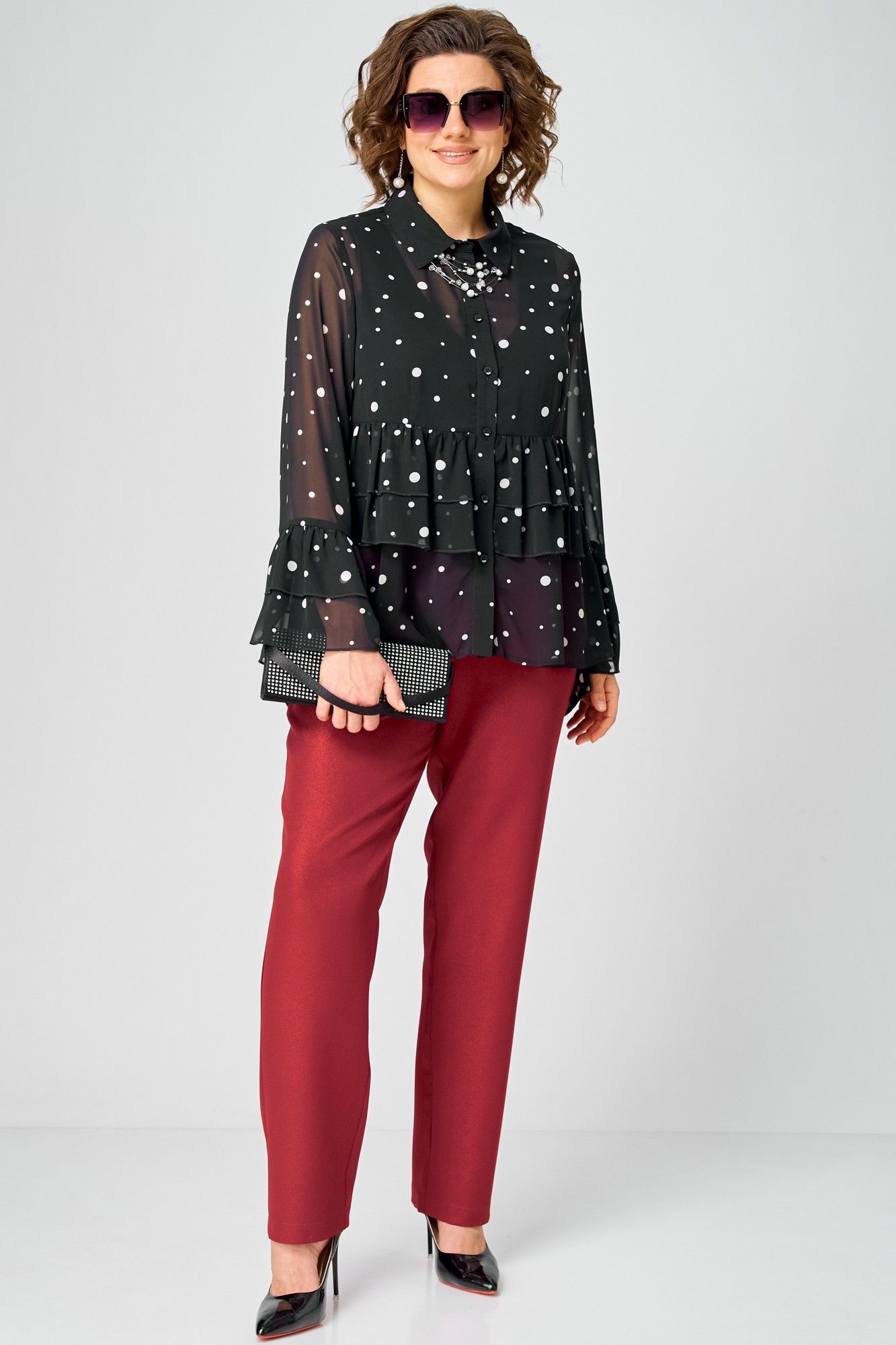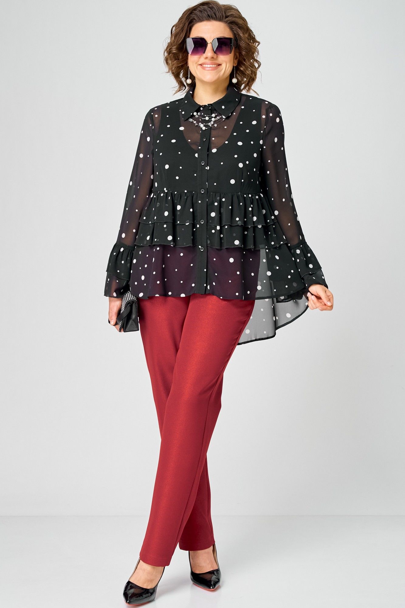 Блуза женская шикарная нарядно - повседневнаая полуприлегающего силуэта на подклдке, выполнена из красивого шифона с принтом. Вырез горловины воротник на стойке рубашечного типа, рукав втачной по низу с притачными воланми. Застежка доверху на обметанные петли и пуговицы, низ блузы фигурный (по спинке длиннее). По переду блузы притачные воланы, в боковых швах обработаны разрезы. Декором блузы служит принт амой ткани и отделочные элементы в виде воланов.