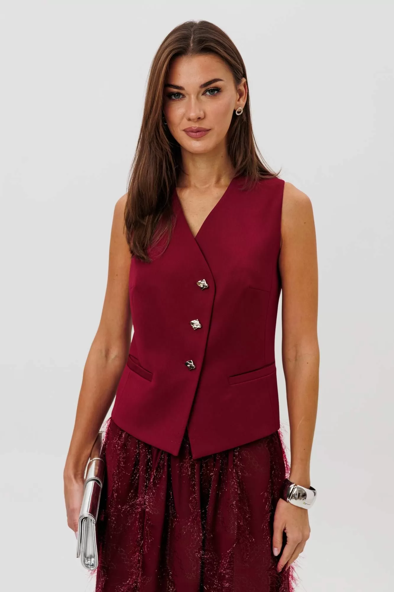 Актуальный комплект, в котором строгая геометрия жилета гармонично сочетается с романтичной женственностью многослойной юбки. Лёгкий шифон с фактурным переливом делает образ выразительным и праздничным, а продуманная посадка юбки обеспечивает красивую линию талии и динамику силуэта.