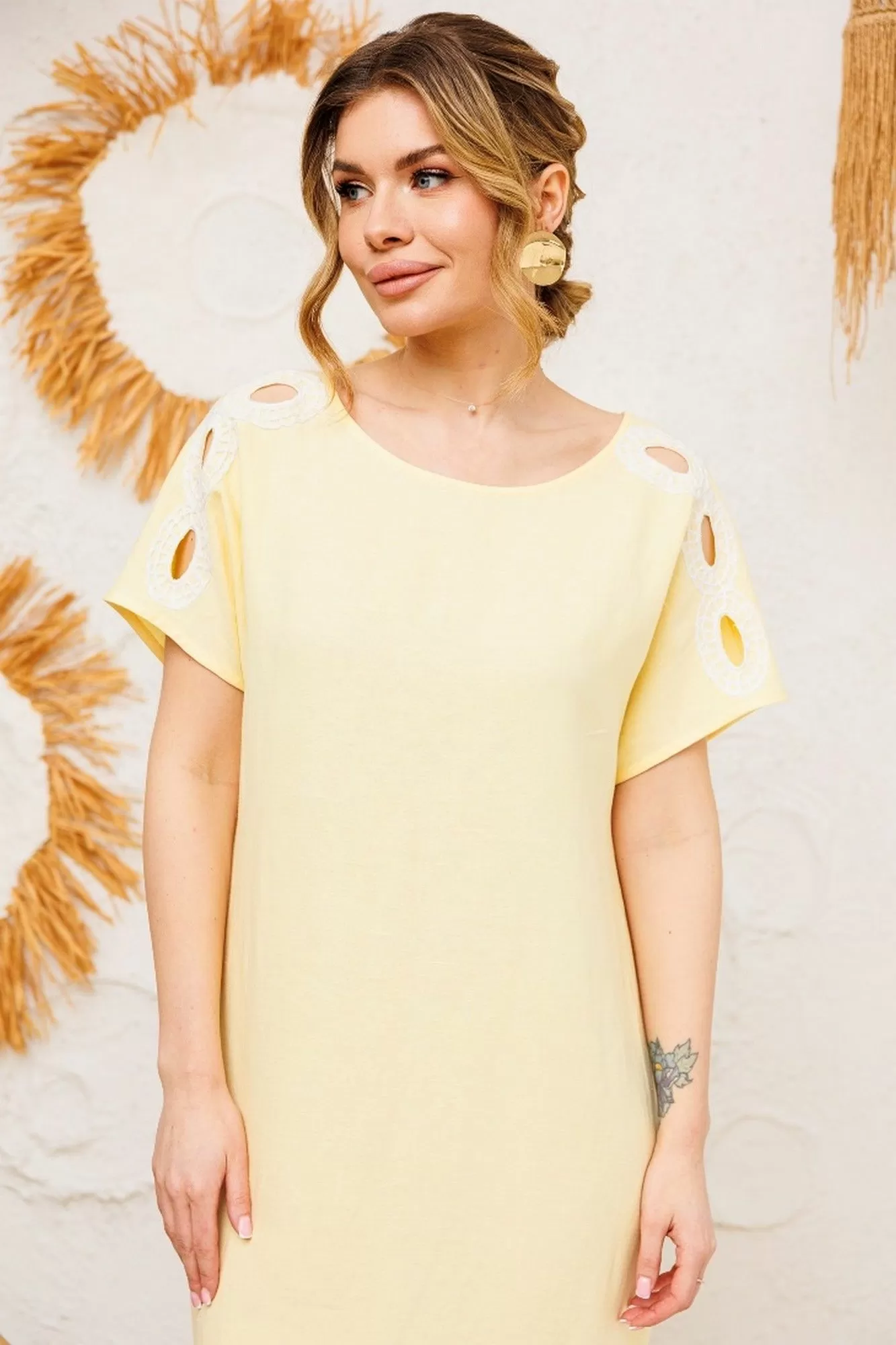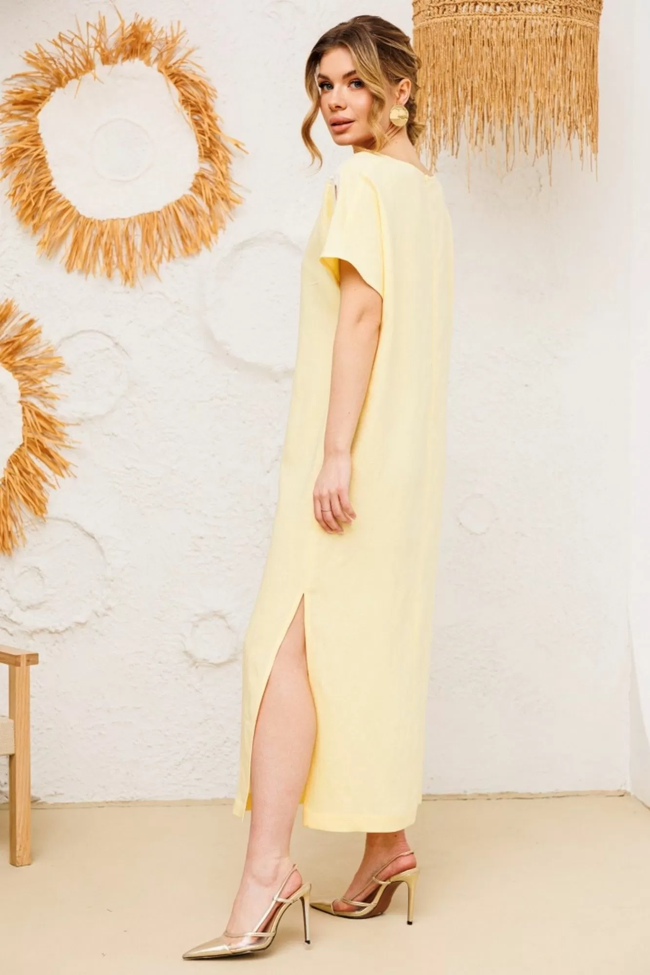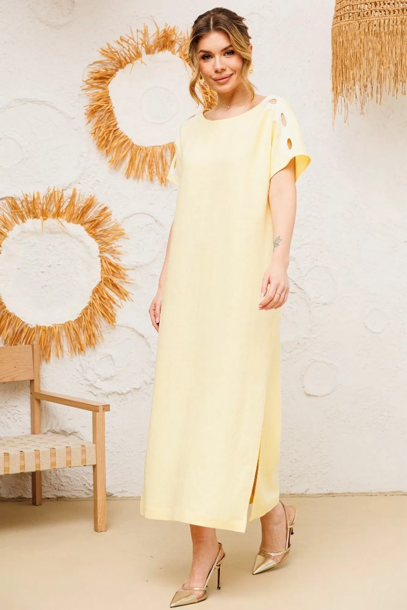 Платье свободного силуэта, прямое, по бокам разрезы, на плечах