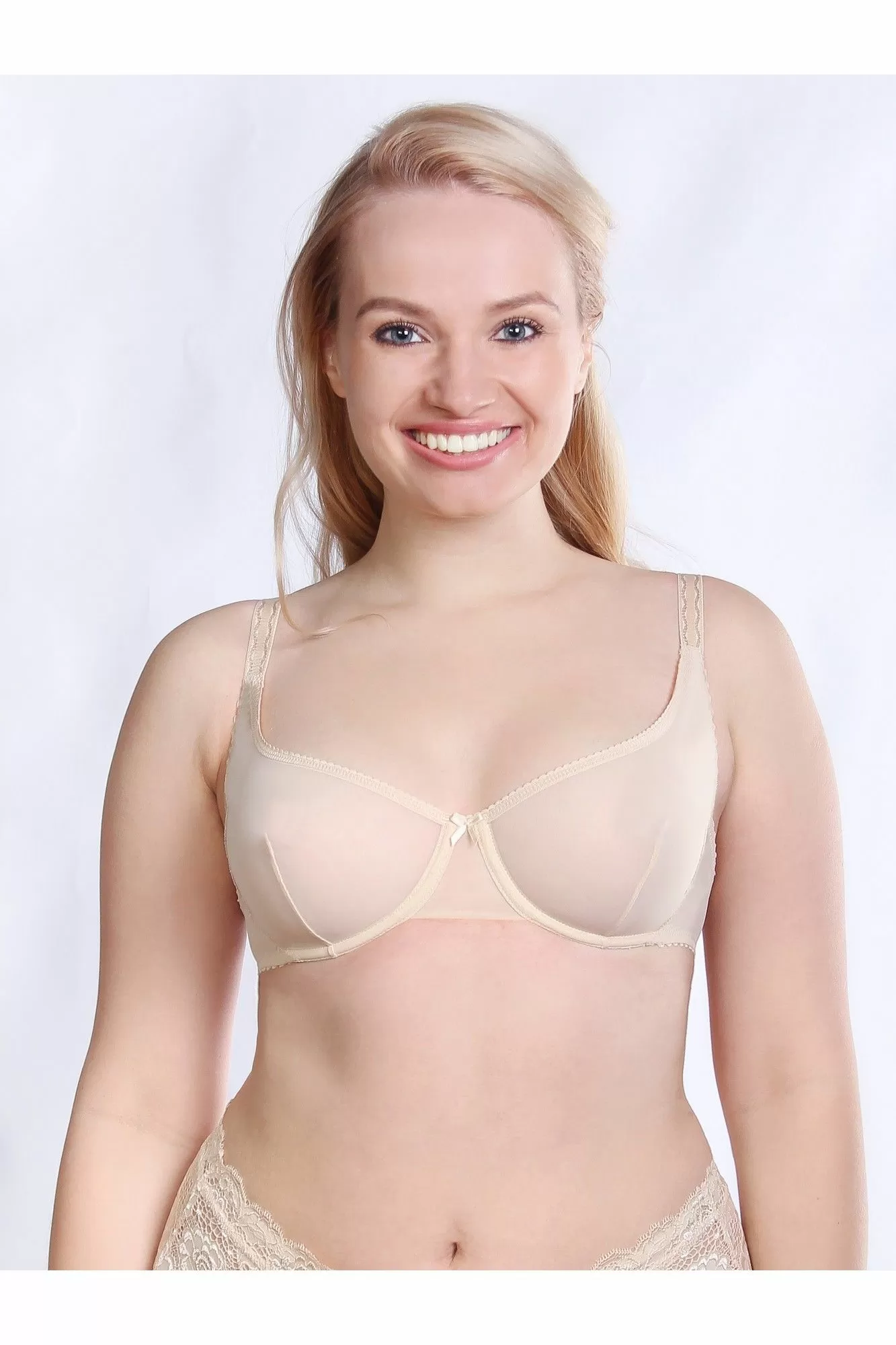 Бюстгальтер с мягкой чашкой на каркасах. Выполнен из тонкого сетчатого полотна. Чашка без уплотнения, с вертикальной выточкой. Спинка в форме буквы U для оптимальной поддержки. Отличная посадка и поддержка груди в её естественном положении. Бретели из эластичной ленты с регулировкой по длине. Застёжка сзади на крючки и петли, 1*3 крючка.