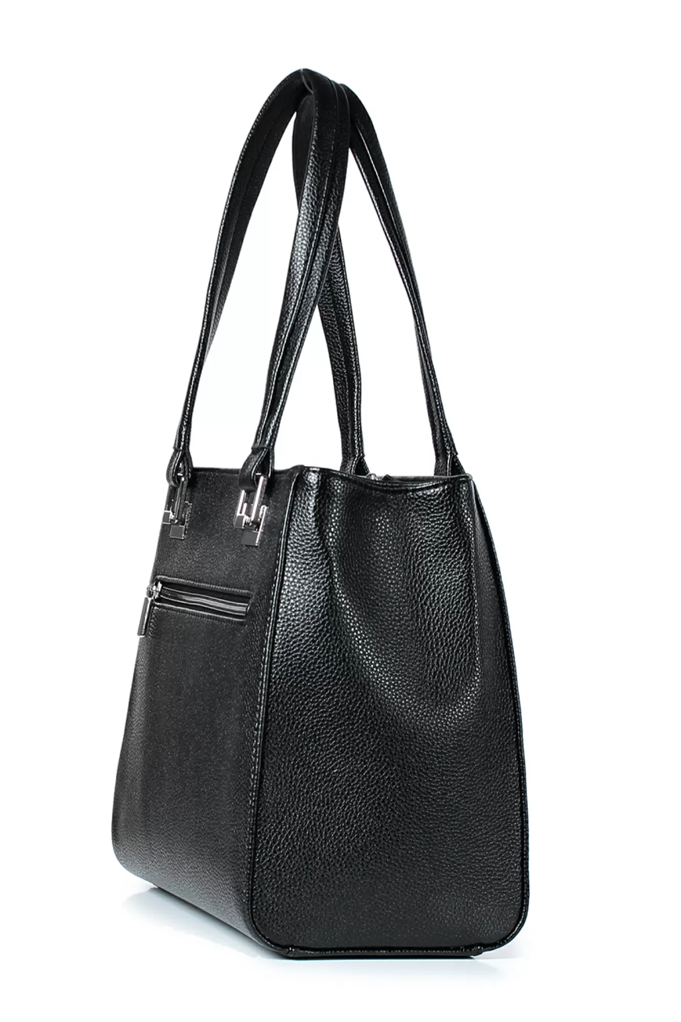 Сумка на одно отделение,закрывающееся на застежку-молнию,с двумя ручками длиной 520+-10мм,на металлических р/держателях,с карманом на задней стенке,закрывающимся на застежку-молнию,фурнитура-никель. Размеры: 285x245x147