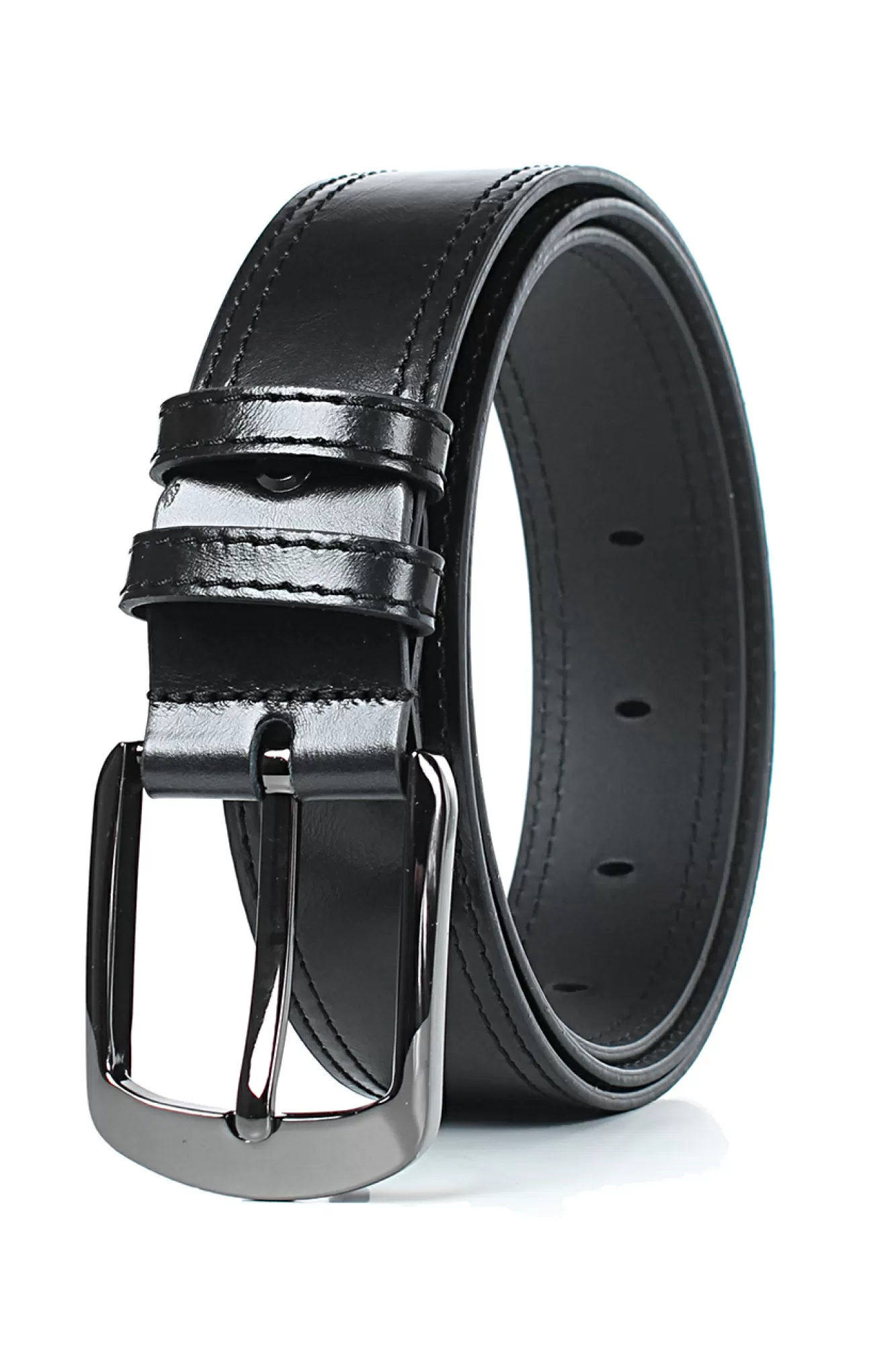 Ремень с краями в обрезку, с обстрочкой краёв, с пряжкой, с двумя шлёвками. Размеры: