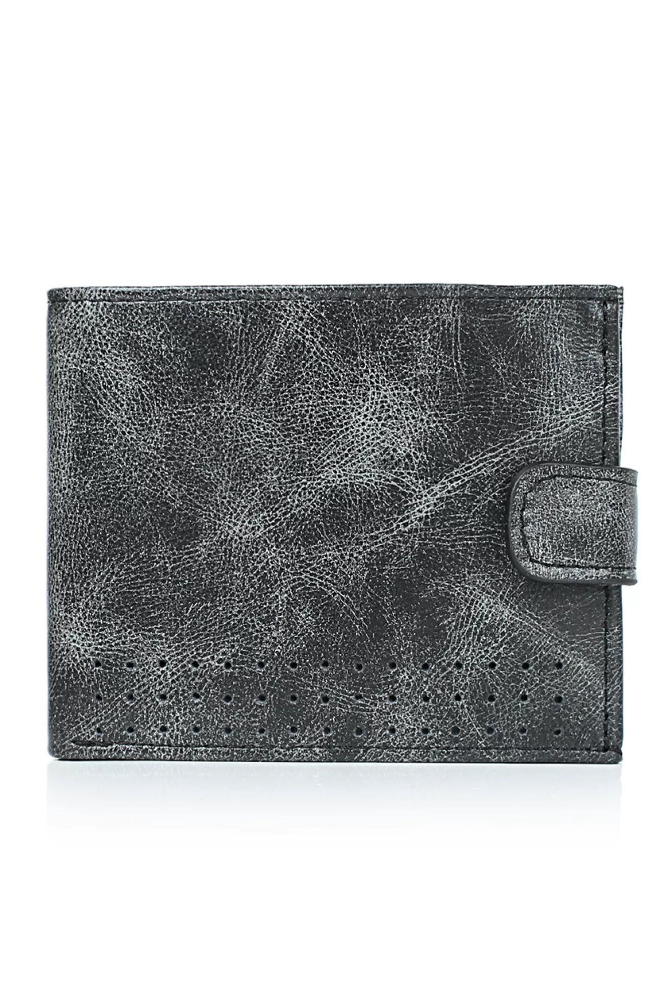 Портмоне закрывается цупфером на кнопку, с перфорацией на корпусе. Размеры: 130x100x20