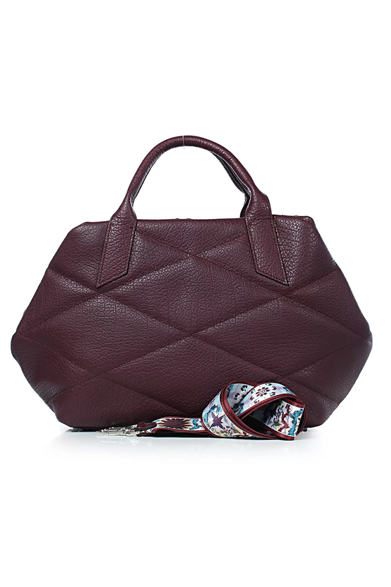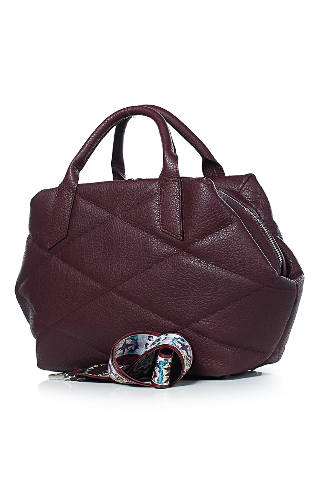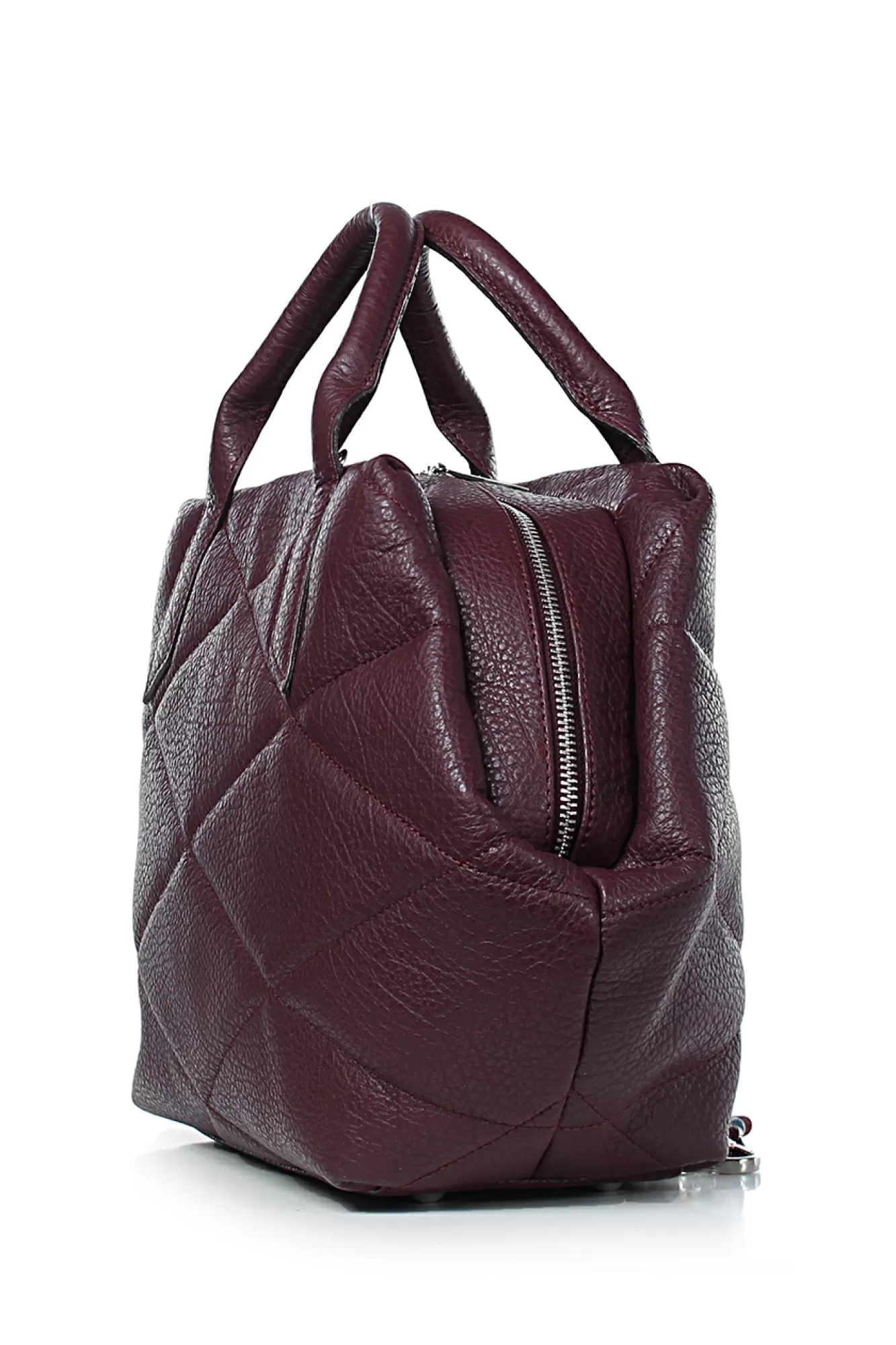 Сумка на одно отделение, закрывающееся на застежку-молнию, с двумя ручками длиной 310+-10 мм, со съемной нерегулирующейся ручкой-ремнем длиной 960+-10 мм, с декоративной растрочкой стенок, с пуклями на дне. Цвет фурнитуры - никель. Размеры: 420x220x130