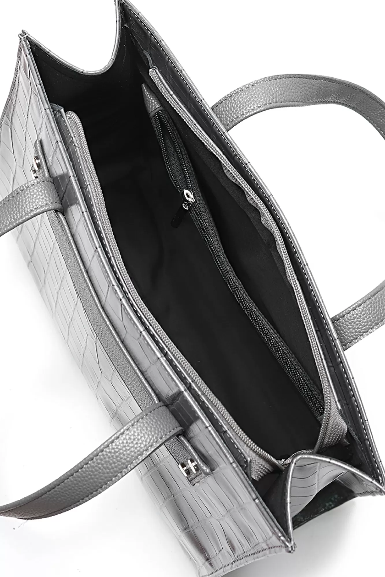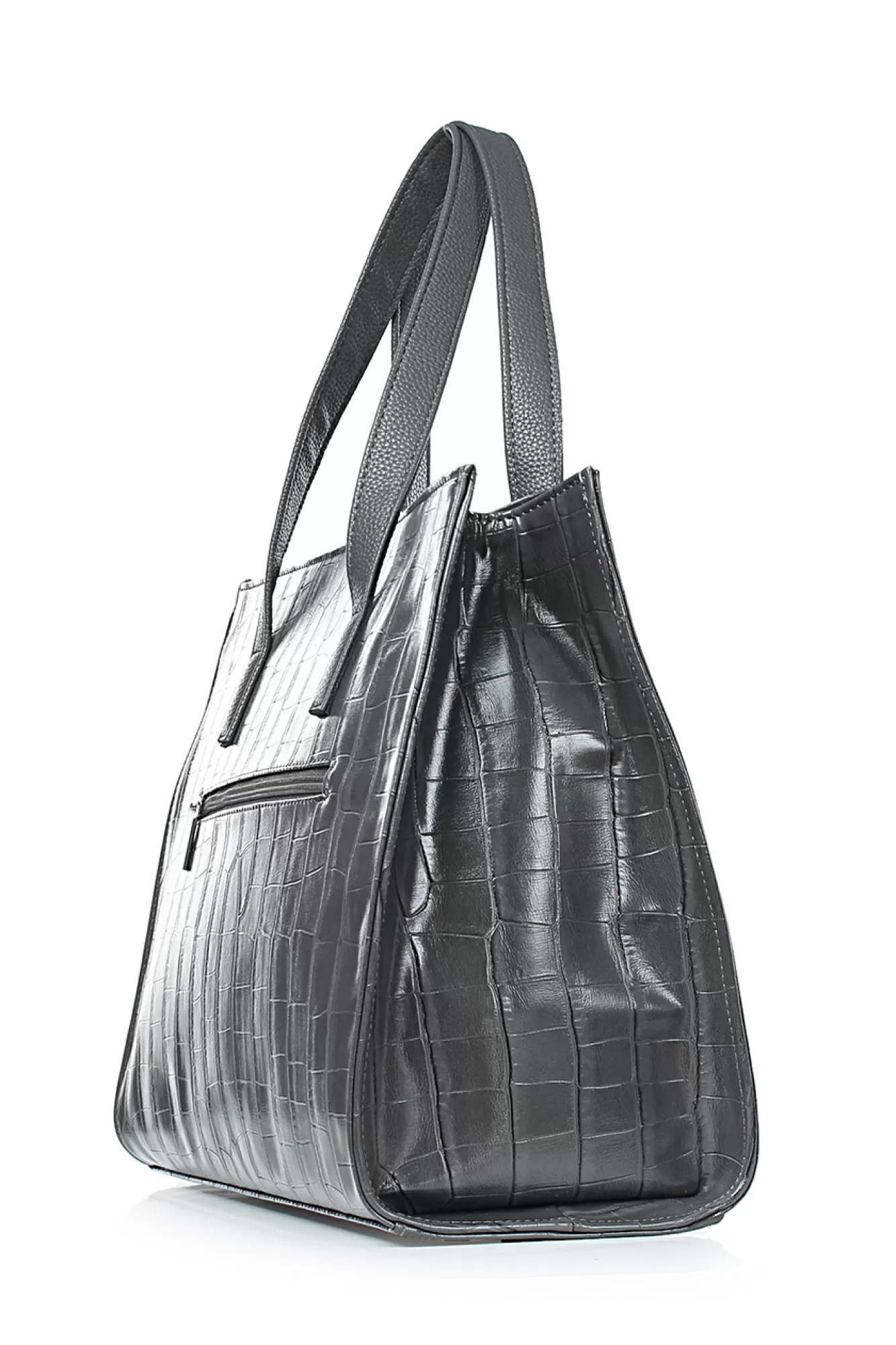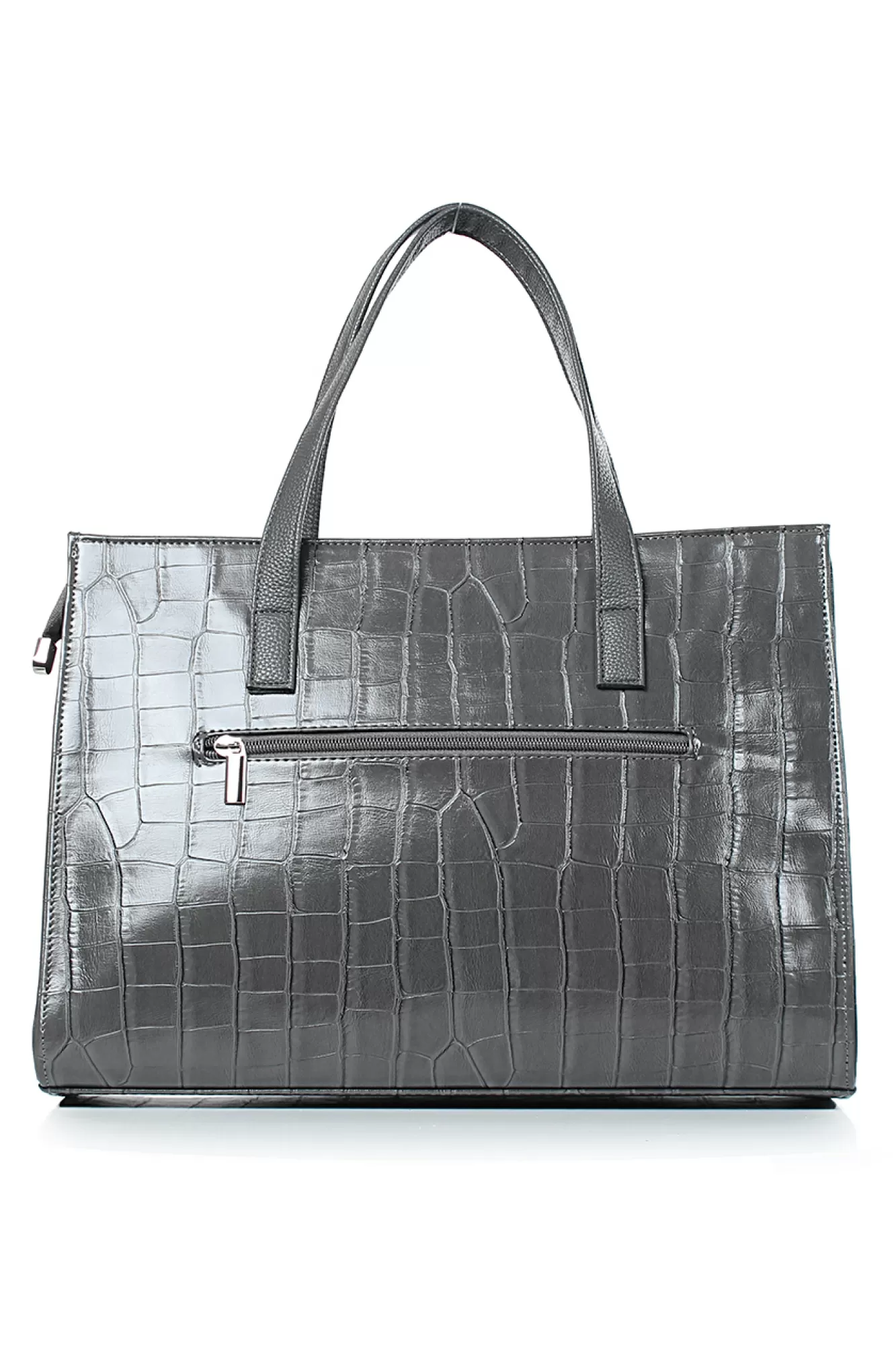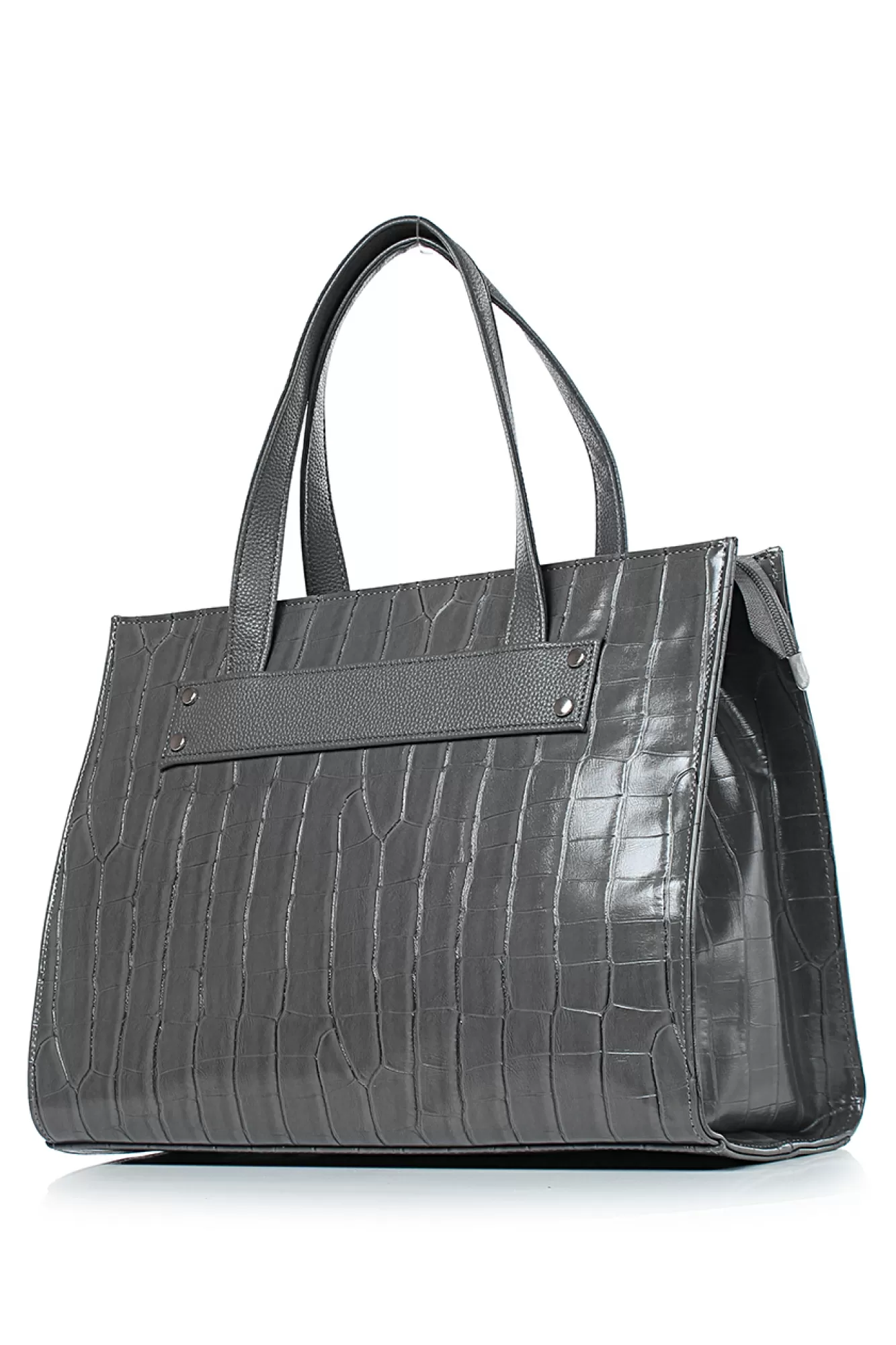 Сумка на одно отделение,закрывающееся на застежку-молнию,с двумя ручками длиной 475+-10мм,с накладкой с заклепками на передней стенке,на задней стенке карман, закрывающийся на застежку-молнию,цвет фурнитуры-никель. Размеры: 365x270x150