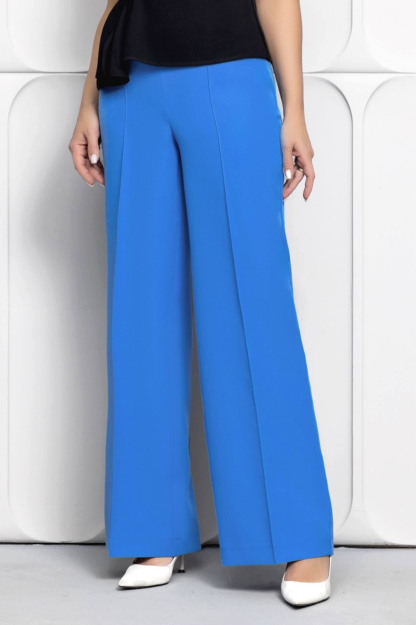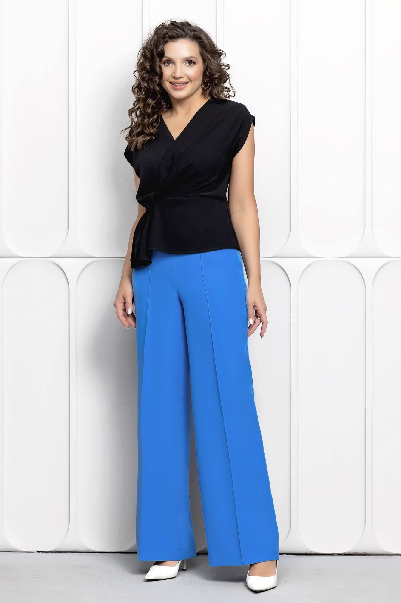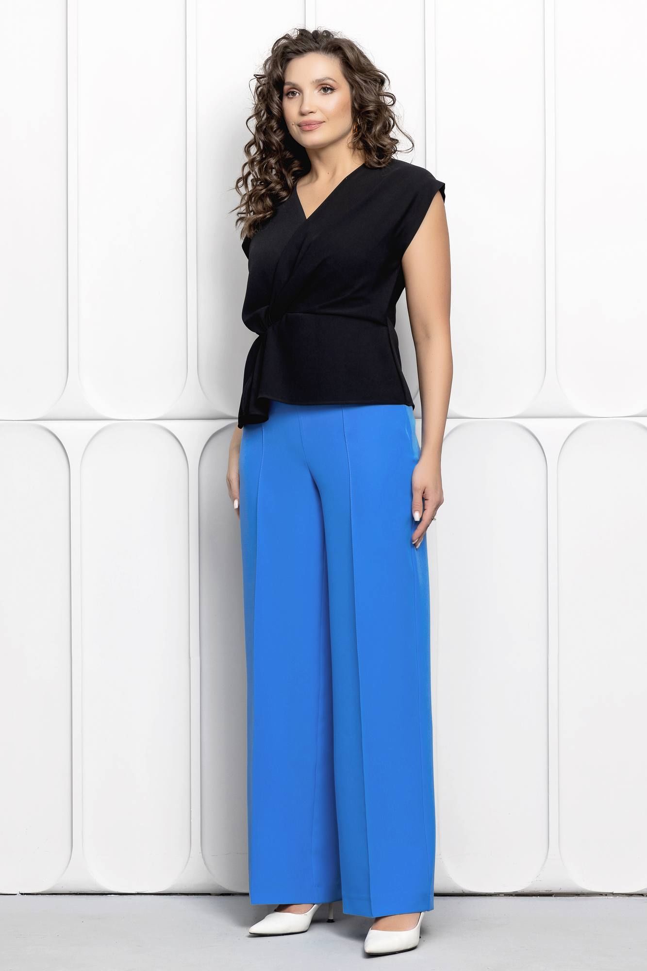 Брюки палаццо с застроченными стрелками из костюмного немнущегося материала от белорусского бренда ГолдСтайл отличный выбор, это одна из базовых вещей в гардеробе современной модницы. Они подойдут к любому стилю одежды и будут сочетаться с различными вещами и аксессуарами. Модные широкие молодежные палаццо - классика в современном мире моды. Брюки с высокой посадкой и стрелками подойдут практически всем типам фигуры, визуально удлинят ноги и сделают тебя немного стройнее. Главный плюс палаццо заключается в особенностях кроя. Высокая посадка акцентирует талию и визуально вытягивает силуэт. Брюки-палаццо не подчеркивают фигуру, а наоборот, скрывают недостатки. Прямой крой стройнит, не сковывает движения подойдет для женщин и девушек плюс сайз. Отличающийся своей универсальностью они станут прекрасным дополнением к вашему гардеробу, или базой для создания капсульного гардероба. Данная модель поможет вам создать любой образ: классический, офисный, праздничный, нарядный. Отличительной особенностью данной модели является застежка на потайную молнию в боковом шве, очень удобно и практично. Белорусский бренд ГолдСтайл - гарантия отличного качества. Мы с трепетом и любовью относимся к созданию наших моделей для того чтобы они радовали Вас каждый день.