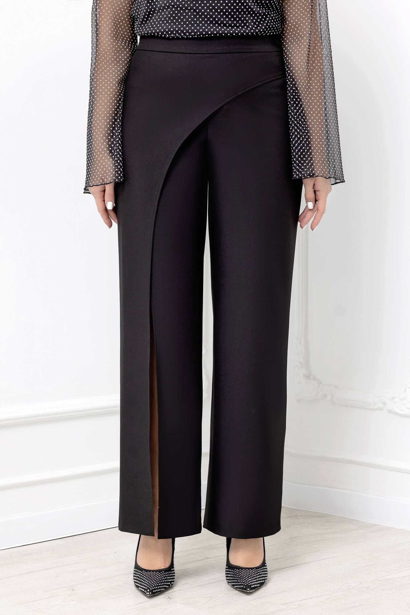 Абсолютный тренд этого сезона – шикарные прямые брюки с запахом от белорусского бренда ГолдСтайл. Брюки классические с запахом представляют собой идеальный выбор для женщин, ищущих комфорт и стиль в больших размерах. Созданные для вечерних мероприятий и празднований, таких как Новый год, эти брюки выделяются своей элегантностью и удобством. Они сделаны из высококачественного материала, состоящего из 77% полиэстера, 19% вискозы и 4% эластана, что обеспечивает гладкую фактуру и отличную поддержку формы.Брюки имеют классическую модель с молнией на запахе для удобства надевания и снимания. Декоративный разрез добавляет им изысканности и модности, делая их подходящими для любых торжественных событий. Благодаря средней типовой посадке и ростовке для высоких, эти брюки идеально сидят на различных фигурах, подчеркивая их лучшие стороны. Выбирая брюки классические на запах от ГолдСтайл, вы получаете не только стильное и практичное решение для вашего гардероба, но и возможность чувствовать себя уверенно и комфортно на любом мероприятии. Белорусский бренд ГолдСтайл - гарантия отличного качества. Мы с трепетом и любовью относимся к созданию наших моделей для того чтобы они радовали Вас каждый день