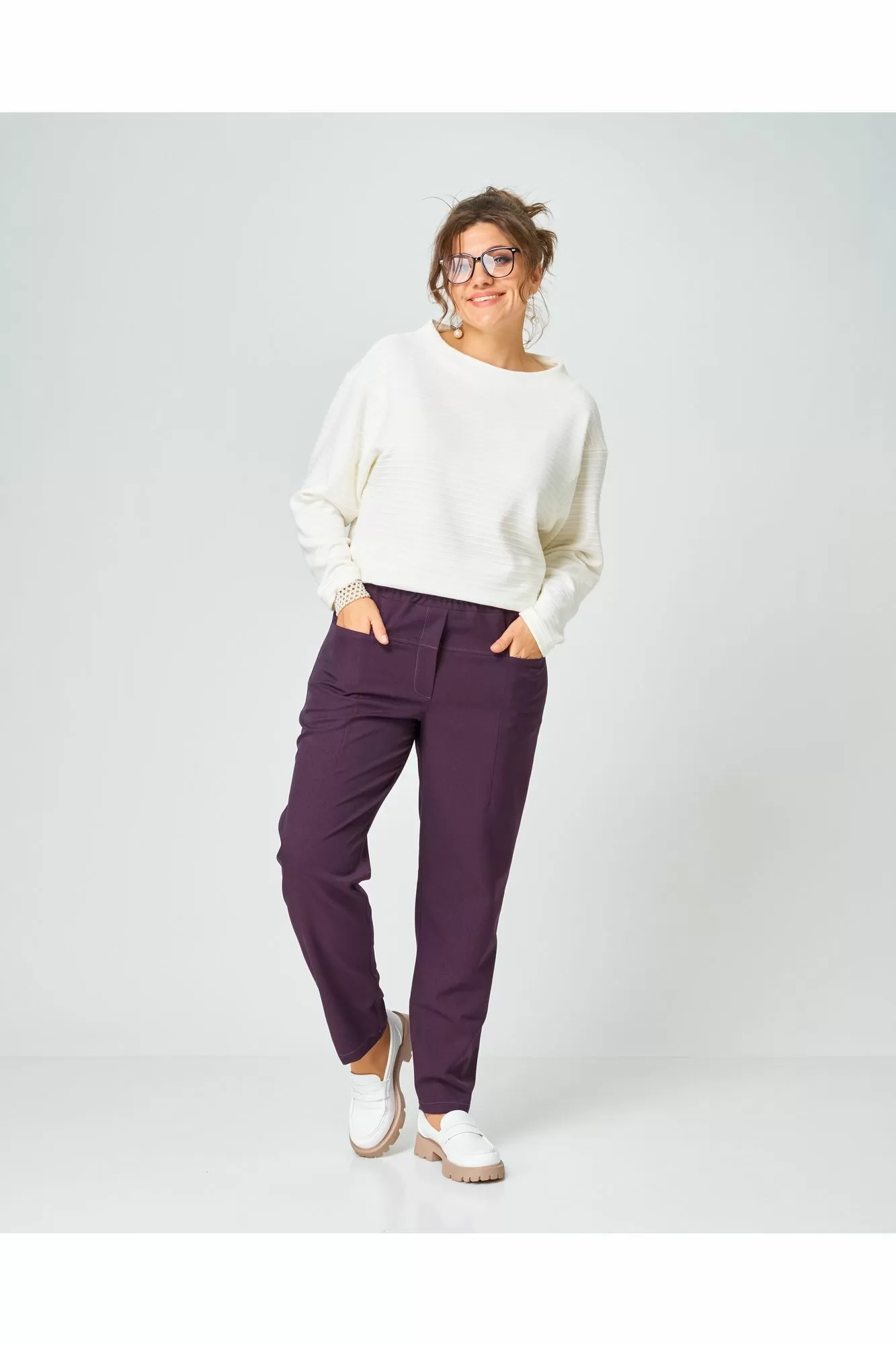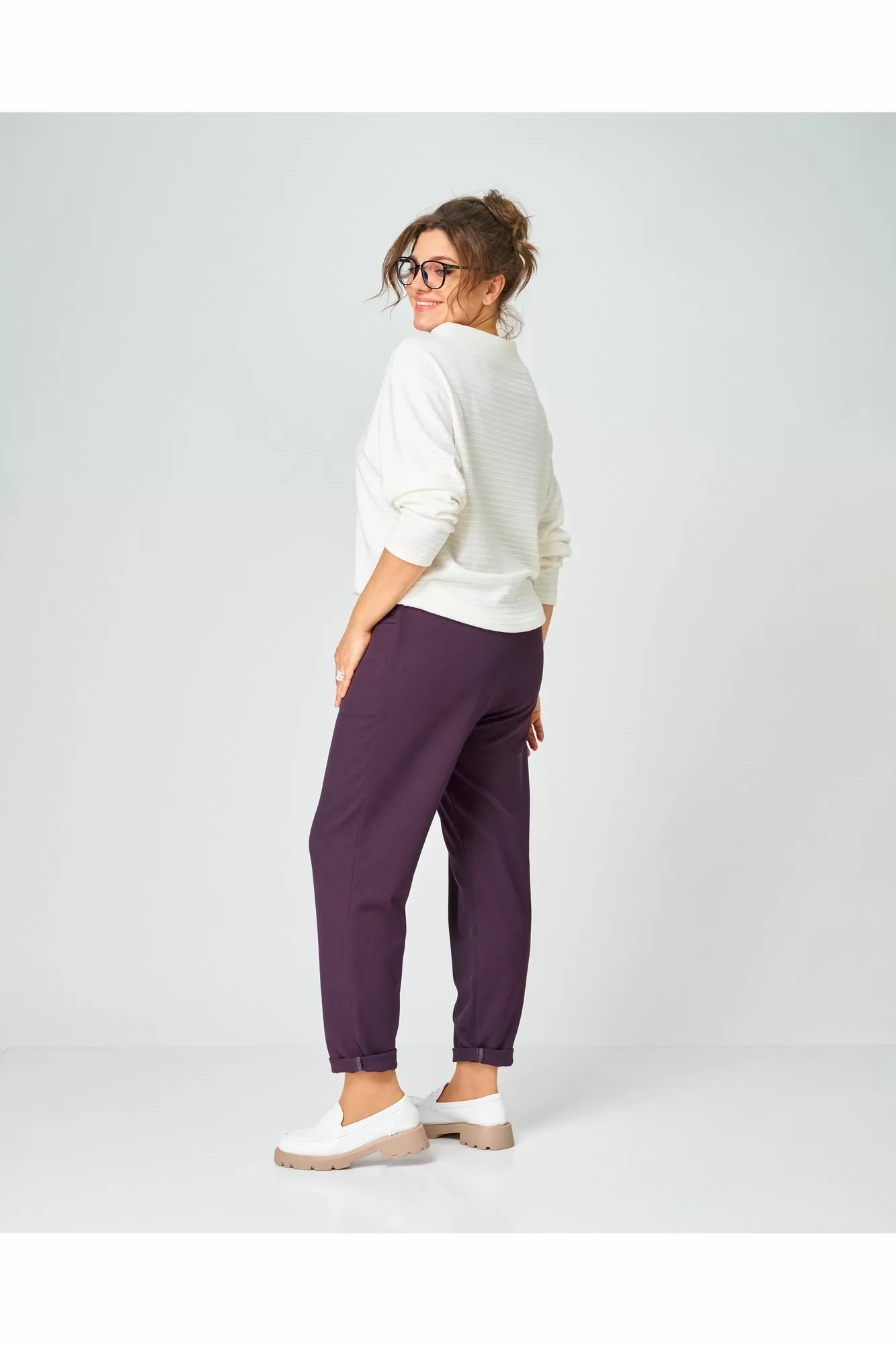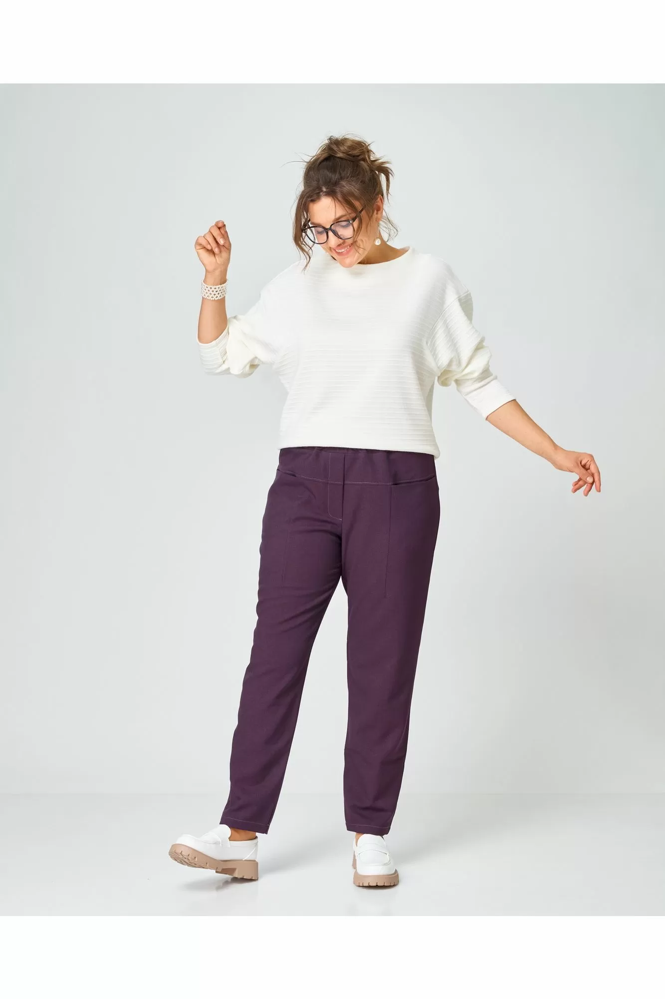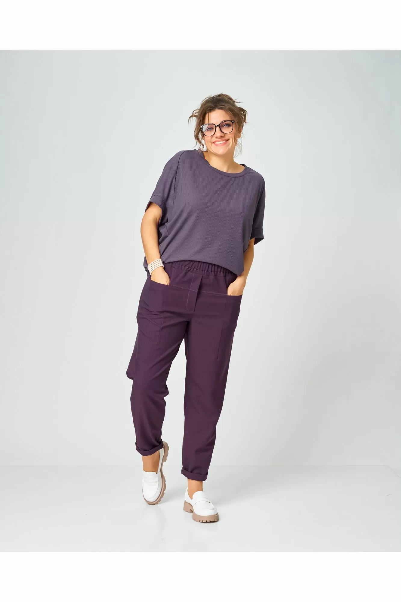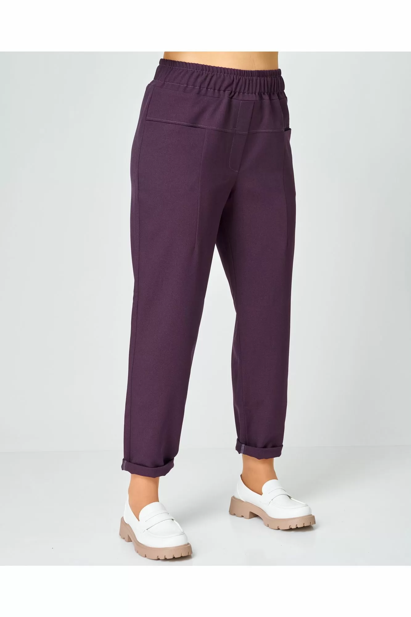 Эти стильные женские брюки выполнены в глубоким благородном оттенке тёмной сливы — цвете, который придаёт образу элегантность и легко сочетается как с базовыми, так и с яркими вещами гардероба.