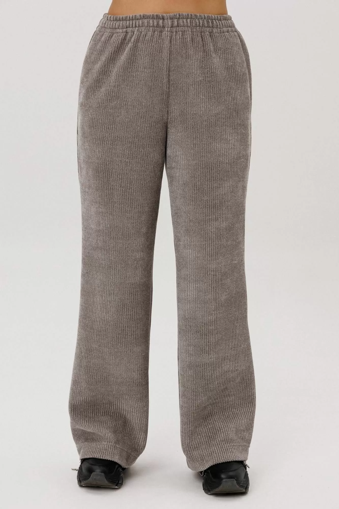 Брюки -палаццо. По талии на резинке, без застежки. В боковых швах карманы.