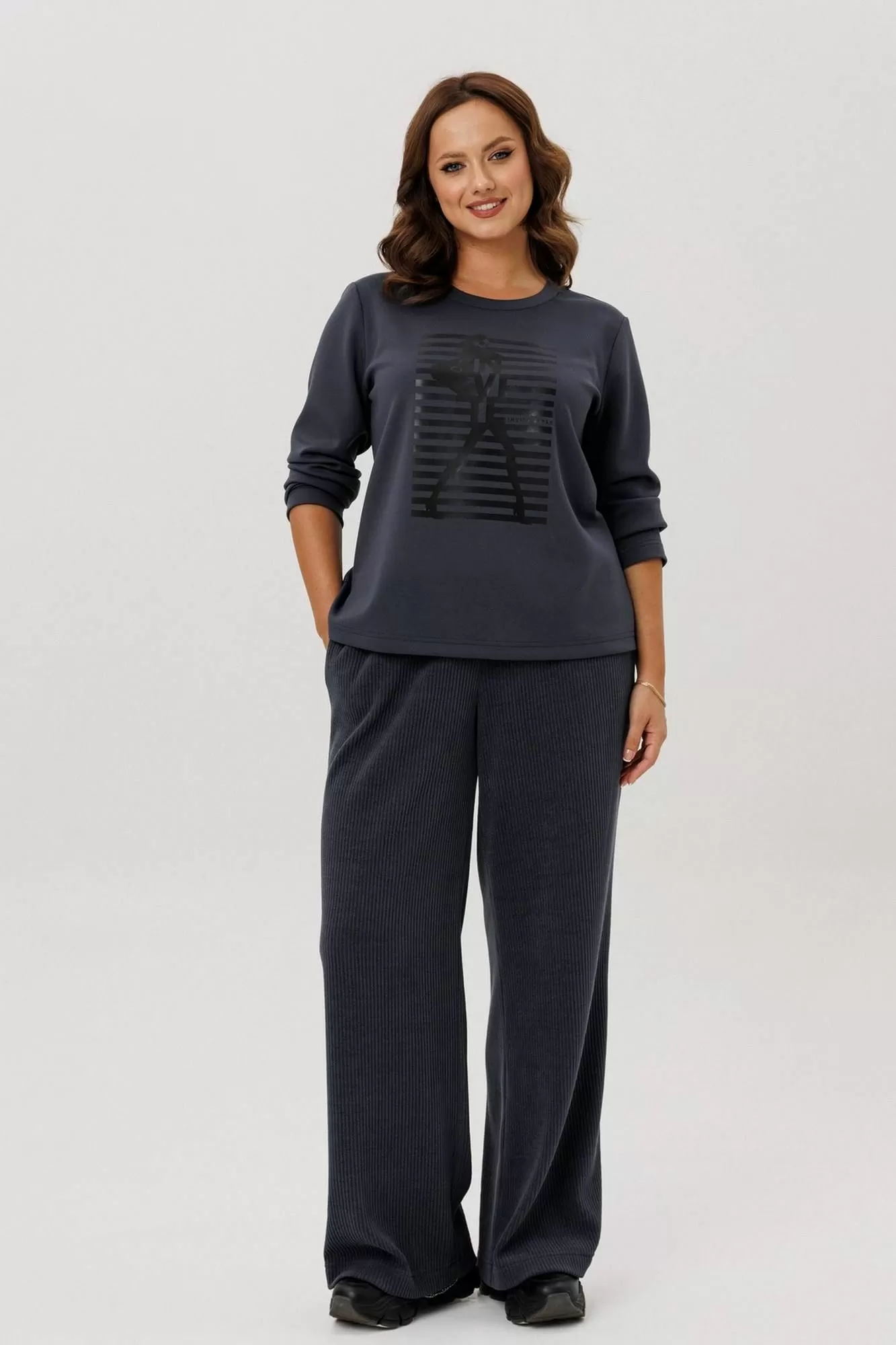 Джемпер с округлым вырезом горловины, рукав втачной, длинный. Изделие без застежки. Декором является принт по переду.