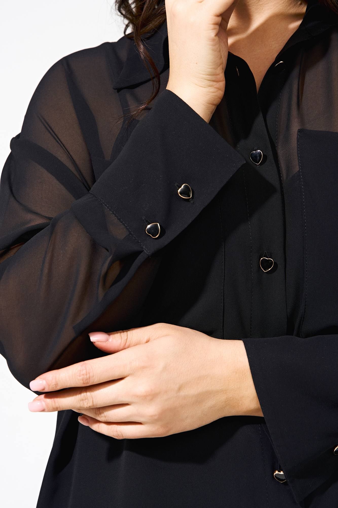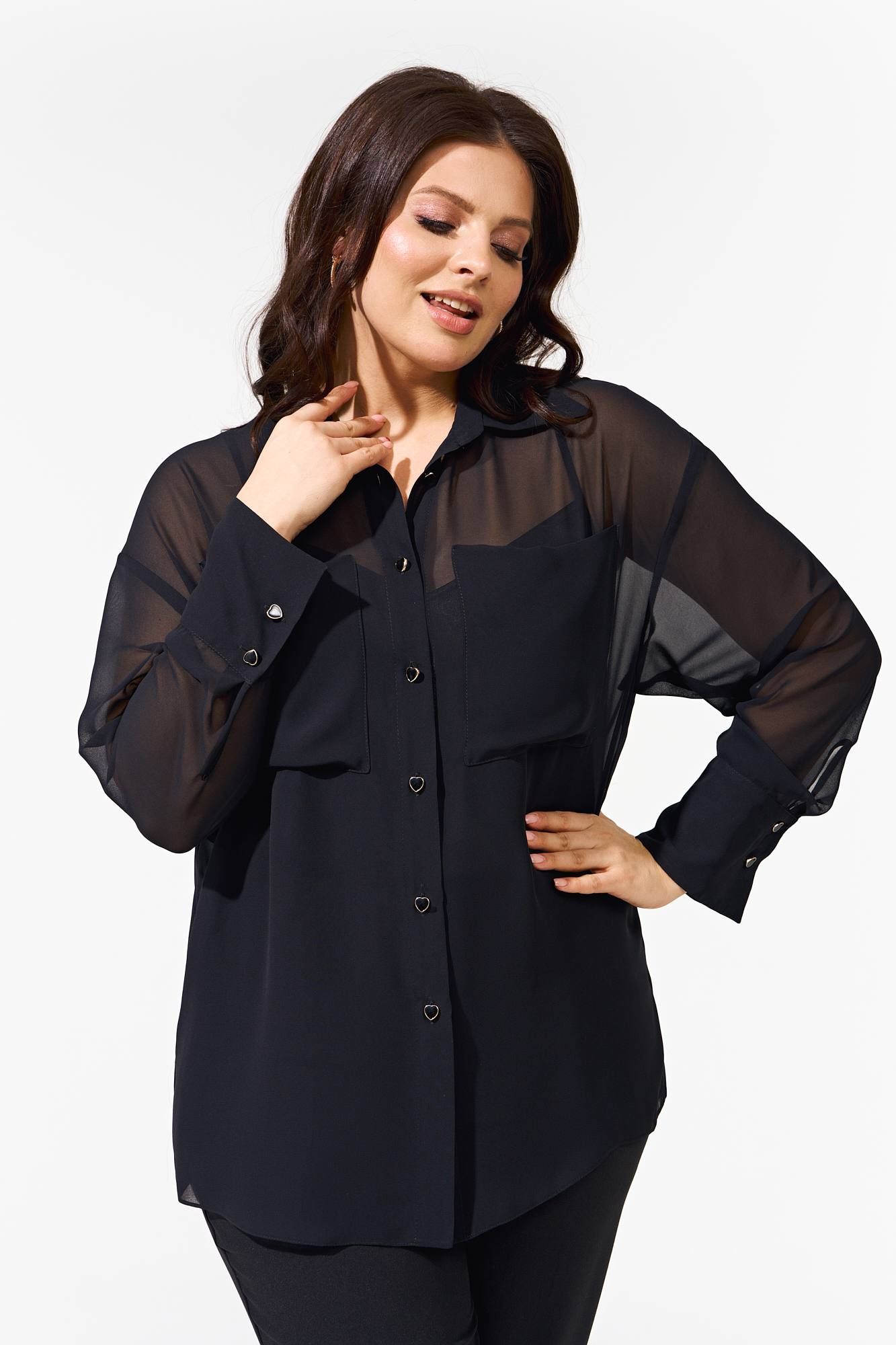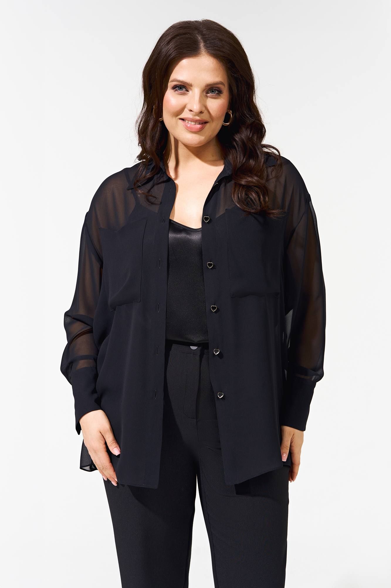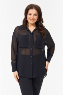 Рубашка-накидка женская свободного силуэта выполнена из легкого просвечивающегося шифона. Рукава со спущенной линией плеча на манжетах, по переду накладные карманы, застежка на петли и пуговицы. Рубашка соответствует заявленному размеру. Пользуйтесь, пожалуйста, таблицей измерений готового изделия. Уход за изделиями из шифона: - стирать вещи рекомендуется только вручную в теплой воде; - не рекомендуется использовать отжим, расправить на горизонтальной поверхности; - хранить на плечиках.