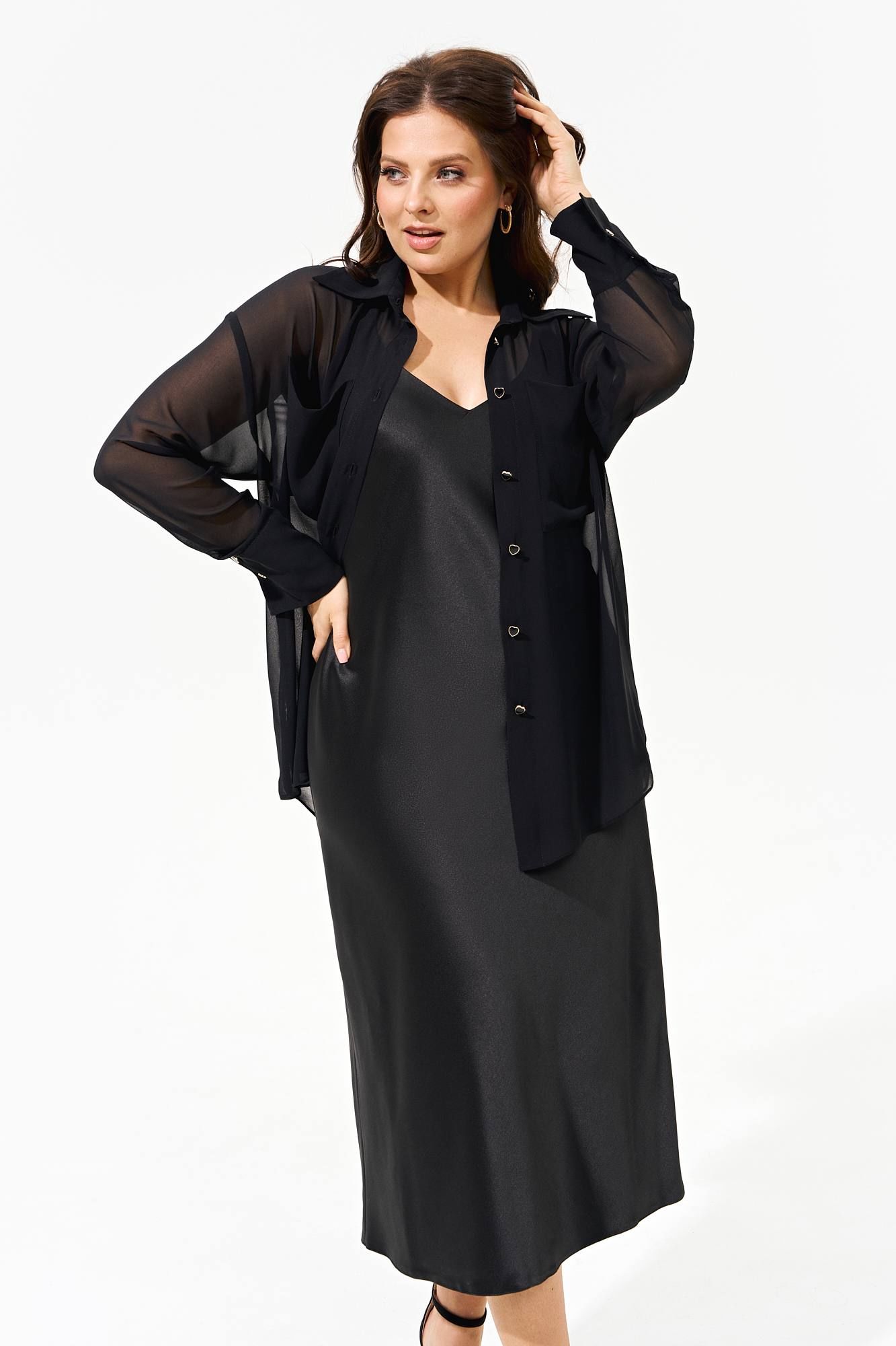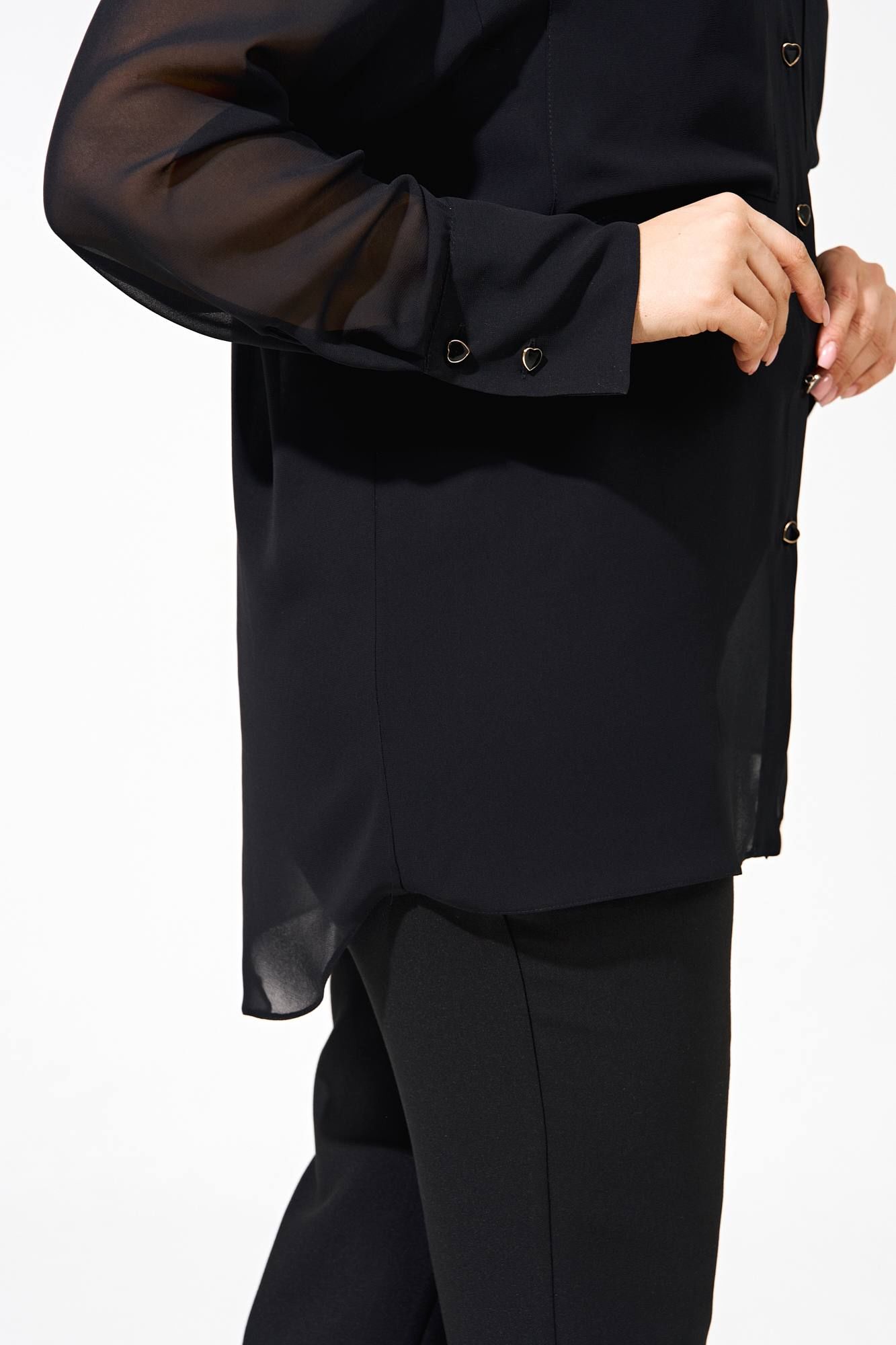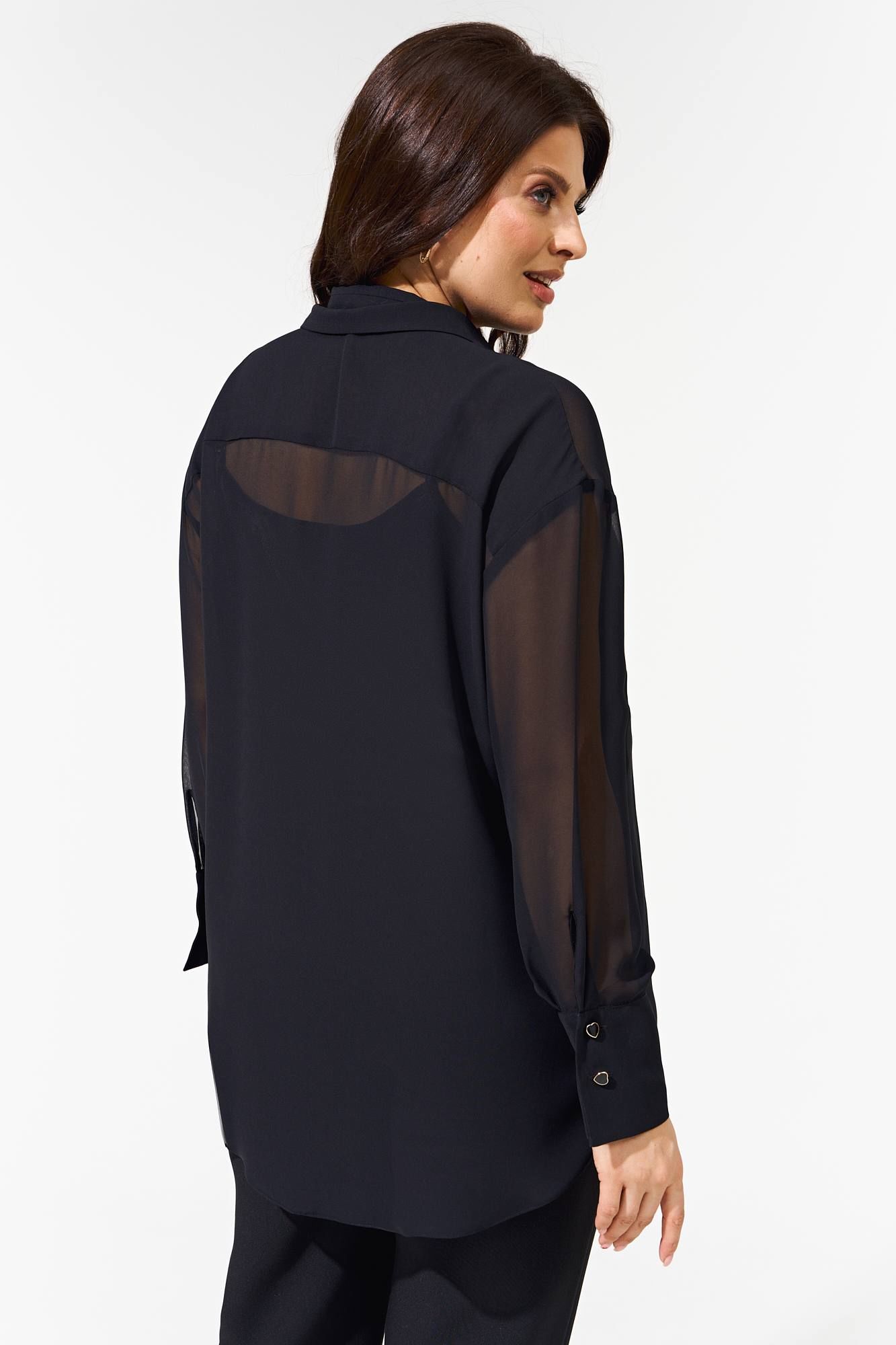 Рубашка-накидка женская свободного силуэта выполнена из легкого просвечивающегося шифона. Рукава со спущенной линией плеча на манжетах, по переду накладные карманы, застежка на петли и пуговицы. Рубашка соответствует заявленному размеру. Пользуйтесь, пожалуйста, таблицей измерений готового изделия. Уход за изделиями из шифона: - стирать вещи рекомендуется только вручную в теплой воде; - не рекомендуется использовать отжим, расправить на горизонтальной поверхности; - хранить на плечиках.