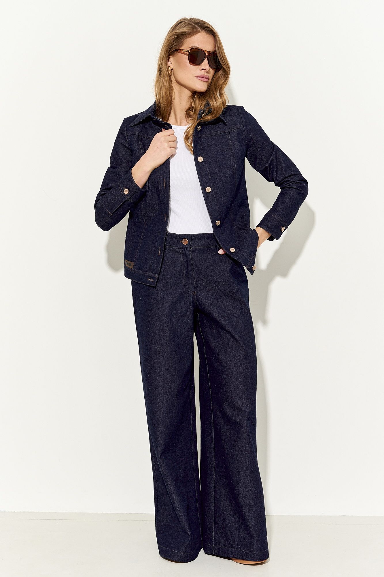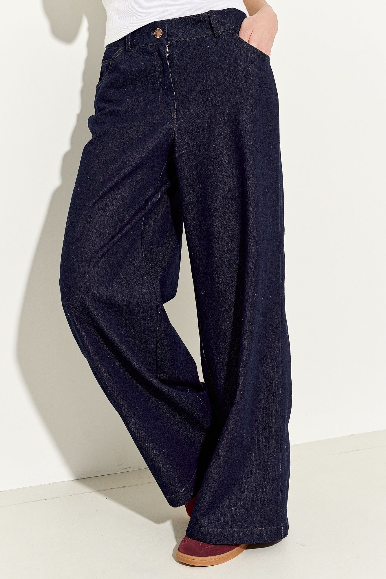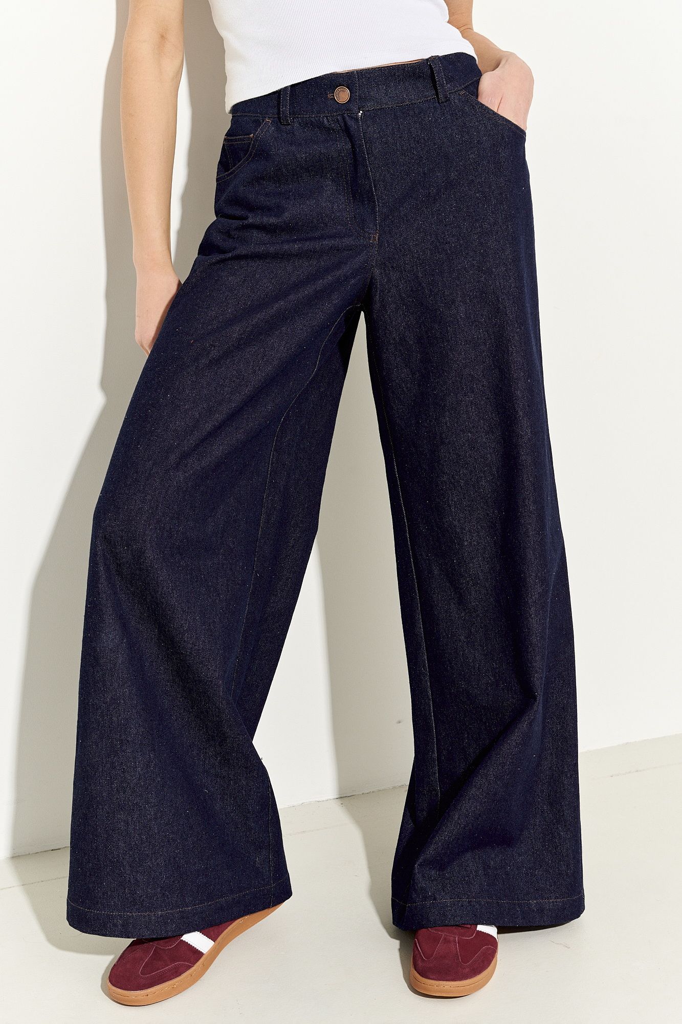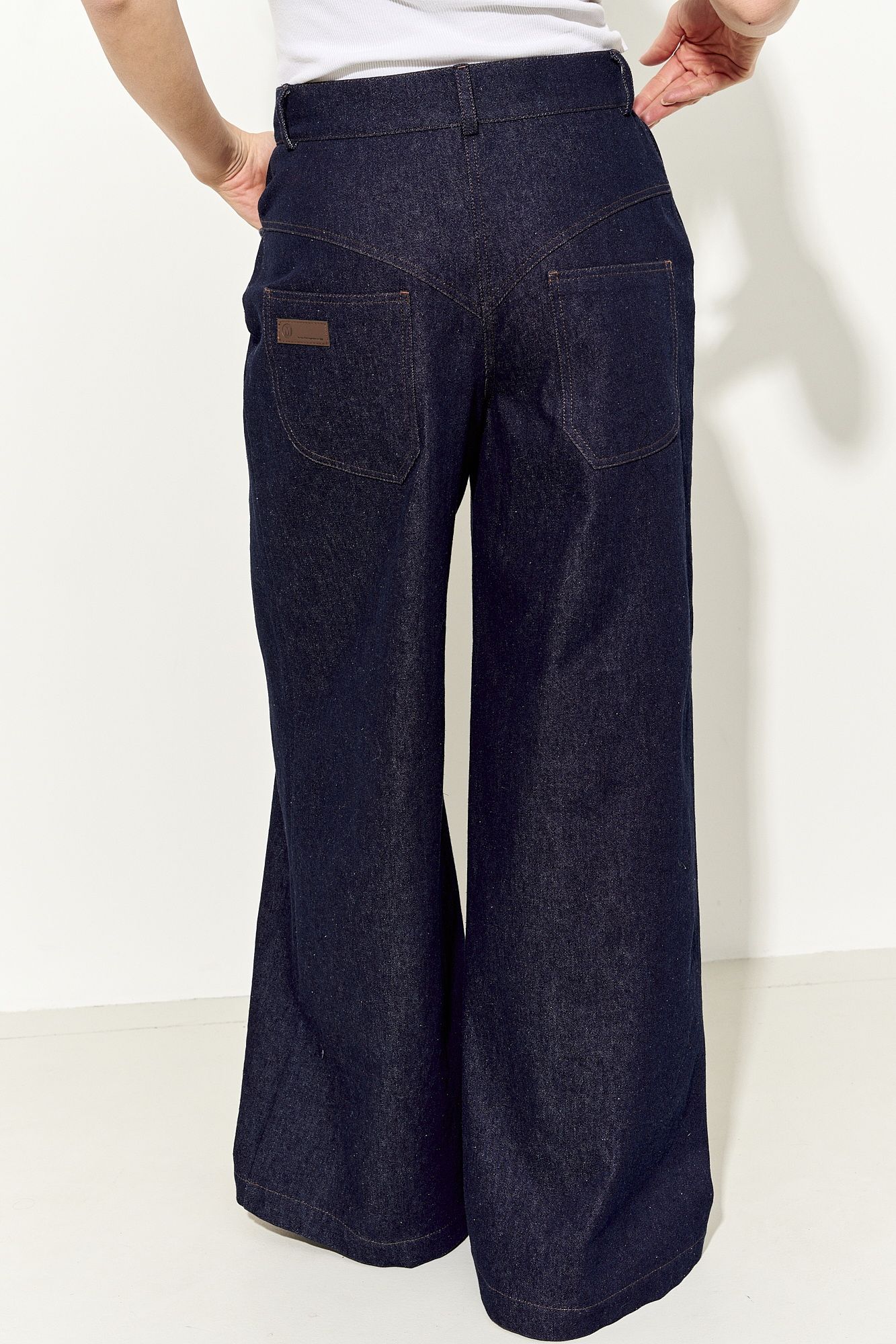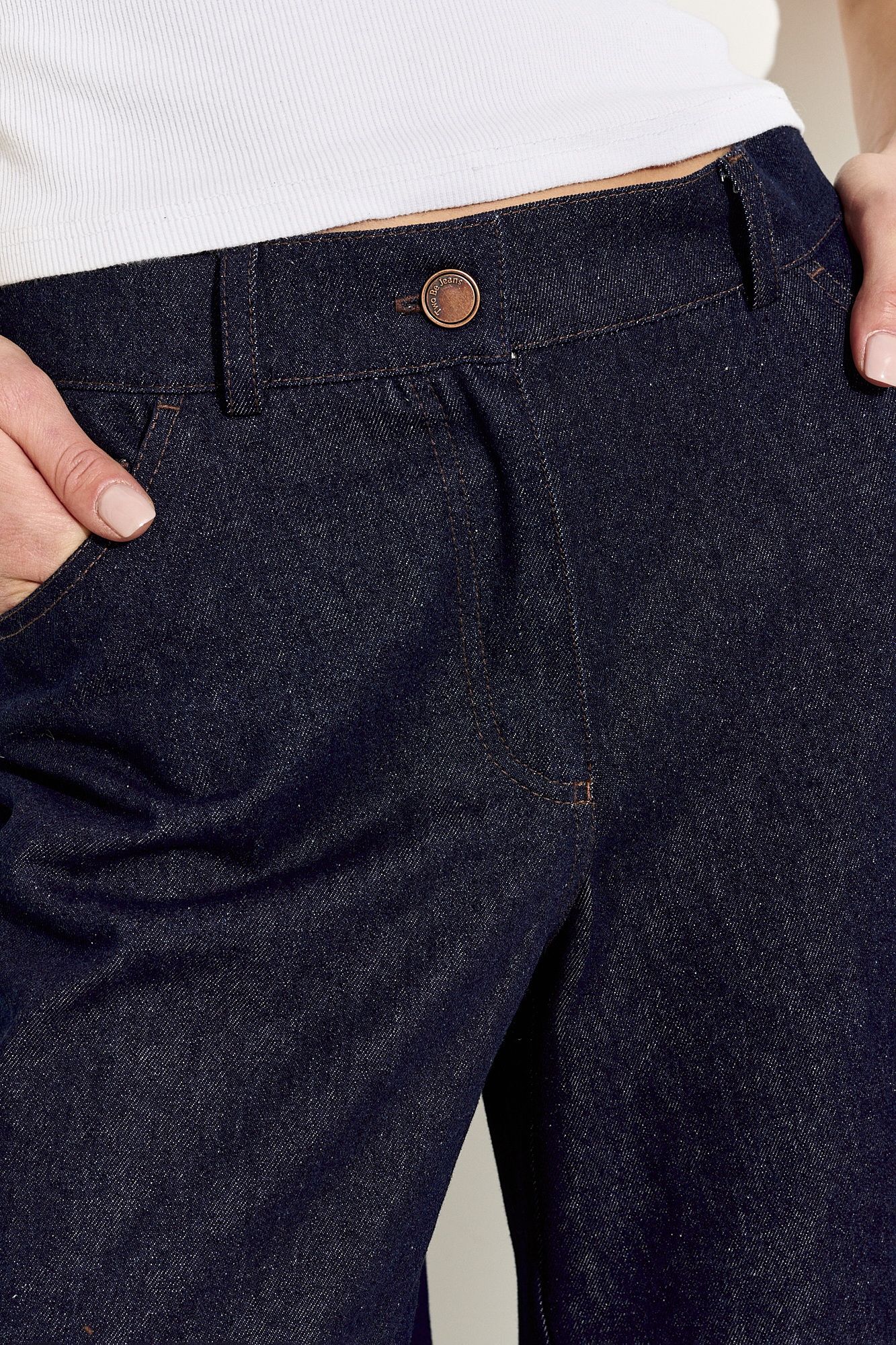Стильные женские джинсы выполнены из натуральной хлопковой ткани классического глубокого синего цвета, прилегающие в области талии и бедер, расширенные к низу; по переду и спинке функциональные карманы; застежка на молнию, петлю и пуговицу. Джинсы полностью соответствует заявленному размеру. Пожалуйста, пользуйтесь таблицей замеров готового изделия, чтобы подобрать идеальный размер. Уход за джинсами: - при стирке в стиральной машине выбрать бережный либо деликатный режим; -температура воды не выше 30 градусов.
