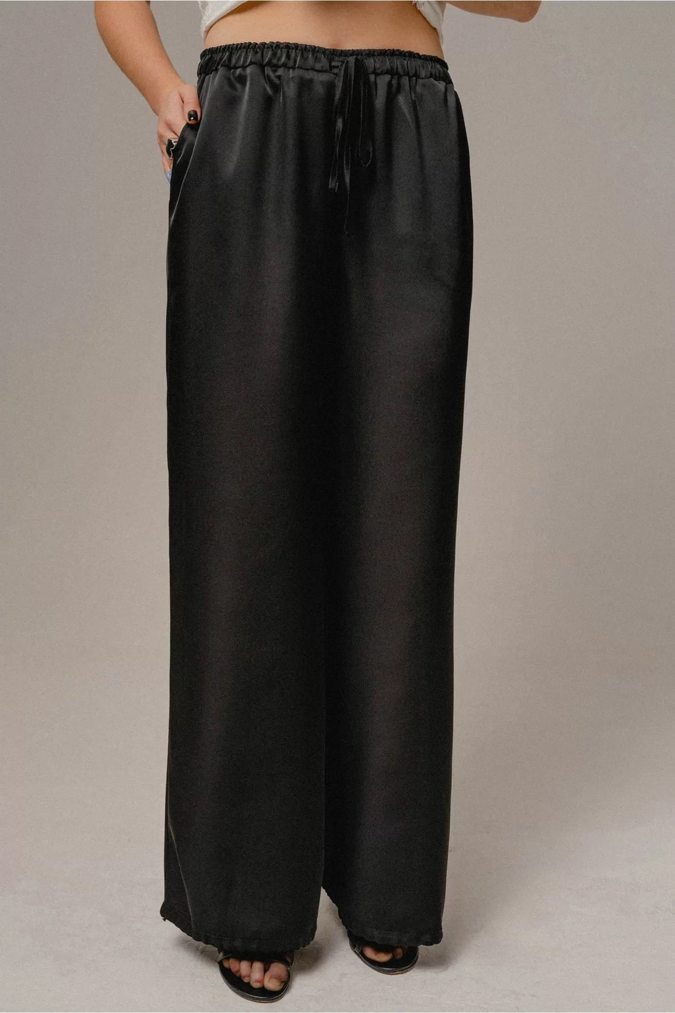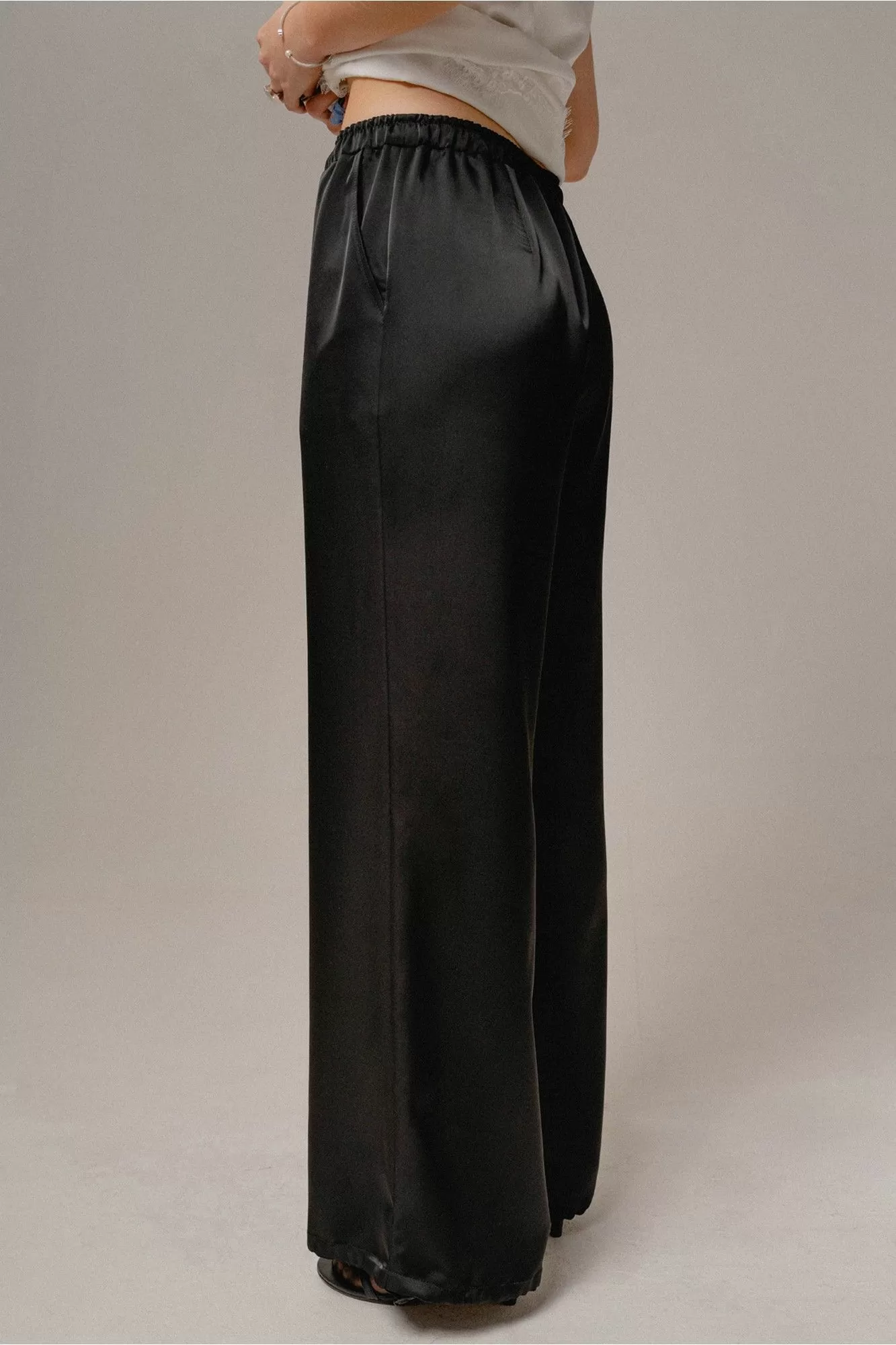 Брюки молодежные прямого силуэта из дабл шелка однотон, на притачном поясе с эластичной тесьмой,шнурок, и наклонными карманами спереди, и иммитацией гульфика.