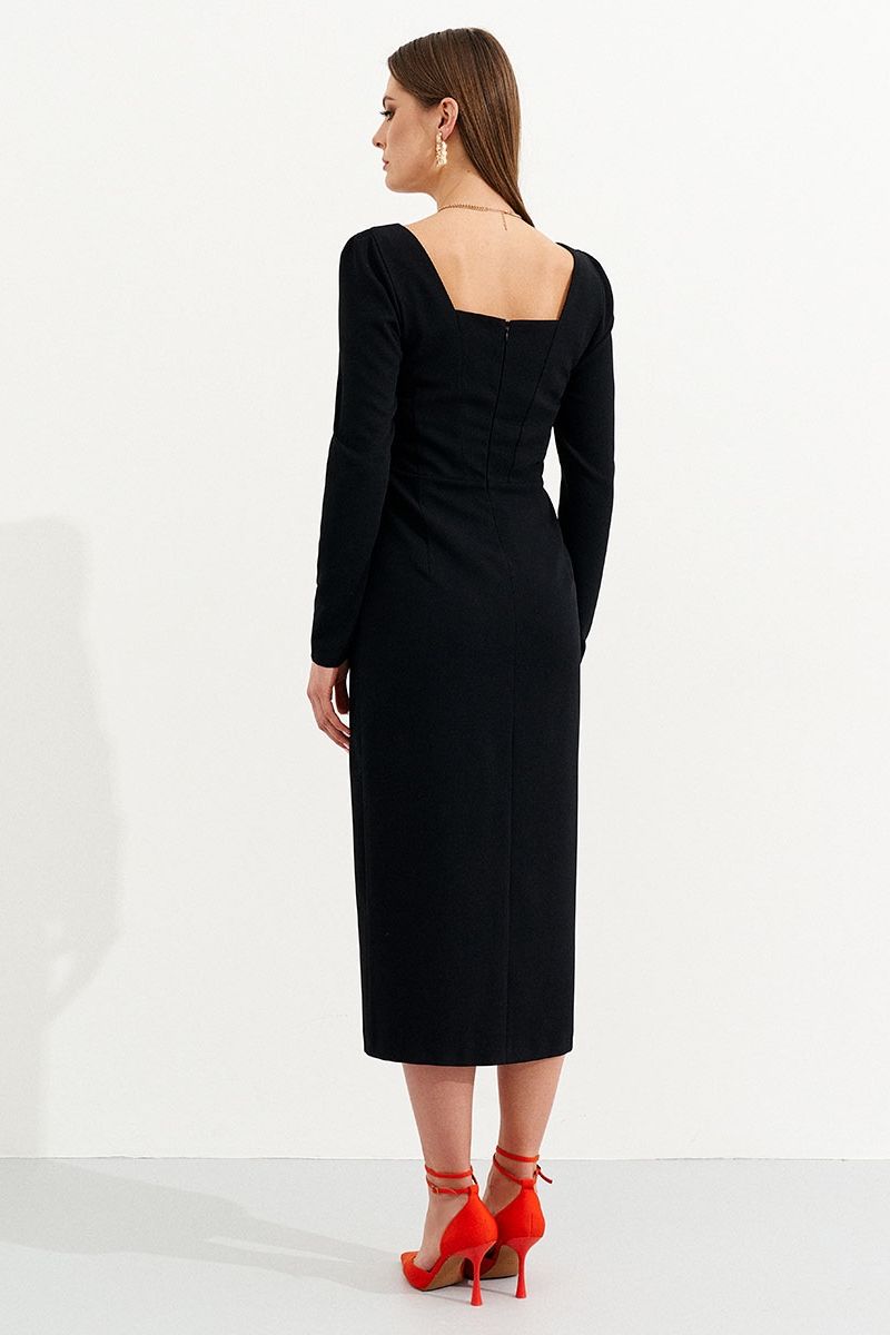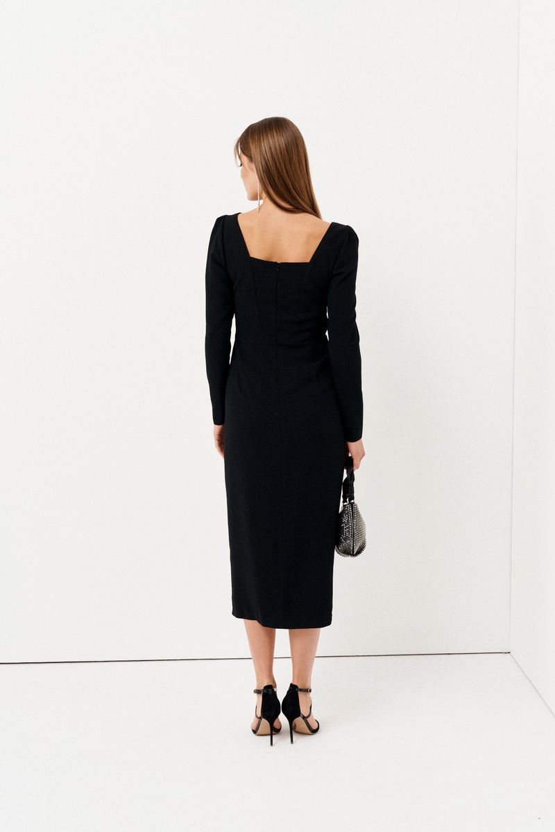 Элегантное платье бренда Ketty из вискозной костюмной ткани - это необходимая вещь в гардеробе каждой девушки. Обтягивающий приталенный крой по фигуре красиво повторяет контуры женского силуэта. Строгое закрытое платье дополнено V- образным вырезом и разрезом на ноге. Сзади застежка на молнии. Прямое платье-футляр в обтяжку универсальная модель, которая поможет создать модный образ для любого случая, как на выход, так и для повседневной носки. Наденьте облегающее коктейльное платье миди до колена под пиджак или жакет, чтобы создать деловой офисный наряд для работы или офиса. А в сочетании с украшениями и классическими туфлями на высокой шпильке создайте стильный элегантный наряд для вечернего праздничного выхода. В платье вы будете чувствовать себя уверенно и комфортно!
