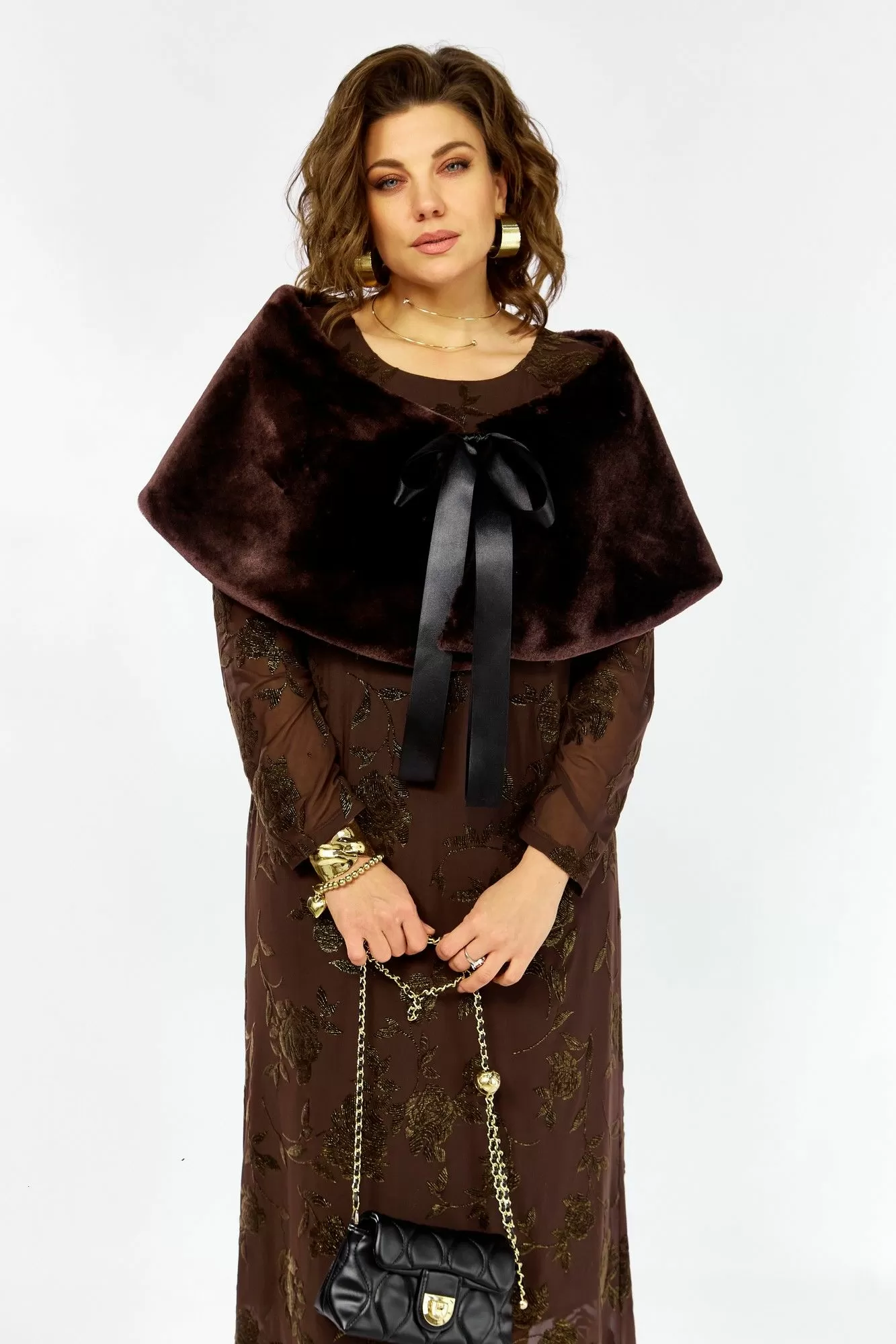 Меховая горжетка в глубоких тёмных тонах её бархатистая текстура контрастирует с лёгкостью платья ,этот комплект идеально подойдёт для вечерних мероприятий торжеств и особых случаев.