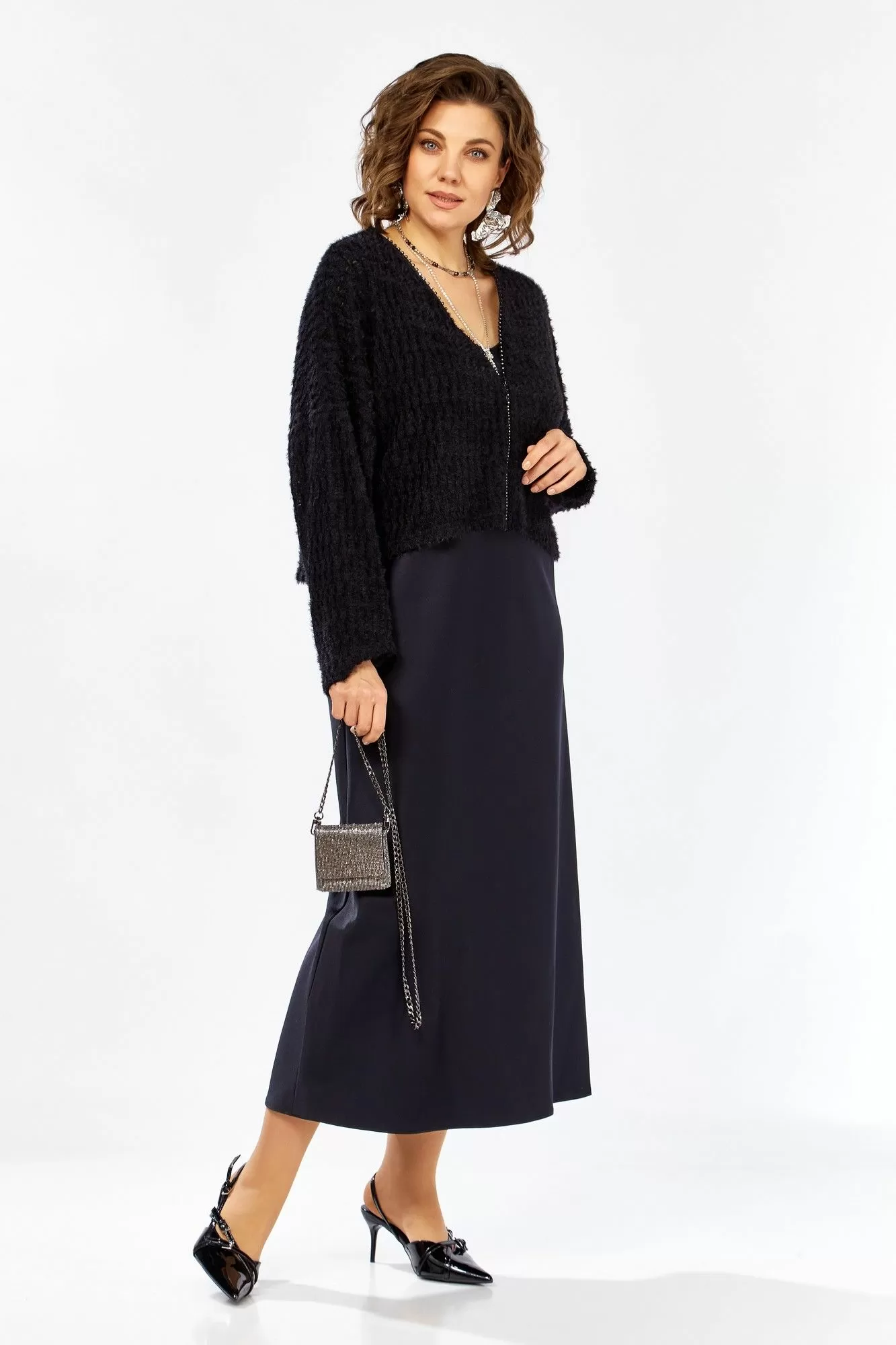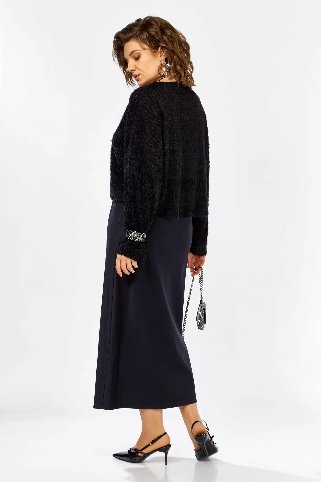 Лаконичный крой делает платье универсальным для любого случая в комплекте объемный джемпер из пушистой трикотажной травки, создает мягкий контраст фактур добавляет образу тепла и делает его более современным и расслабленным