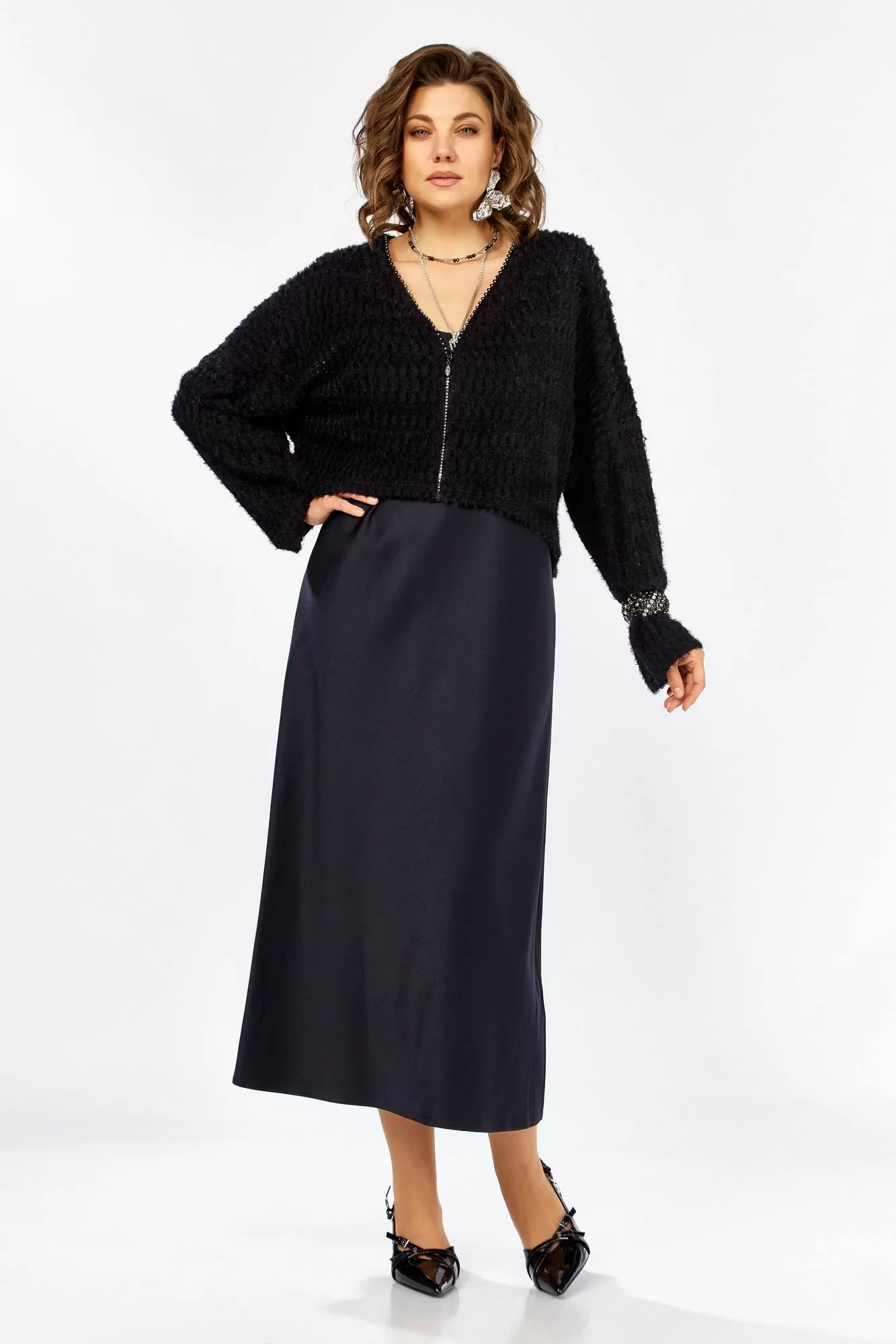Праздничный комплект сочетающий в себе элегантность и уют основой комплекта является платье на Тонких бретелях образного силуэта из плотного атласа материал хорошо держит форму и подчёркивает силуэт благородным матовым блеском.
