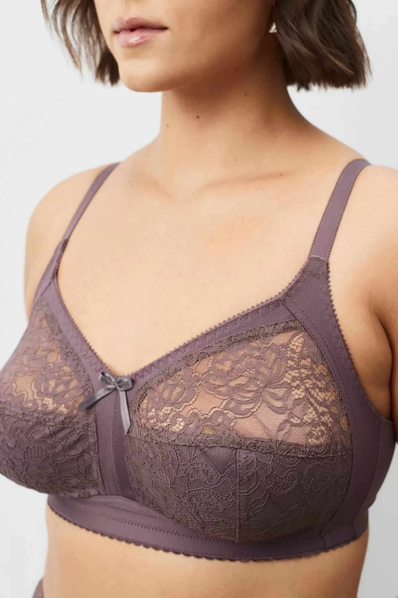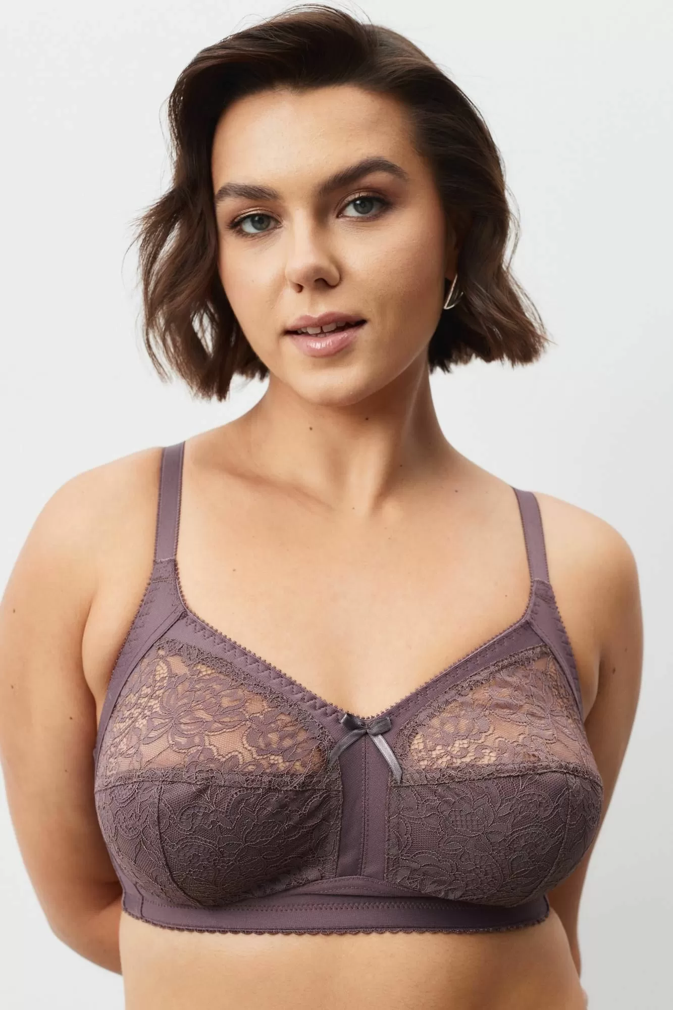 Бюстгальтер бескаркасный, декорированный кружевом по всей чашке, внутри чашки - вставка из хлопка, которая приятна к телу и не вызовет раздражения. Боковая деталь, широкие бретели и бочки обеспечивают отличную поддержку, а также равномерно распределяют вес груди, что крайне важно, особенно при очень больших размерах. Модель идеально подойдет для повседневной носки.