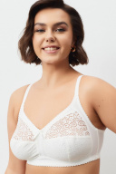 Бюстгальтер бескаркасный, декорированный кружевом по всей чашке, внутри чашки - вставка из хлопка, которая приятна к телу и не вызовет раздражения. Боковая деталь, широкие бретели и бочки обеспечивают отличную поддержку, а также равномерно распределяют вес груди, что крайне важно, особенно при очень больших размерах. Модель идеально подойдёт для повседневной носки.