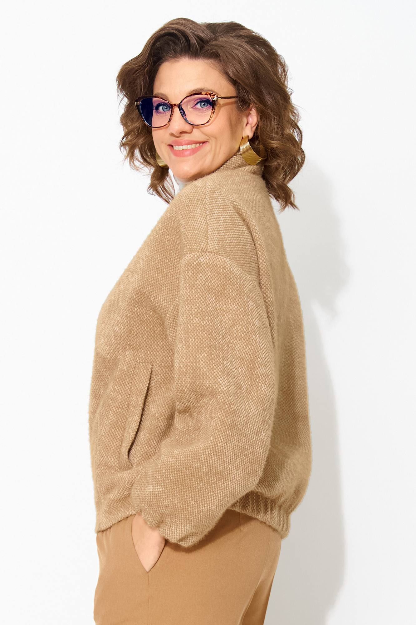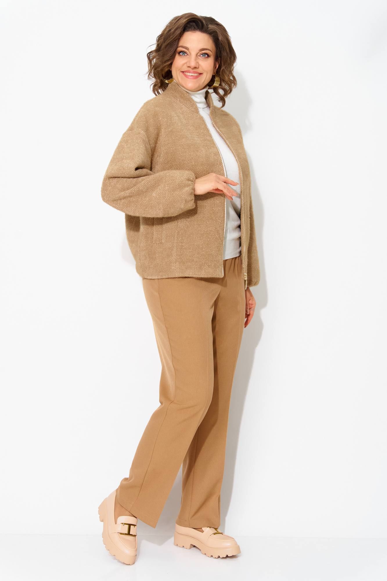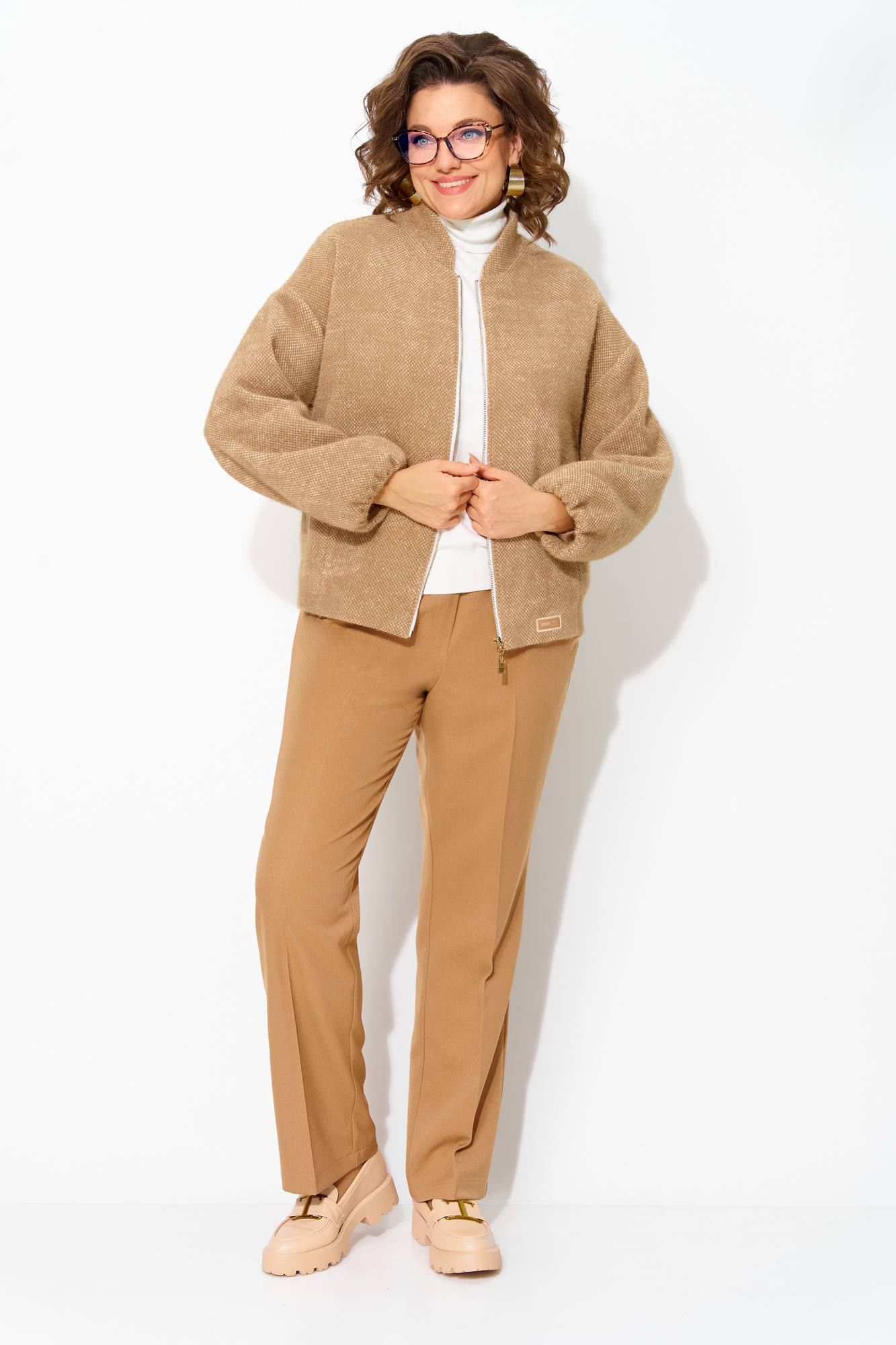 Утепленный буклированный жакет, по типу бомбера – стильная женская одежда на каждый день, которая станет отличным дополнением повседневного гардероба. Модель свободного силуэта, со спущенной линией плеча. Застежка центральная на молнию. Низ рукава присборен на резинку. По спинке также предусмотрена резинка для комфортного прилегания. Жакет поставлен на подкладку, имеются прорезные карманы! Свободная оверсайз модель подходит практически под любую фигуру. Классические женские брюки, со средней посадкой, прямого покроя от бедра. Застежка – брючная тесьма-молния с обработанным гульфиком. Карманы боковые. Пояс притачной, в боковых участках вставлена резинка на свободу. По переду заутюжены канты. Спинка с Талиевыми выточками. Подгибка брюк –– 4 см. Длина брюк – 104 см. Длина по спинке – 68-65 ми, рукав – 62 см.