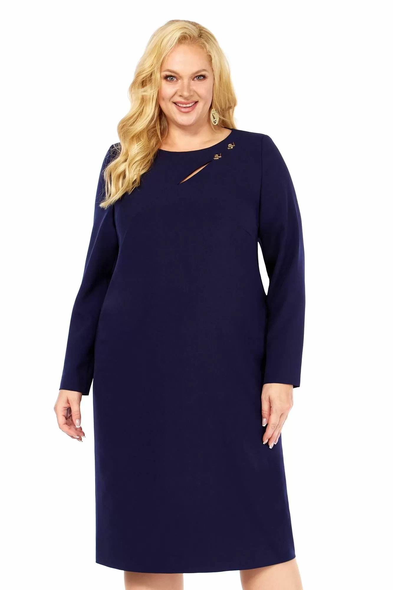 Повседневное текстильное платье полуприлегающего силуэта на рост 164 см. Рукав втачной длинный. Перед платья с косым подрезом и нагрудной вытачкой с другой стороны. В подрезе обработана щель, которая дополнена декоративным украшением. По спинке средний шов с затежкой-молнией и шлицей.