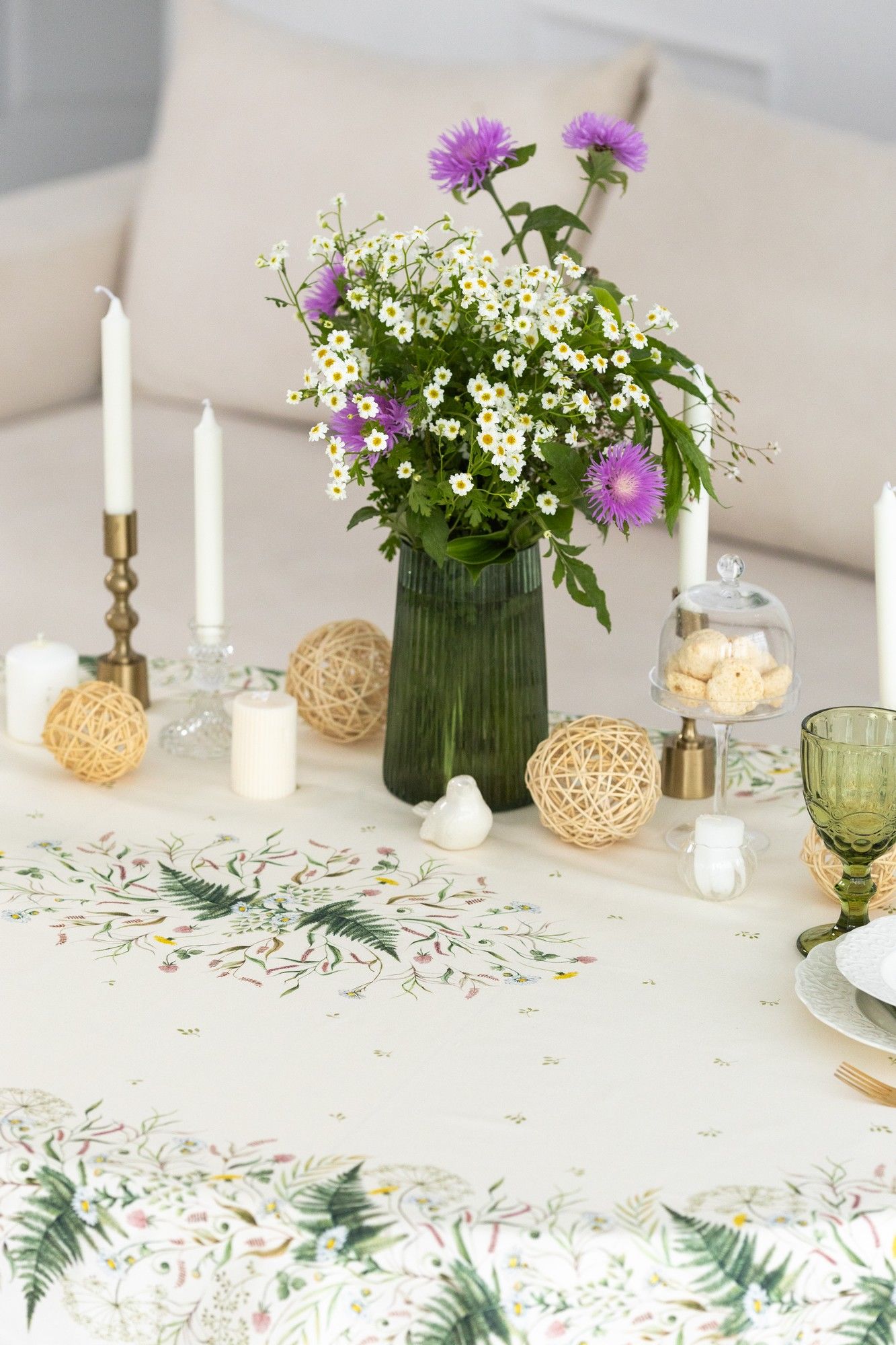Скатерть 150х200см подходит для овального стола шириной 70…80…90…100см и длиной 130…140…150см. СВОЙСТВА ТКАНИ (состав, плотность, пропитка): Состав ткани 100% хлопок. Все скатерти и дорожки коллекции «КУПАЛИНКА» выполнены из ткани для столового белья плотностью 190г/кв.м и имеют специальную пропитку (влаго-, масло- и грязеотталкивающую обработку). Принт на ткани нанесен методом цифровой печати с использованием высококачественных красителей, благодаря чему изделия не линяют и не меняют свой цвет после многократных стирок. Рисунок по ткани виден только на лицевой стороне. ЭКСКЛЮЗИВНЫЙ ДИЗАЙН: УХОД ЗА ИЗДЕЛИЕМ: Изделия из натуральных тканей требуют особого ухода. Стирка при температуре 30 С; деликатный отжим (чтобы уменьшить смятость изделия), гладить изделия полувлажными при максимальной температуре, не отбеливать. Если при использовании изделий было нанесено пятно, рекомендуем испачканное изделие постирать не позднее следующего дня, т.к. натуральные нити ткани быстро впитывают натуральные красители еды и напитков (чай, кофе, соусы). При стирке изделий допускается использование пятновыводящих средств для цветного белья. После стирки возможна усадка изделия на 3-5%.
