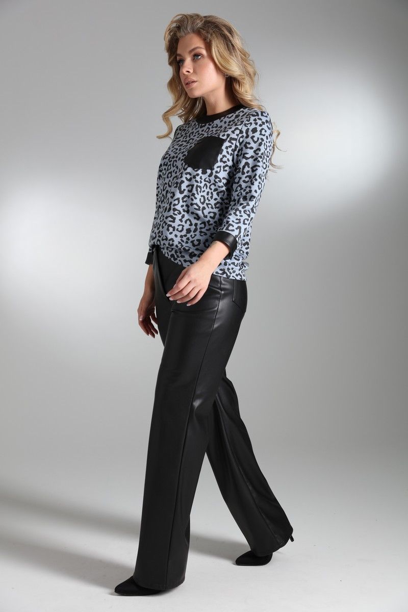 Джемпер - 65% полиэстер, 30% вискоза, 5% эластан. Брюки – 60% ПЭ, 40% вискоза