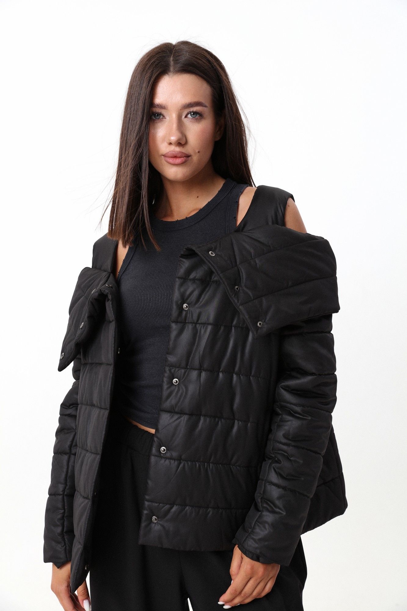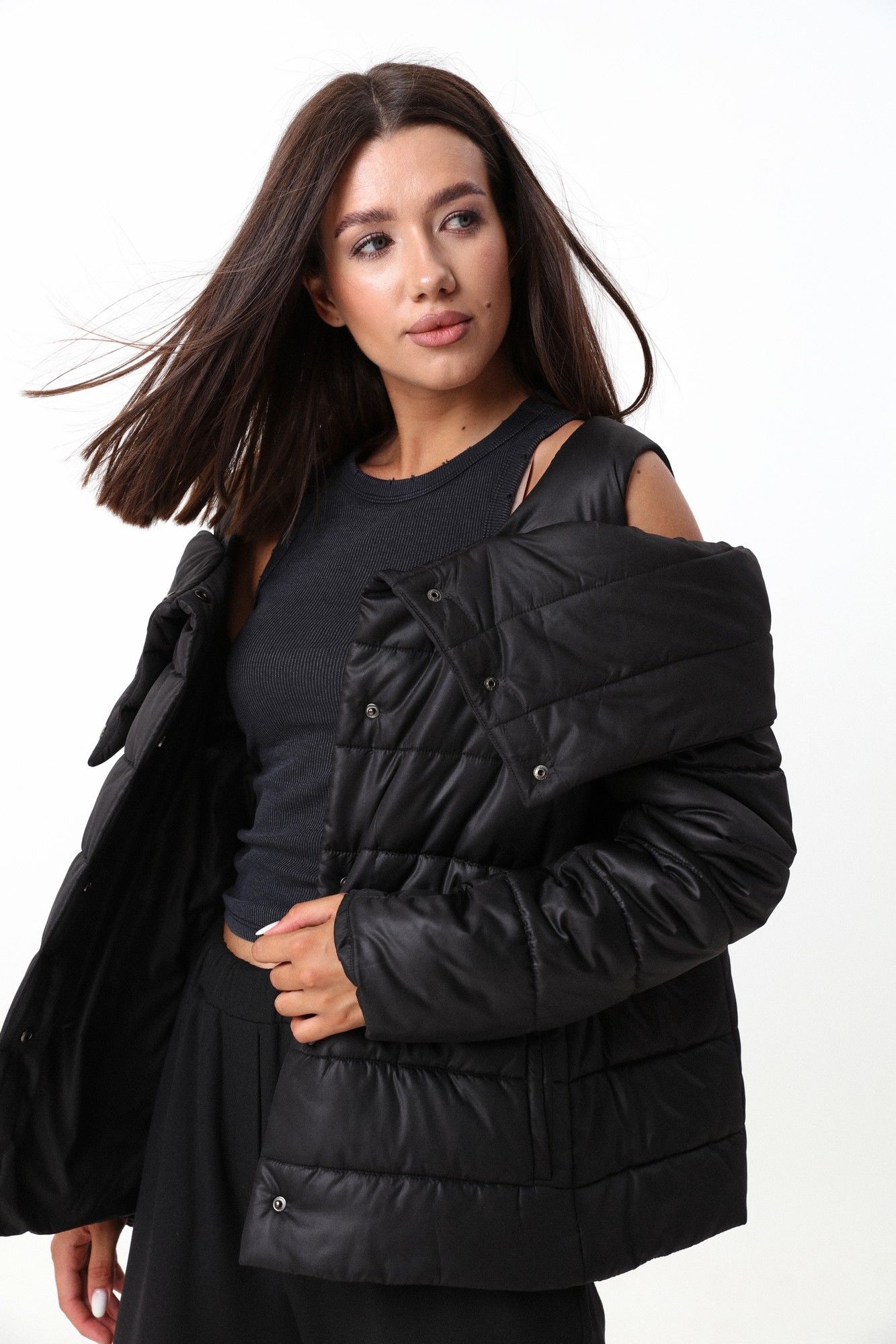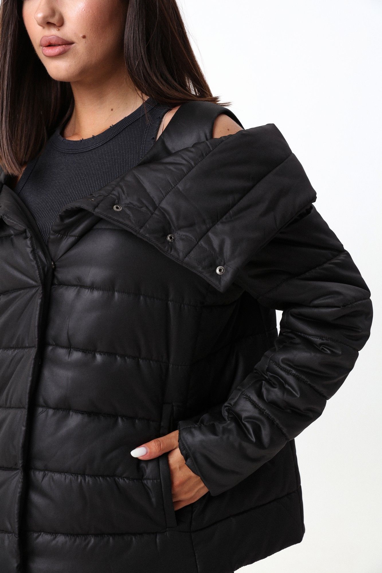 Куртка слегка расширенного силуэта к низу, с оригинальными и функциональными бретелями по плечам. За счет широких бретелей создается эффект двухслойности- когда жарко можно носить в распахнутом, виде расправив воротник, и курка будет держаться на плечах. Или застегнуть и поднять воротник, закрыв шею. Рукав втачной, слегка приспущен под линией воротника. Куртка выполнена из мягкой и влагоустойчивой плащевки. Утеплитель: - не деформируется - не намокает - не вызывает аллергию - "дышит" - легко стирается и быстро сохнет Изделие рекомендовано носить до -15 градусов Цельсия Фурнитура и материалы отделки могут незначительно отличаться от тех, что на фотографии. Рост фотомодели 175 см. Размер у фотомодели – 44.