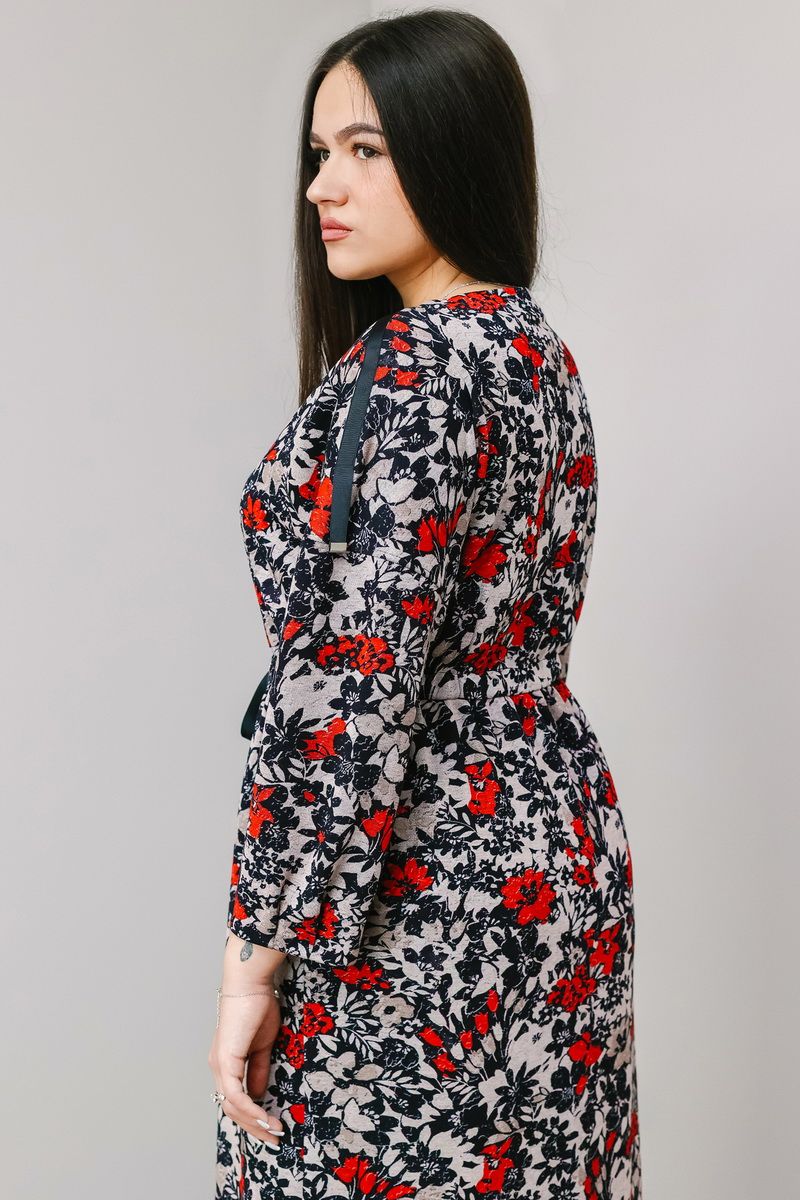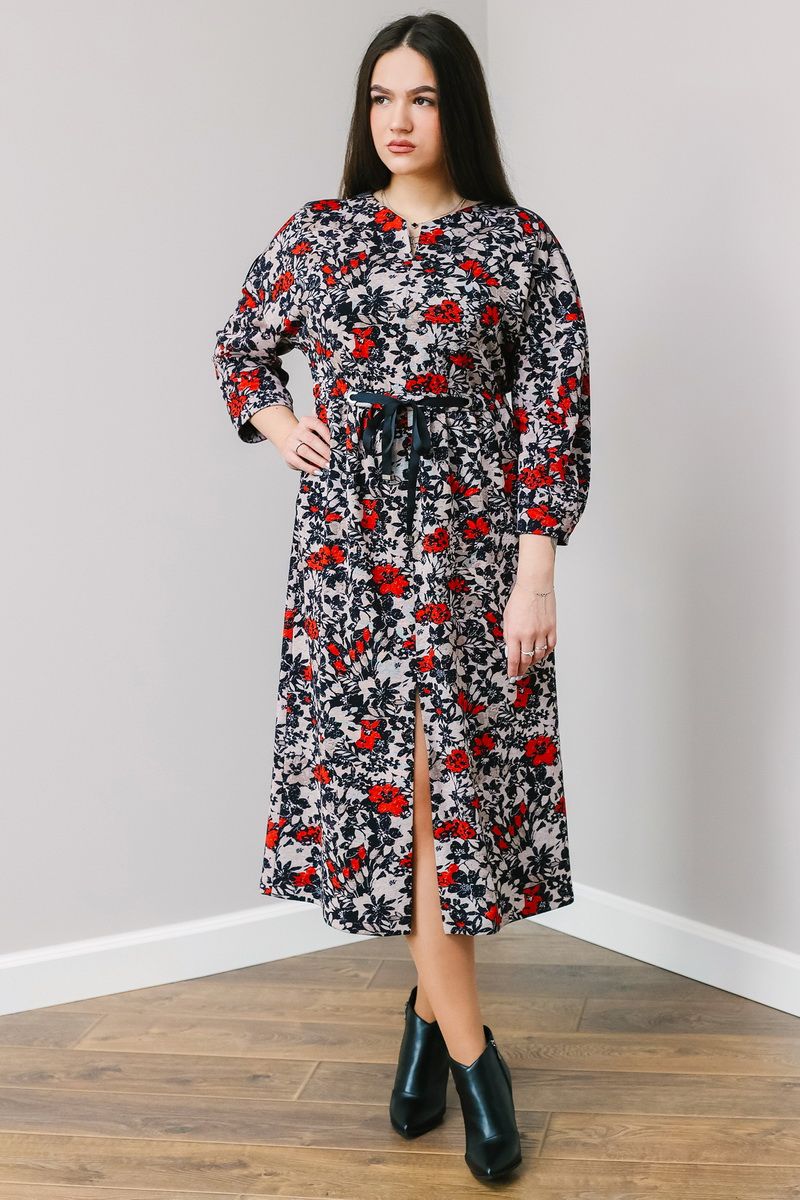Платье женское повседневное, рукав приспущенный,по груди небольшой V образный вырез, Спереди разрез, Ткань трикотаж. Длина изделия 121 см,длина рукава от горловины 62 см.