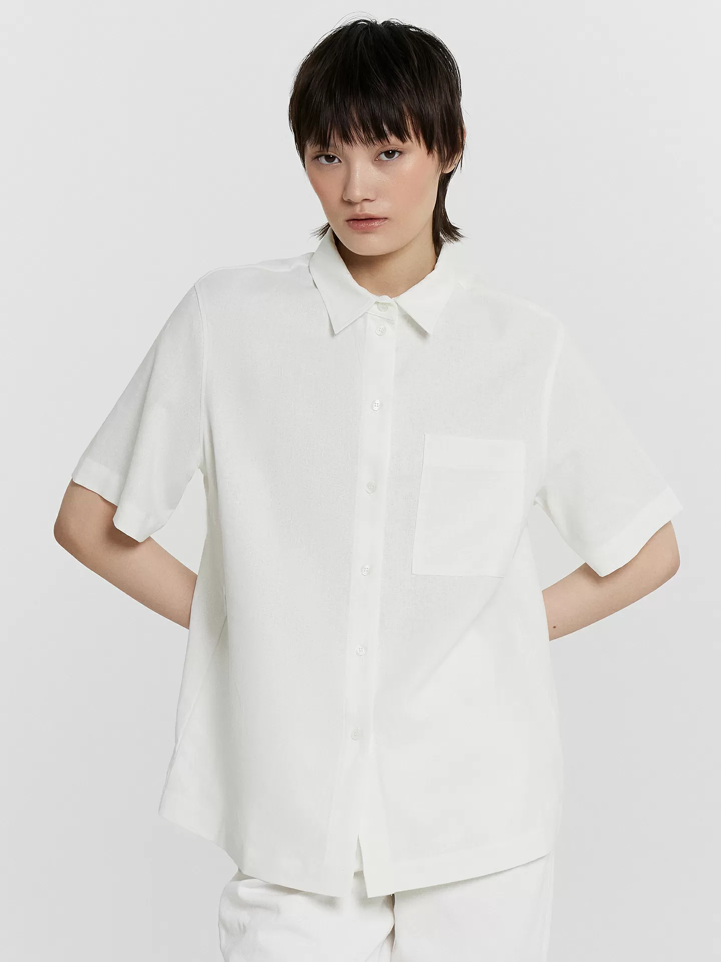 Женственная и стильная рубашка свободного силуэта – идеальный выбор для тех, кто ценит комфорт и элегантность! Модель выполнена из смеси льна и района, что обеспечивает натуральность, мягкость и легкость в носке. Центральная застежка на пуговицах добавляет практичности, а накладной карман на груди – изящности и функциональности. Отложной воротник и короткий рукав с мягко спущенным плечом создают расслабленный, но утонченный образ. Прямой низ подчеркивает аккуратность и завершенность дизайна. Такая рубашка прекрасно подходит для жарких дней, дополняя повседневные и офисные образы, при этом оставаясь удобной и стильной. Отличное решение для тех, кто ищет идеальное сочетание изящества и комфорта!