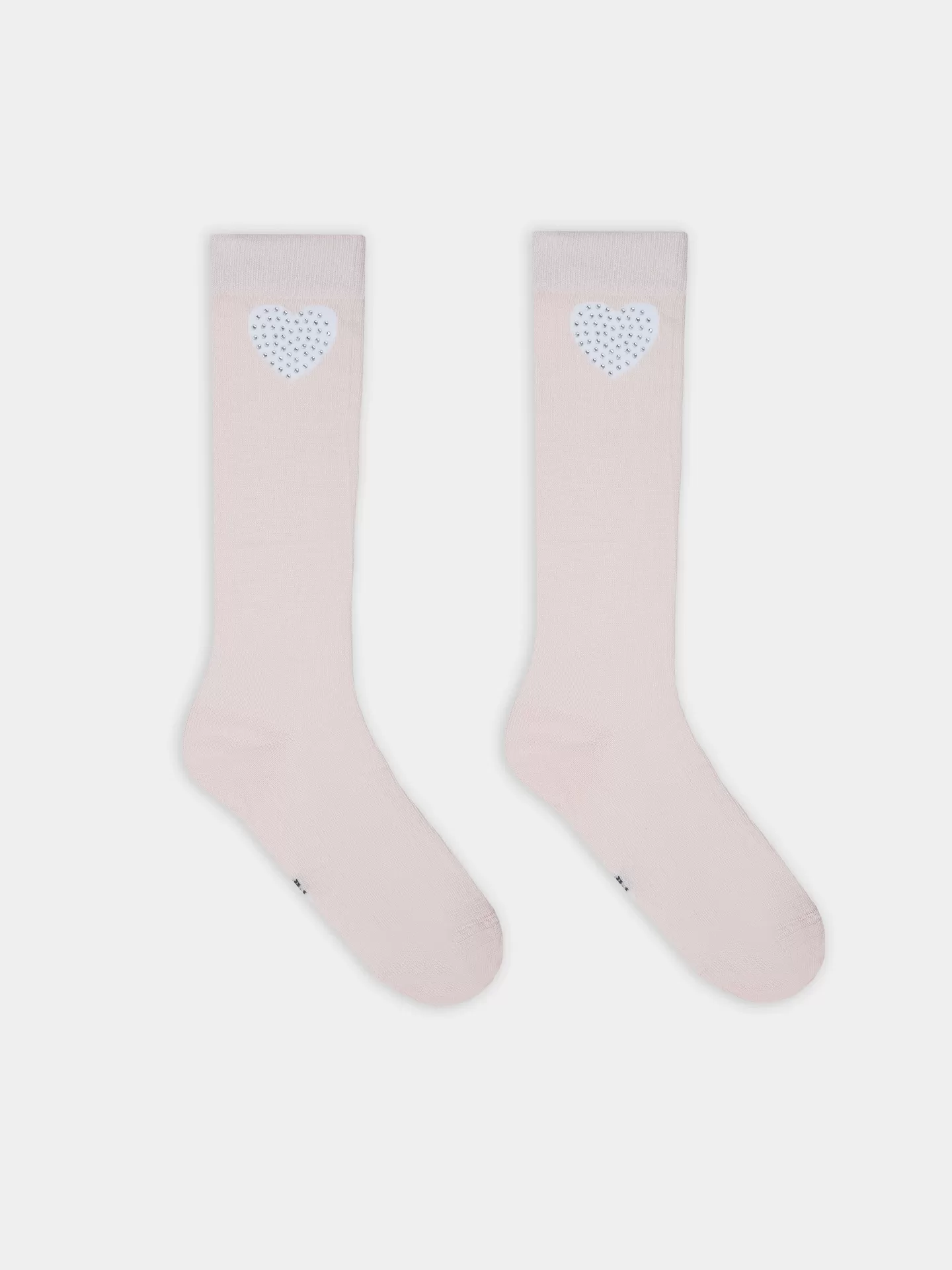 Рис.3335 Детские однотонные гольфы c рисунком в виде сердечка и печатью стразами.